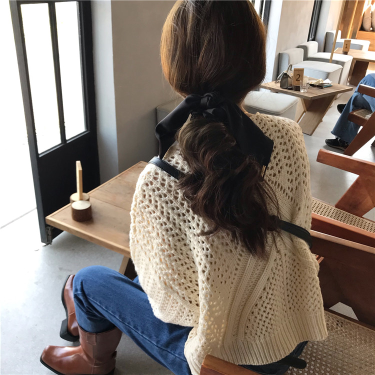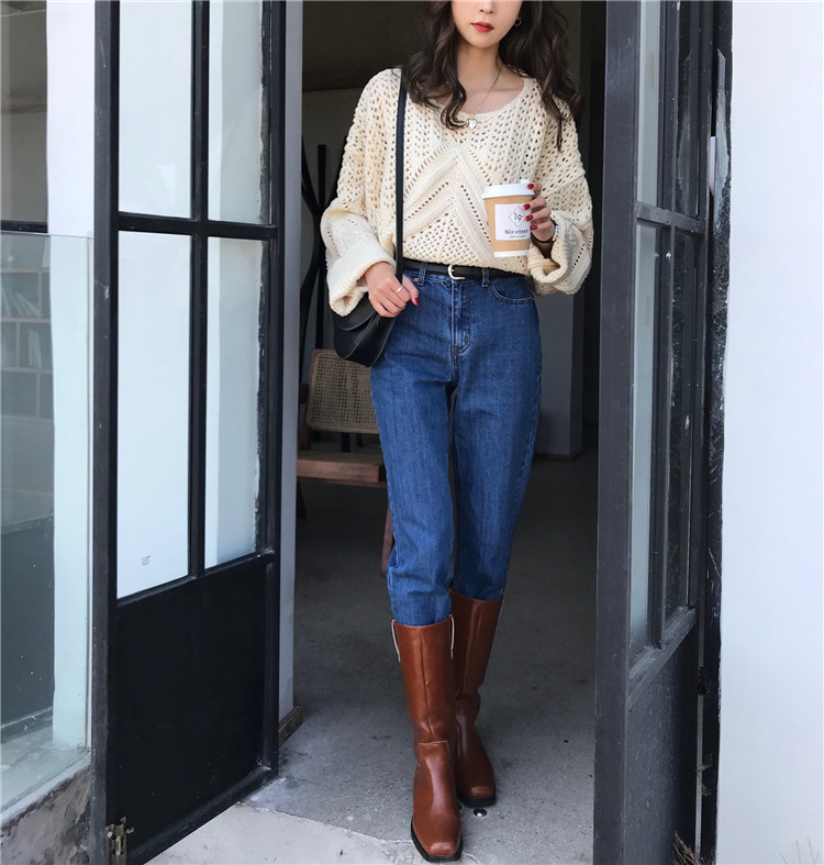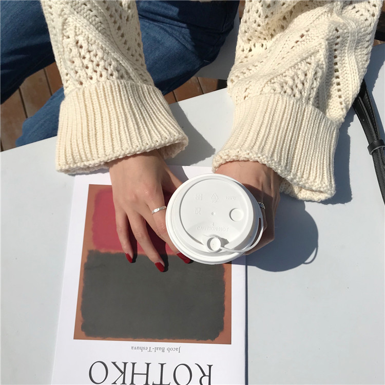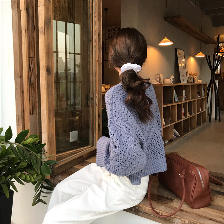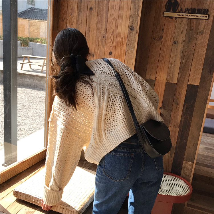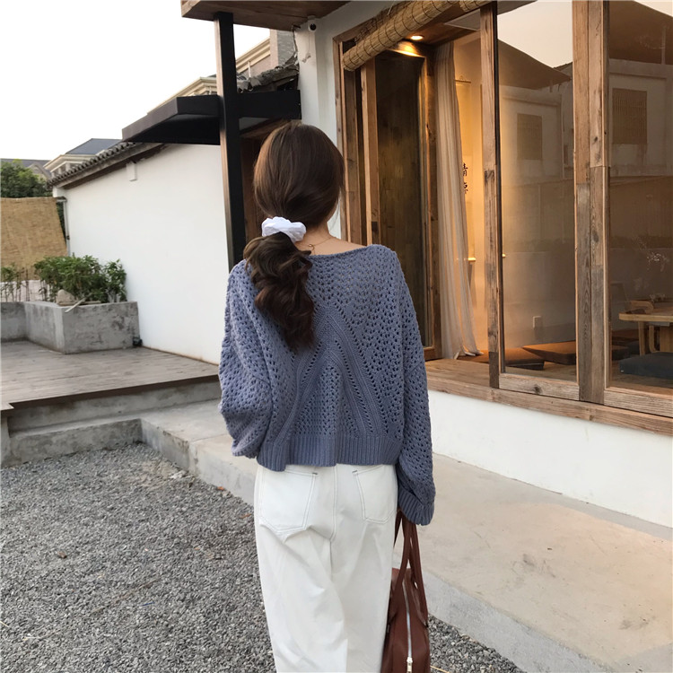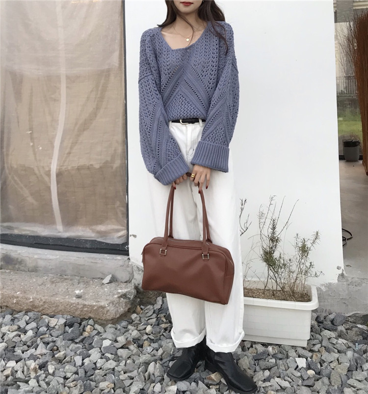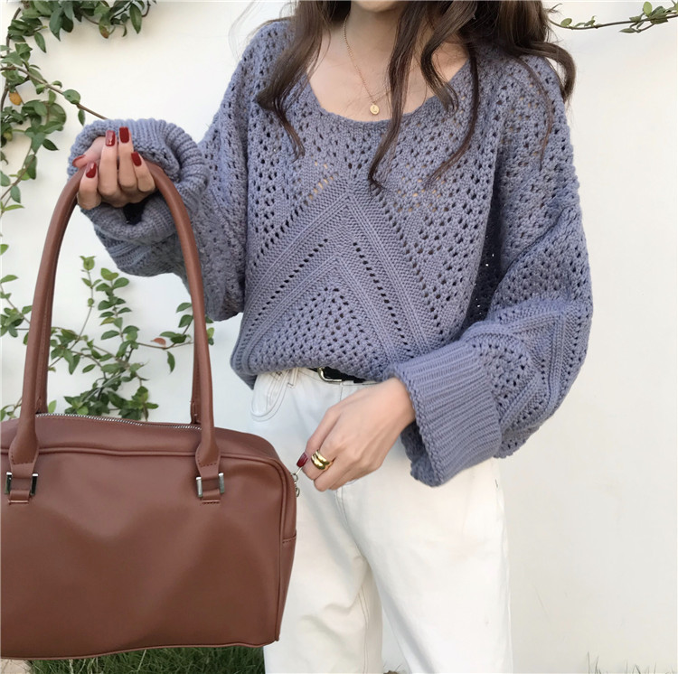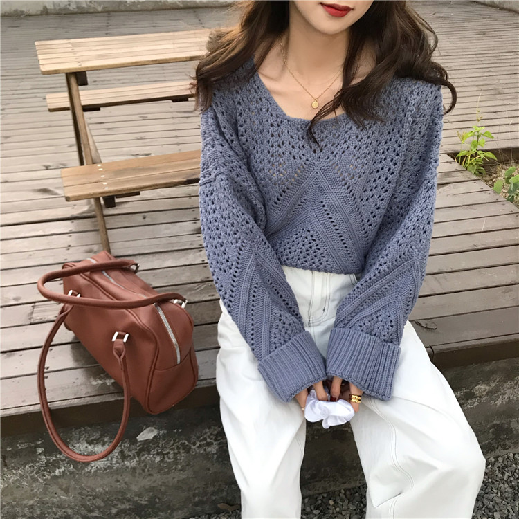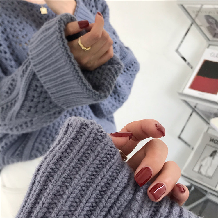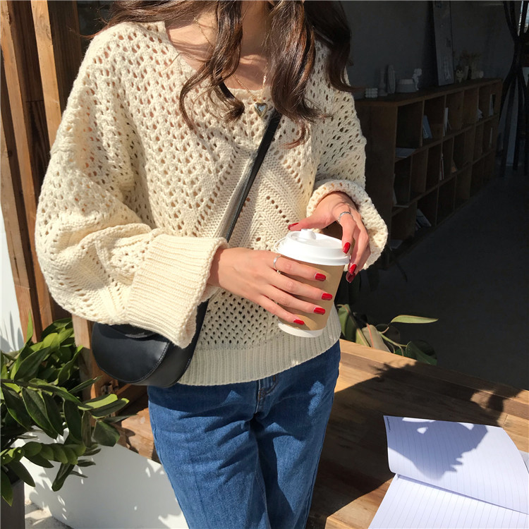 实拍!秋冬时尚上衣宽松圆领镂空百搭套头粗针加厚毛衣