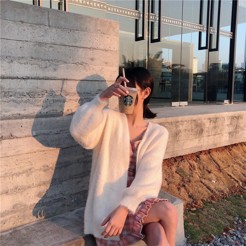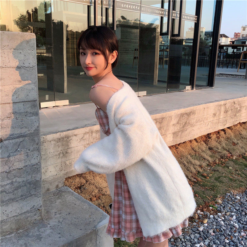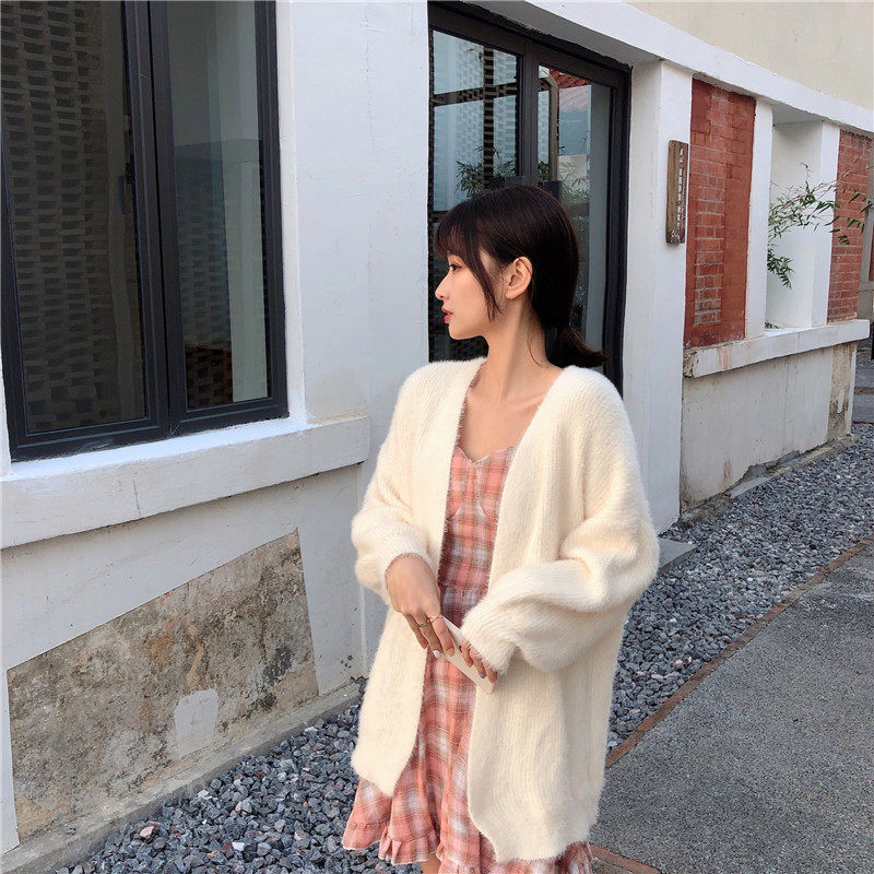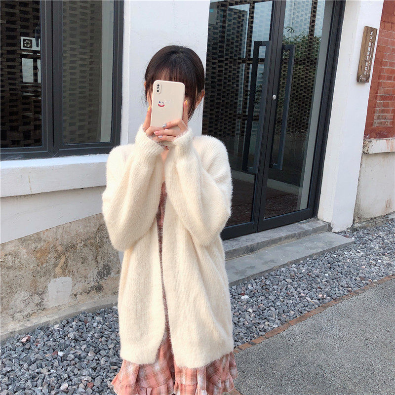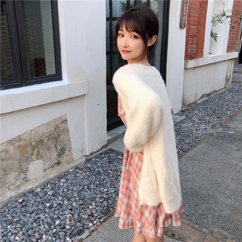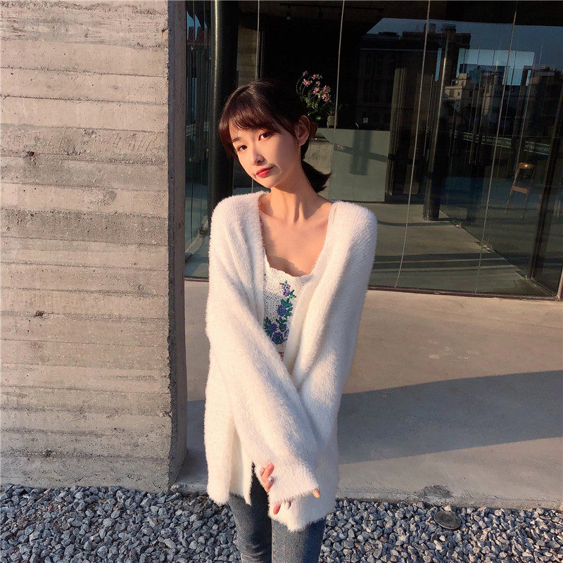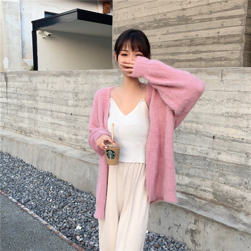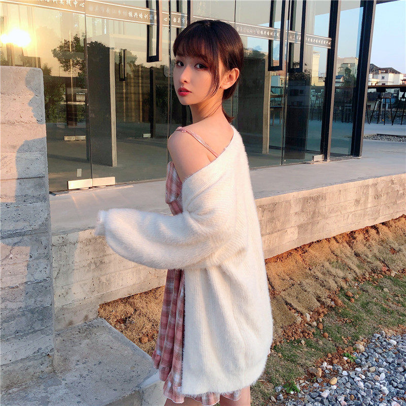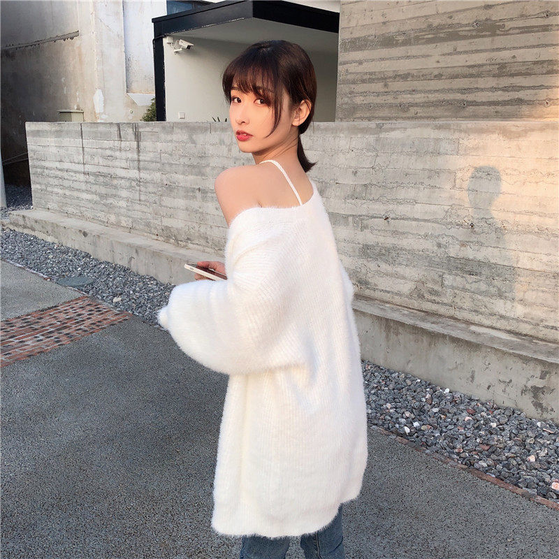 实拍实价慵懒风v领开衫毛衣女宽松外穿水貂绒不掉毛针织衫潮