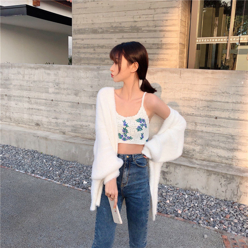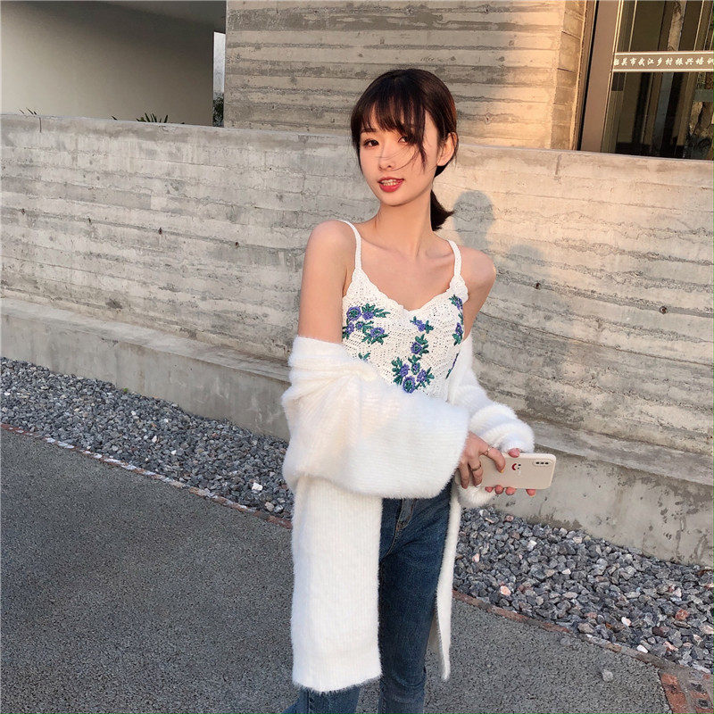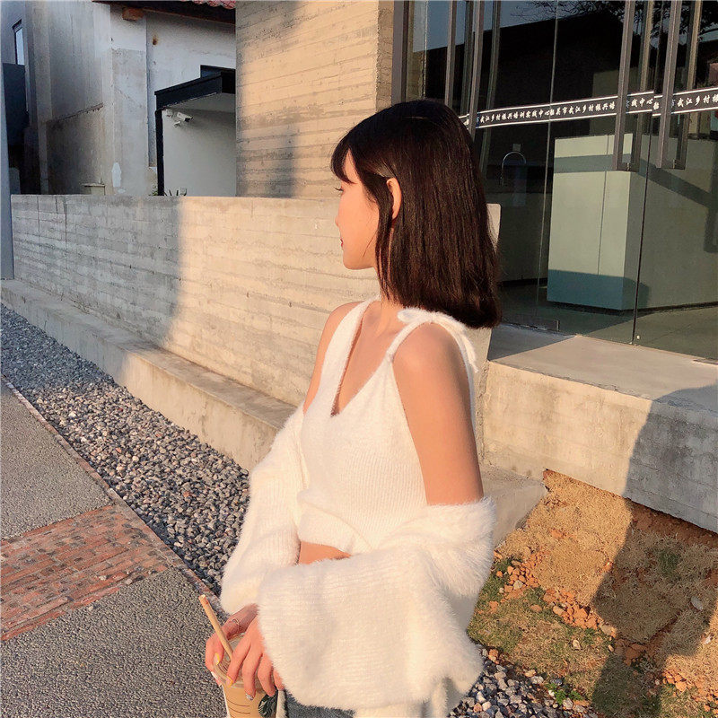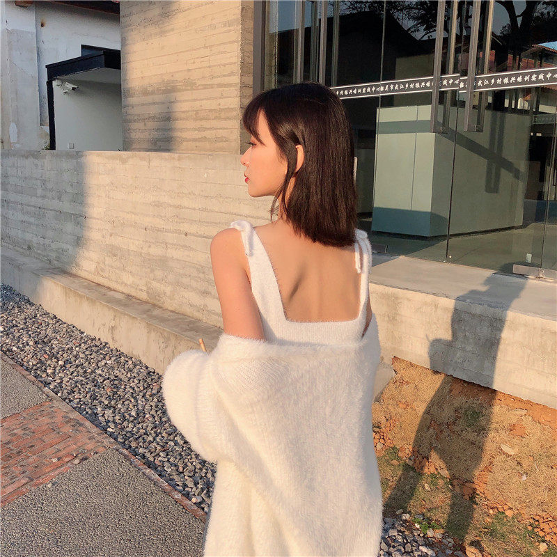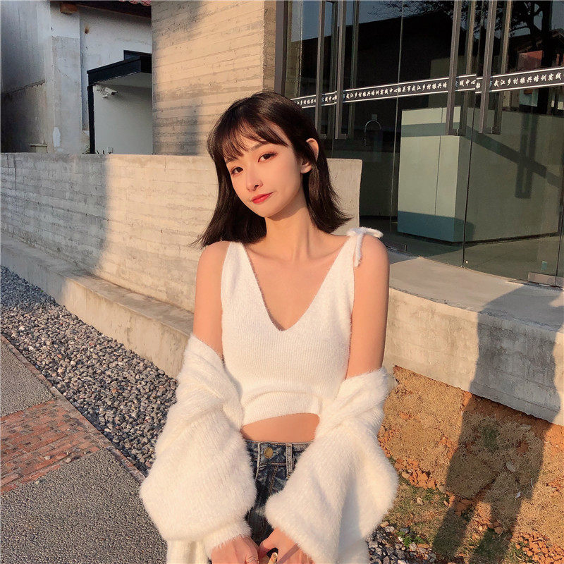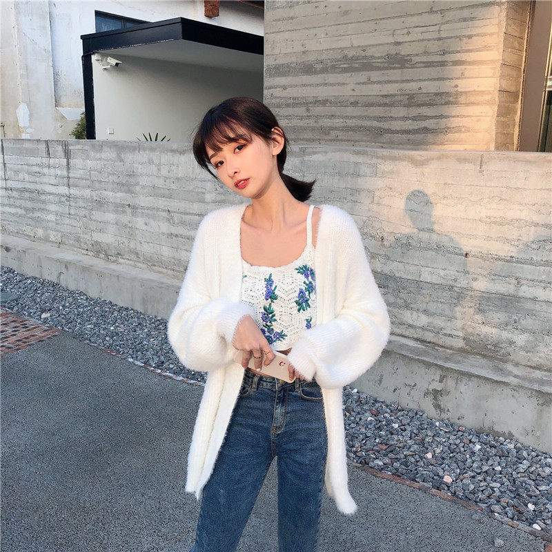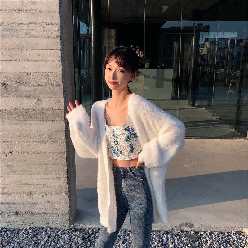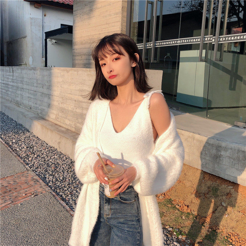 实拍实价慵懒风v领开衫毛衣女宽松外穿水貂绒不掉毛针织衫潮