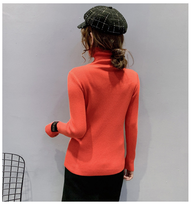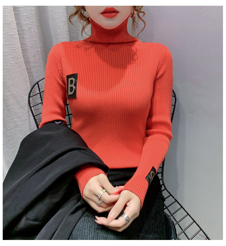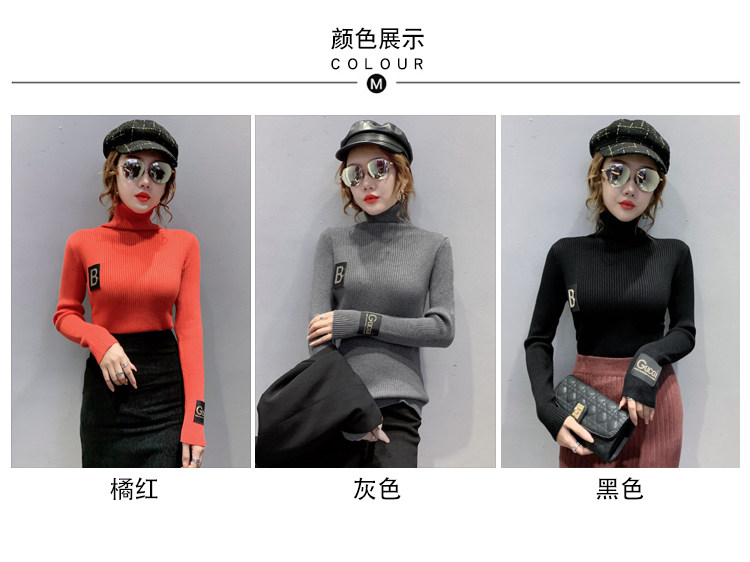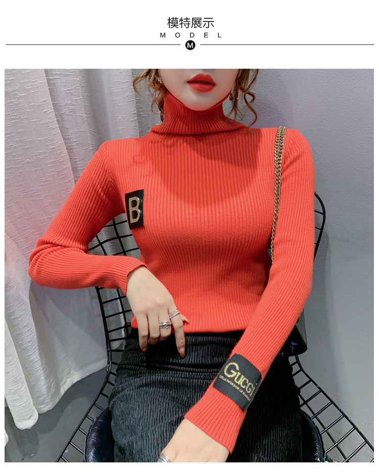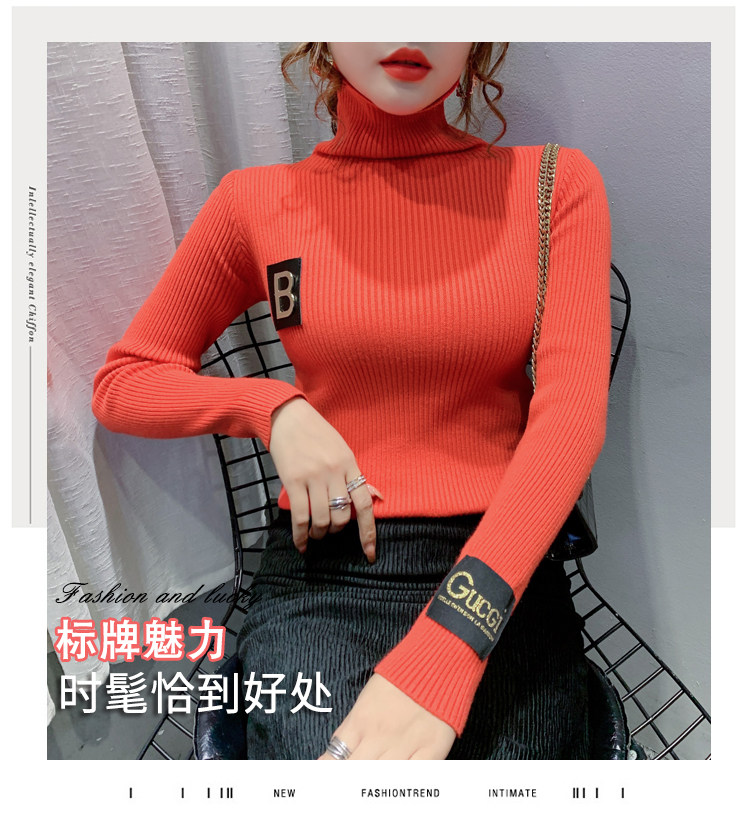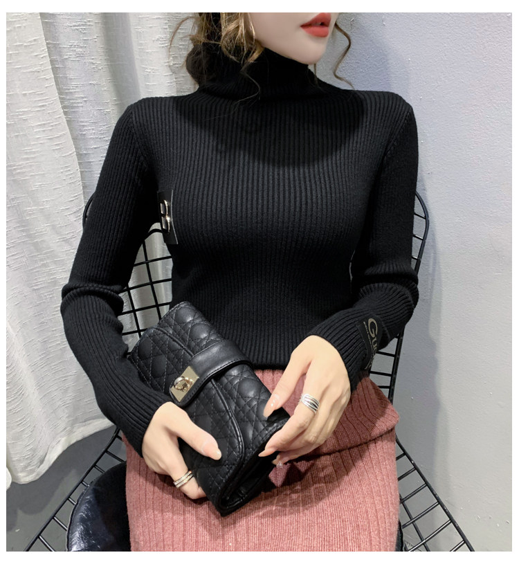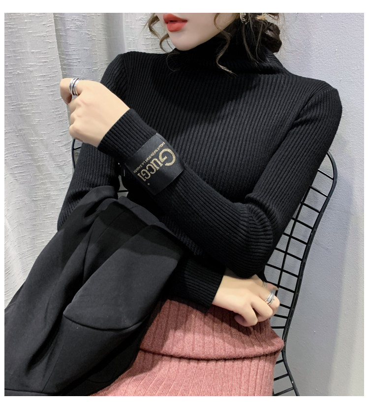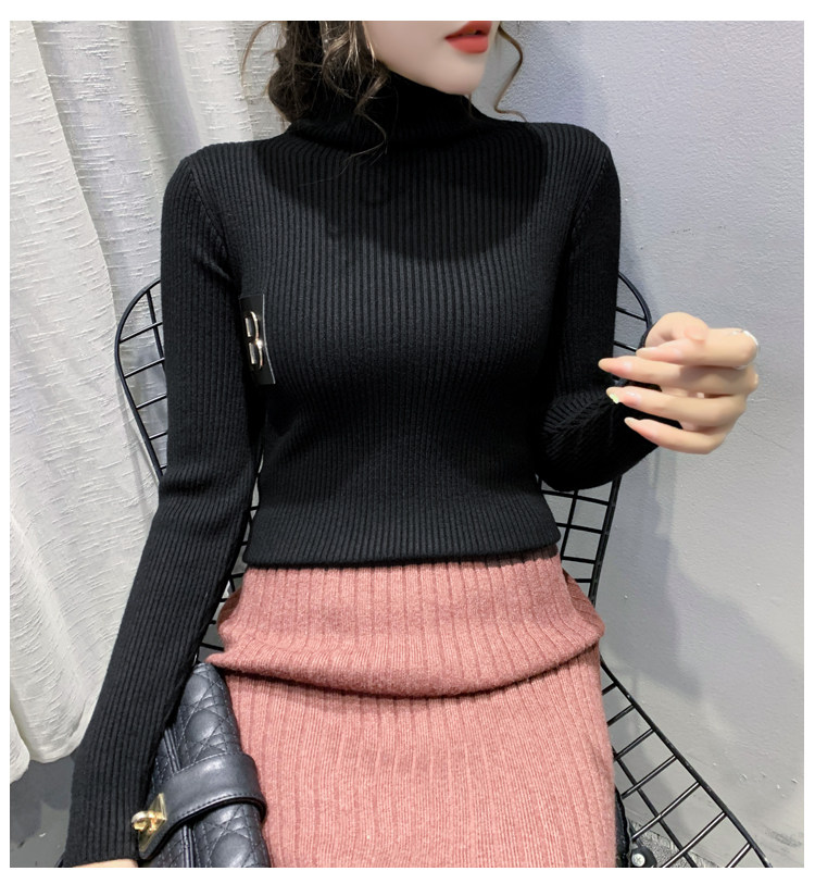 新款秋冬韩版女士修身加绒加厚洋气针织堆堆高领打底毛衣