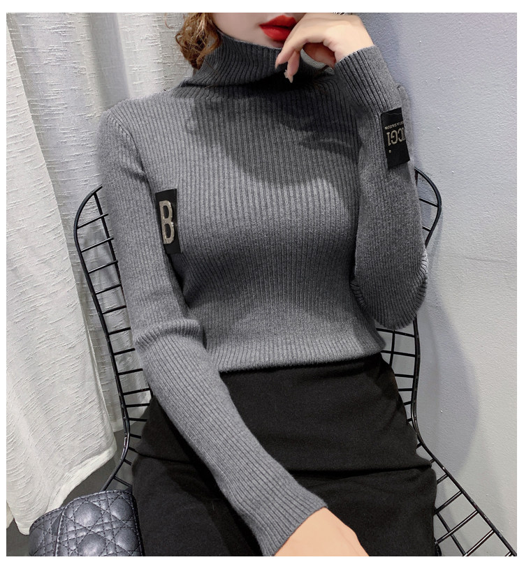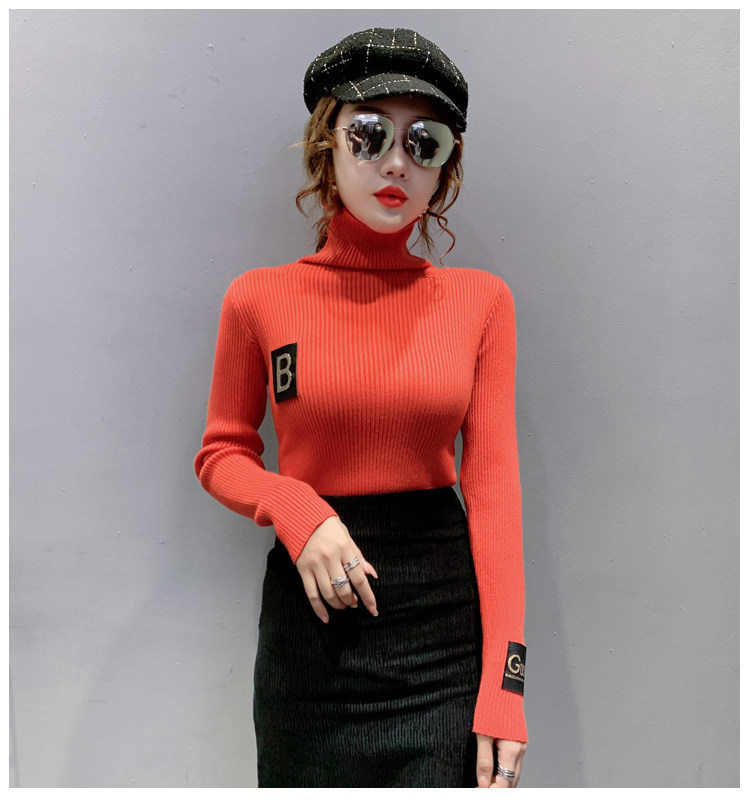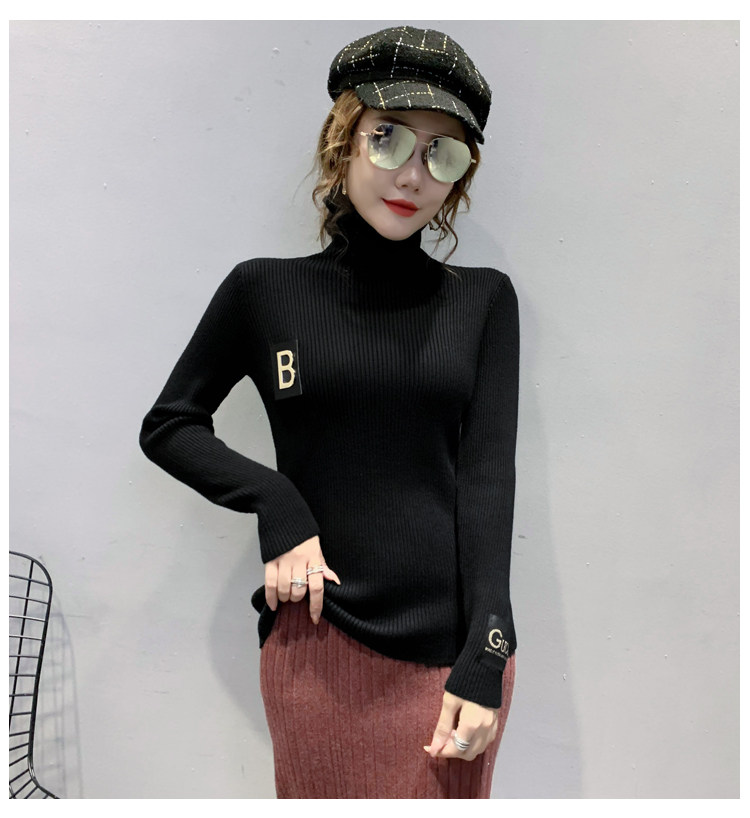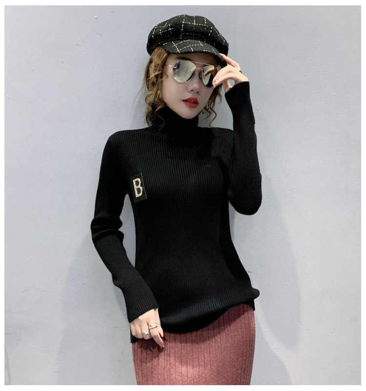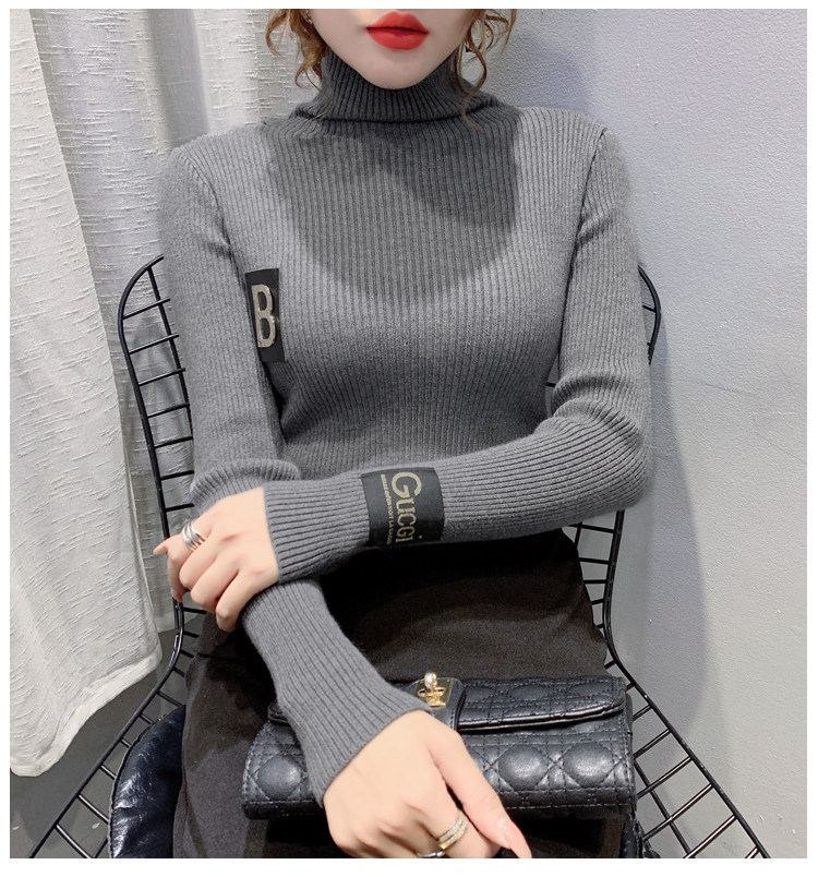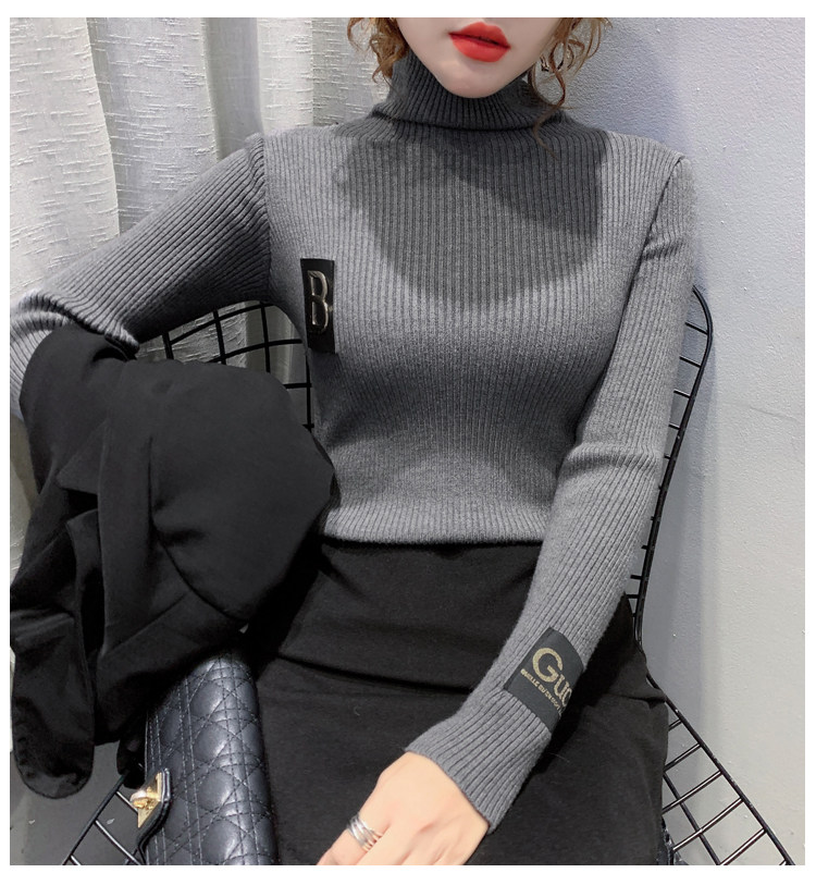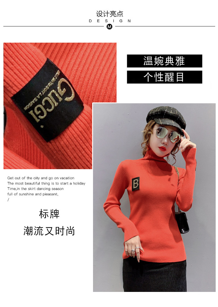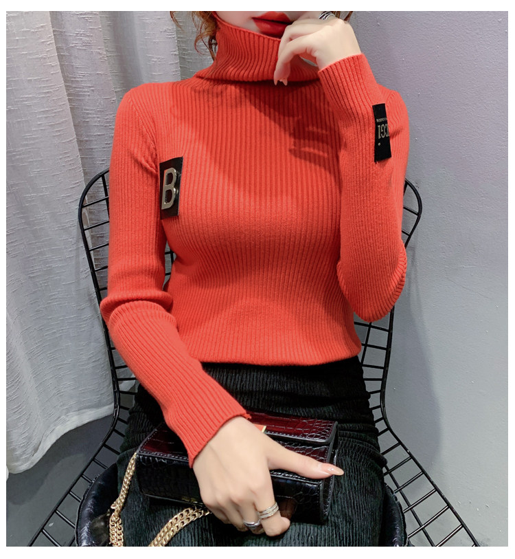 新款秋冬韩版女士修身加绒加厚洋气针织堆堆高领打底毛衣