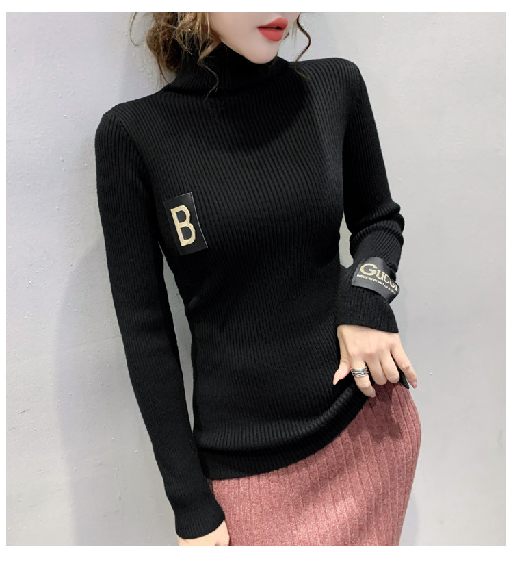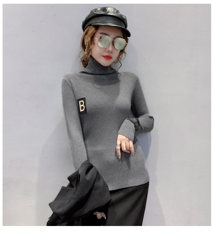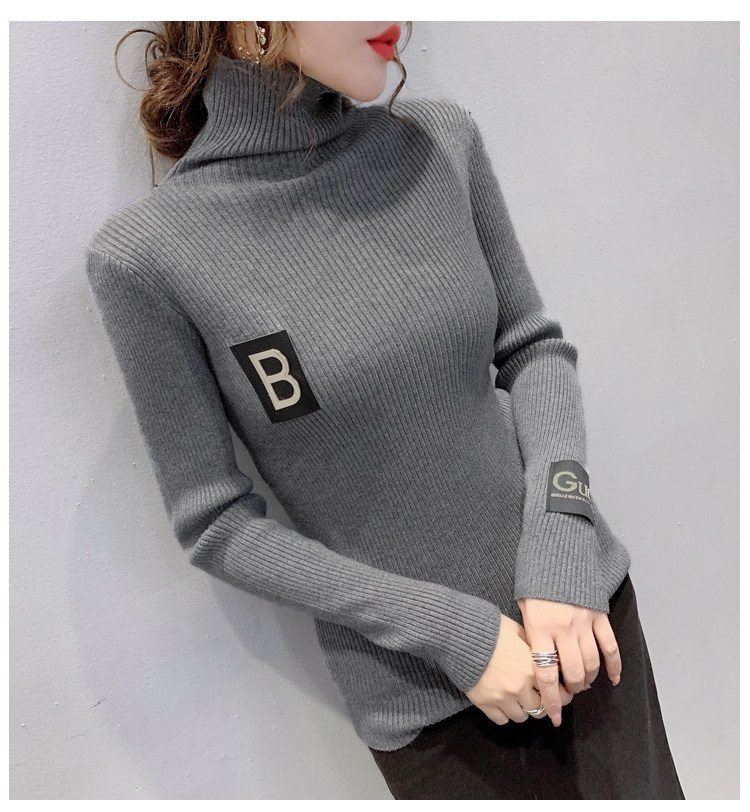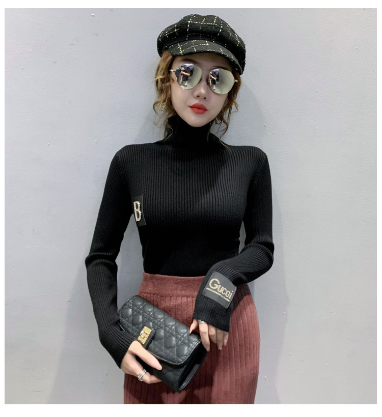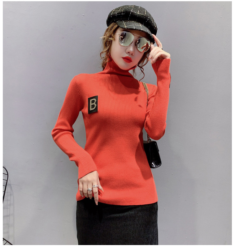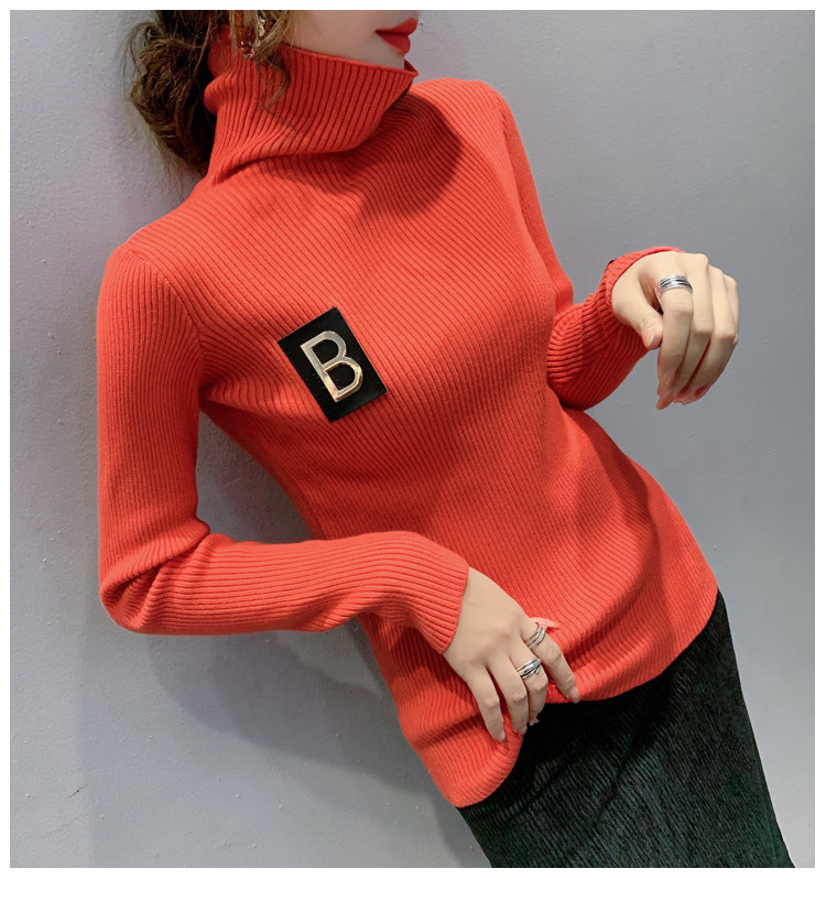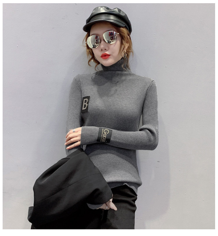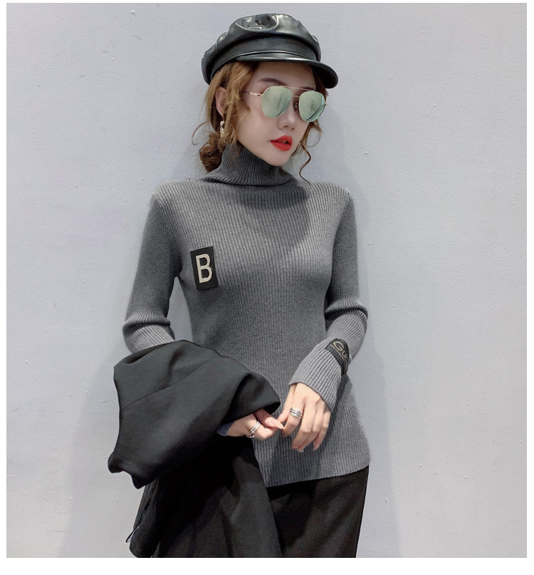新款秋冬韩版女士修身加绒加厚洋气针织堆堆高领打底毛衣