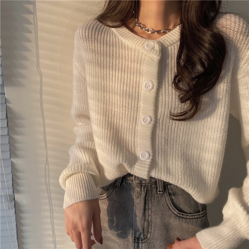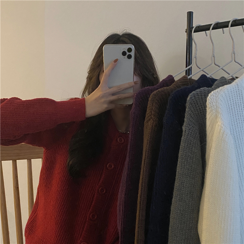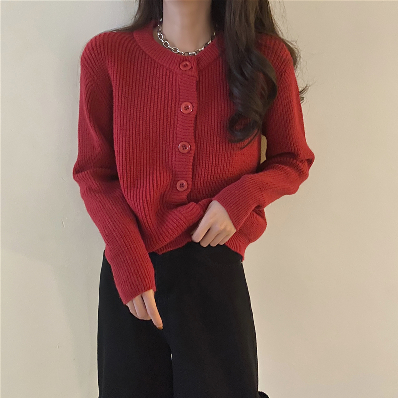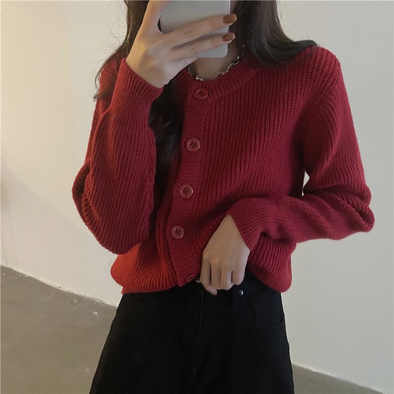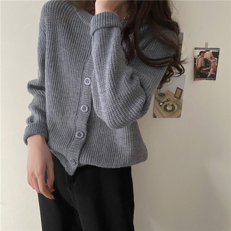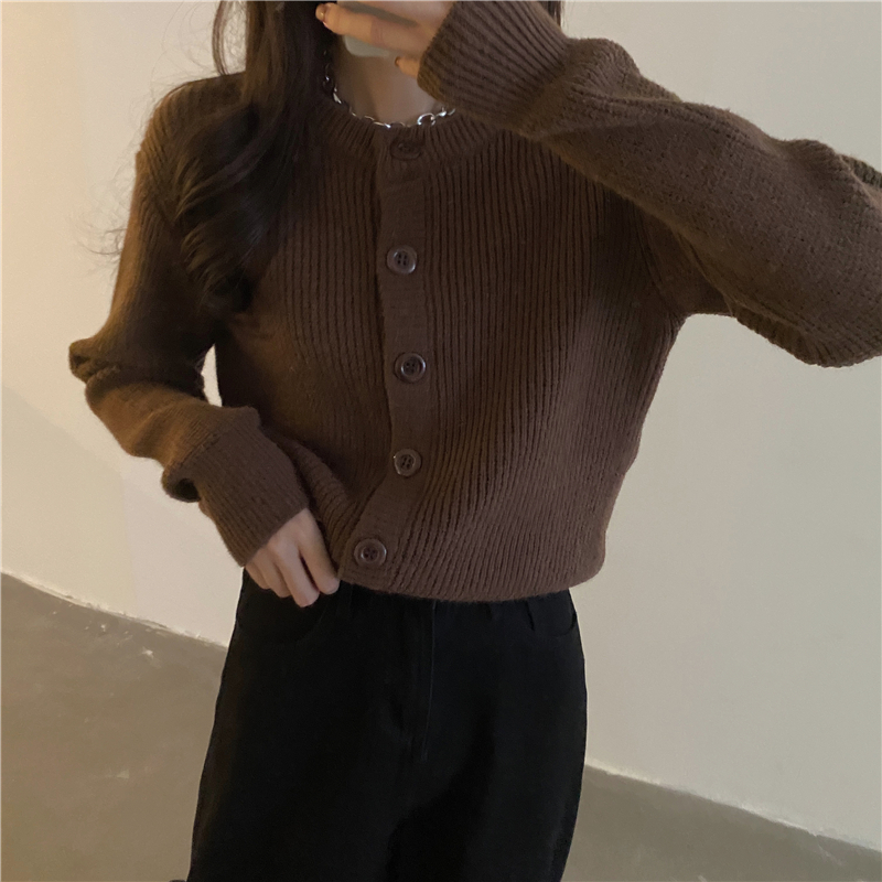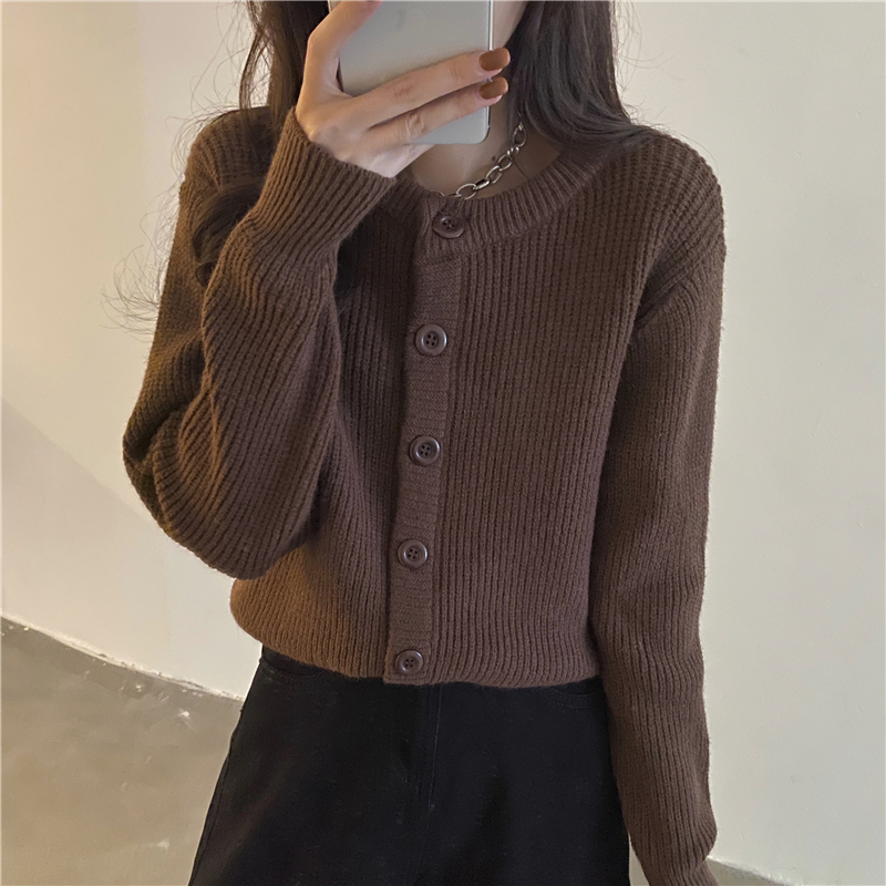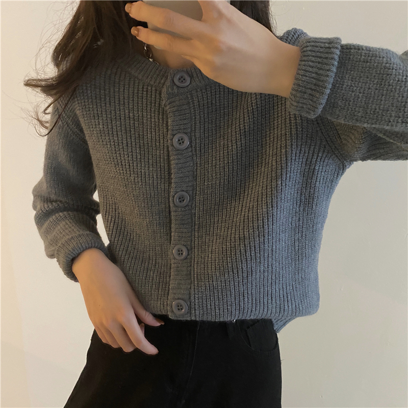 实拍实价 控3 冬季短款开衫外套女针织羊毛衫厚宽松外穿慵懒风