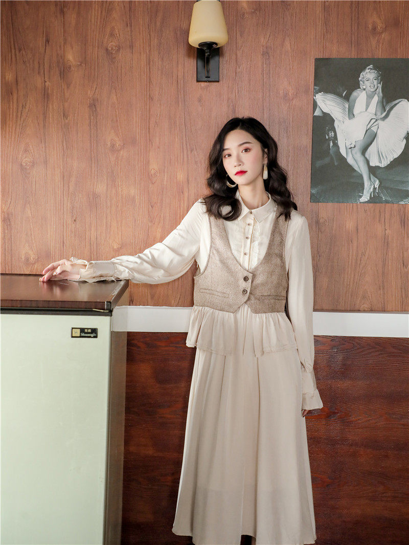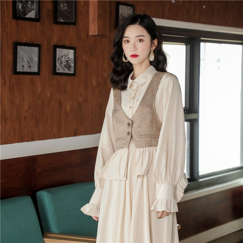 现货春秋复古毛呢拼接马甲短款秋季2020小香风马夹女洋气新款外套