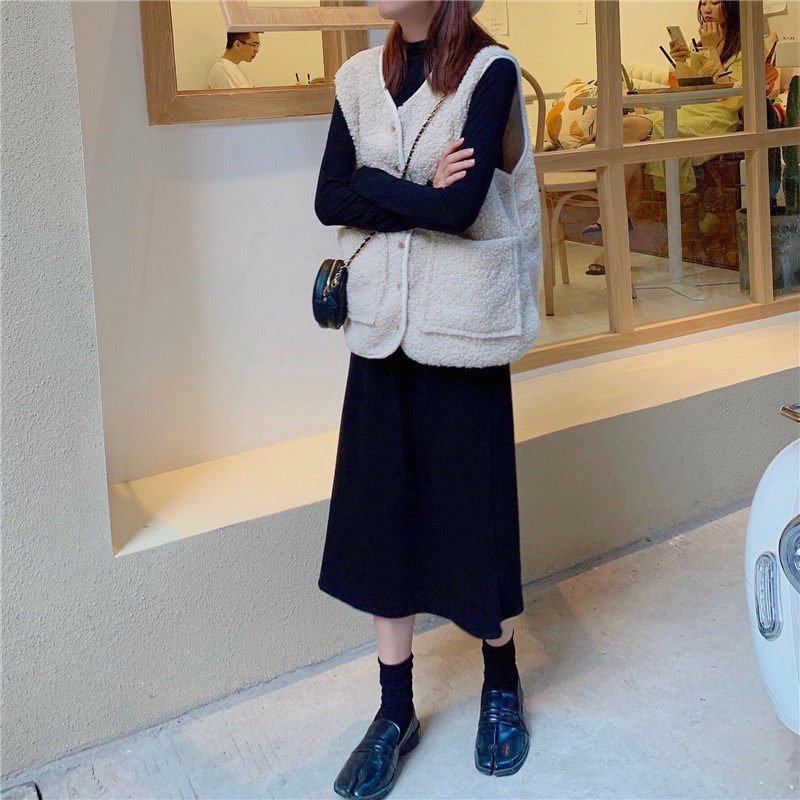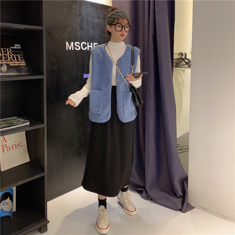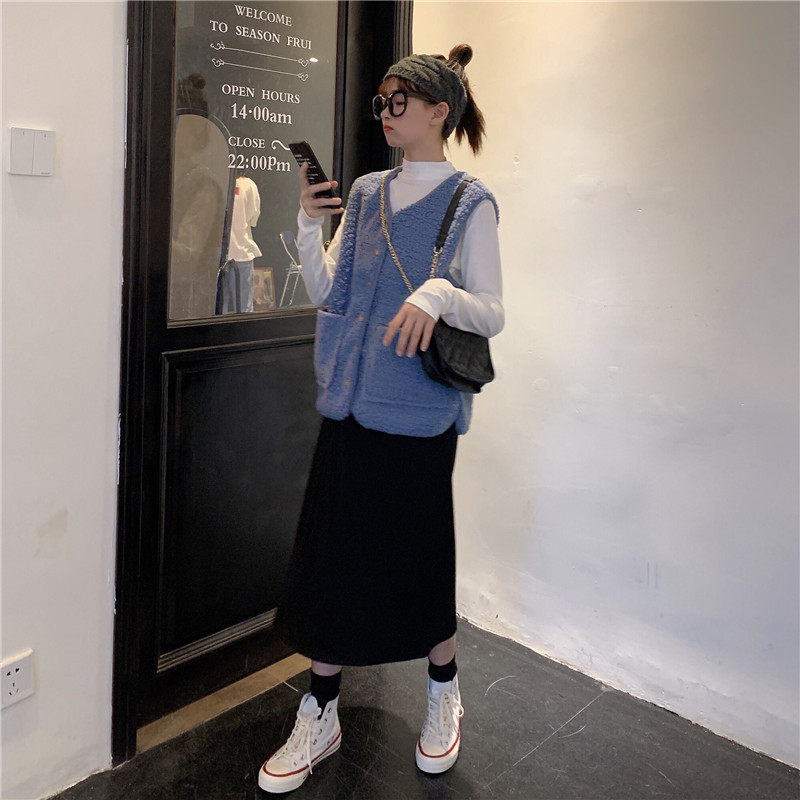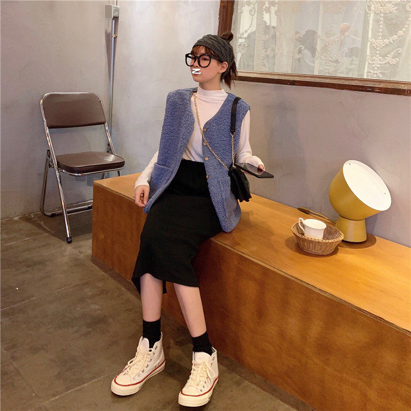 尺寸:马甲衣长61 肩宽40 胸围110 打底衫衣长58 袖长56 胸围80 肩宽 36 一步裙裙长76 腰围60-90(松紧腰) 温馨提示:(平铺测量,有1-3cm误差,请谅解)
