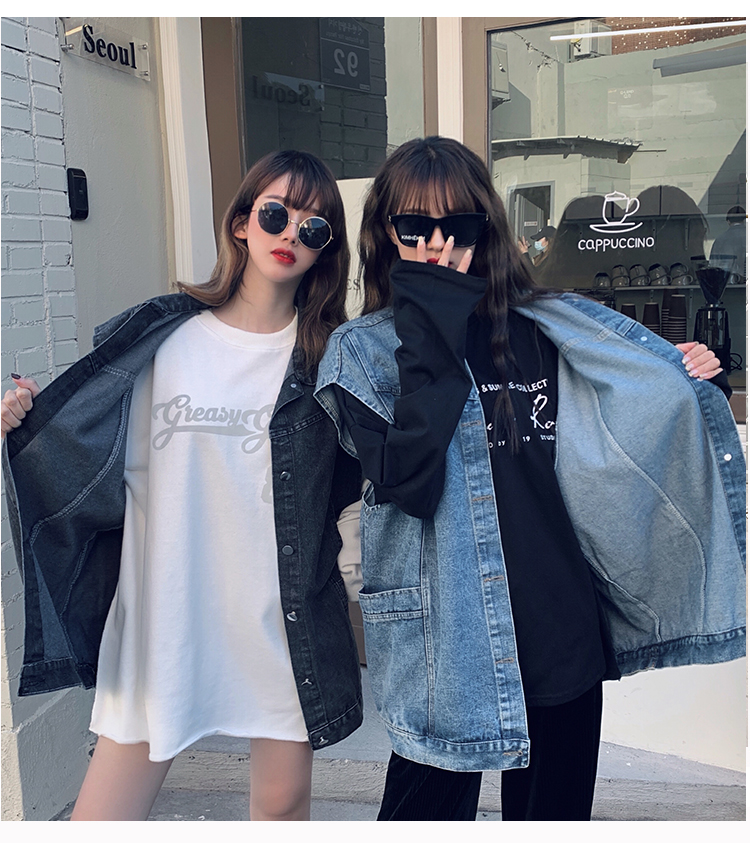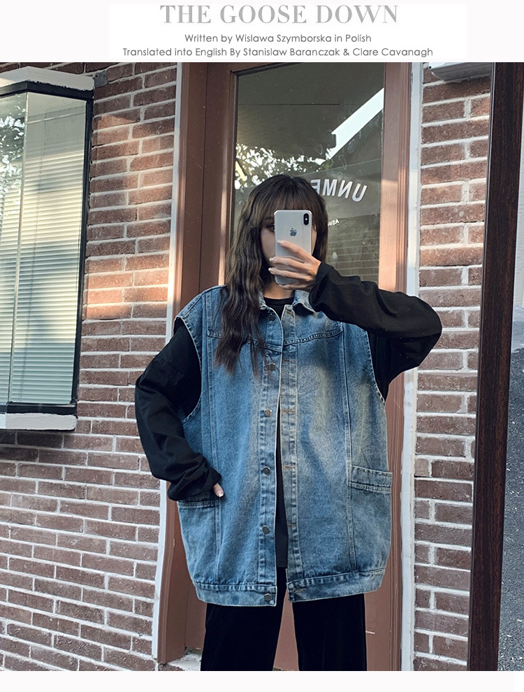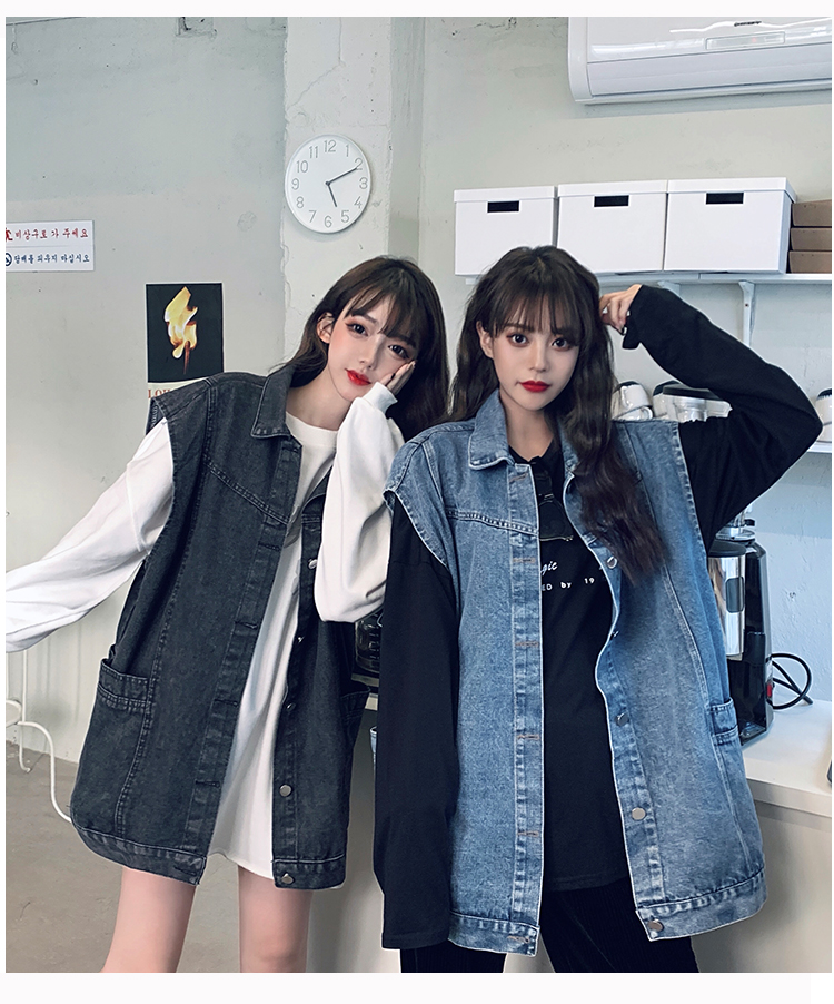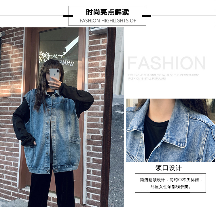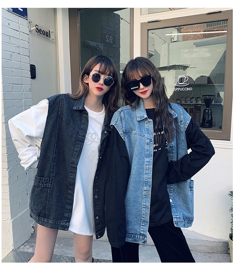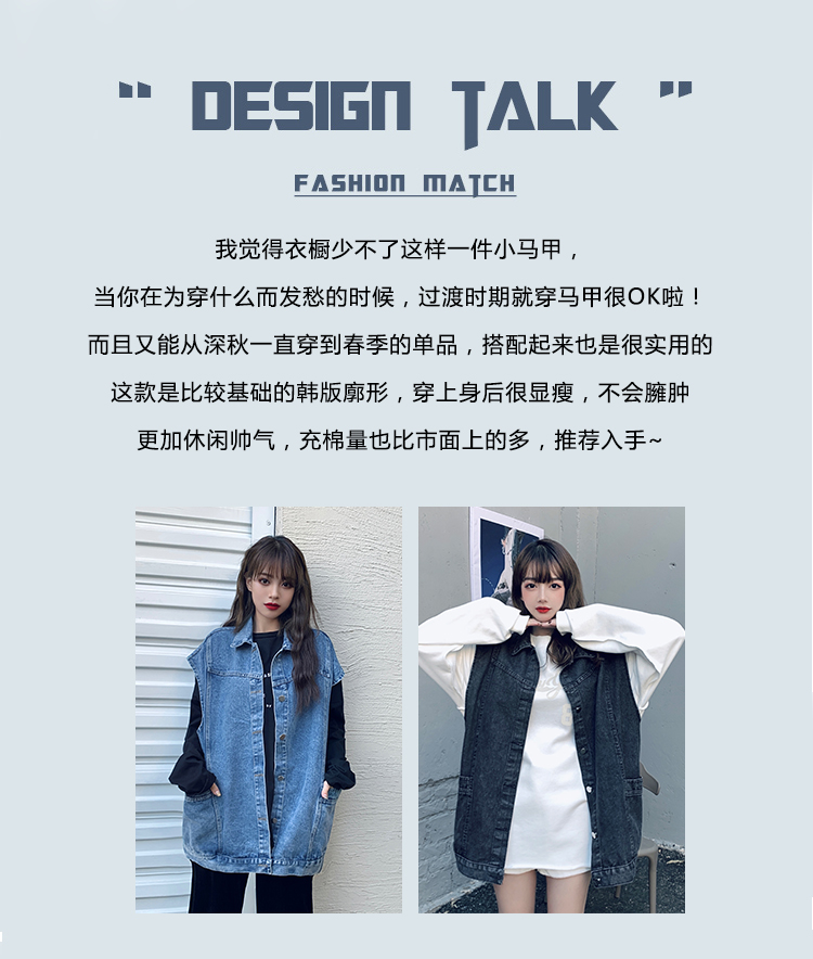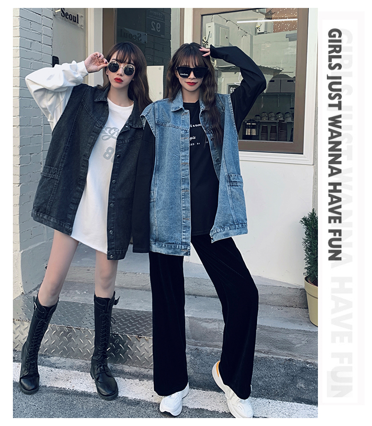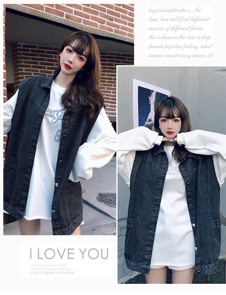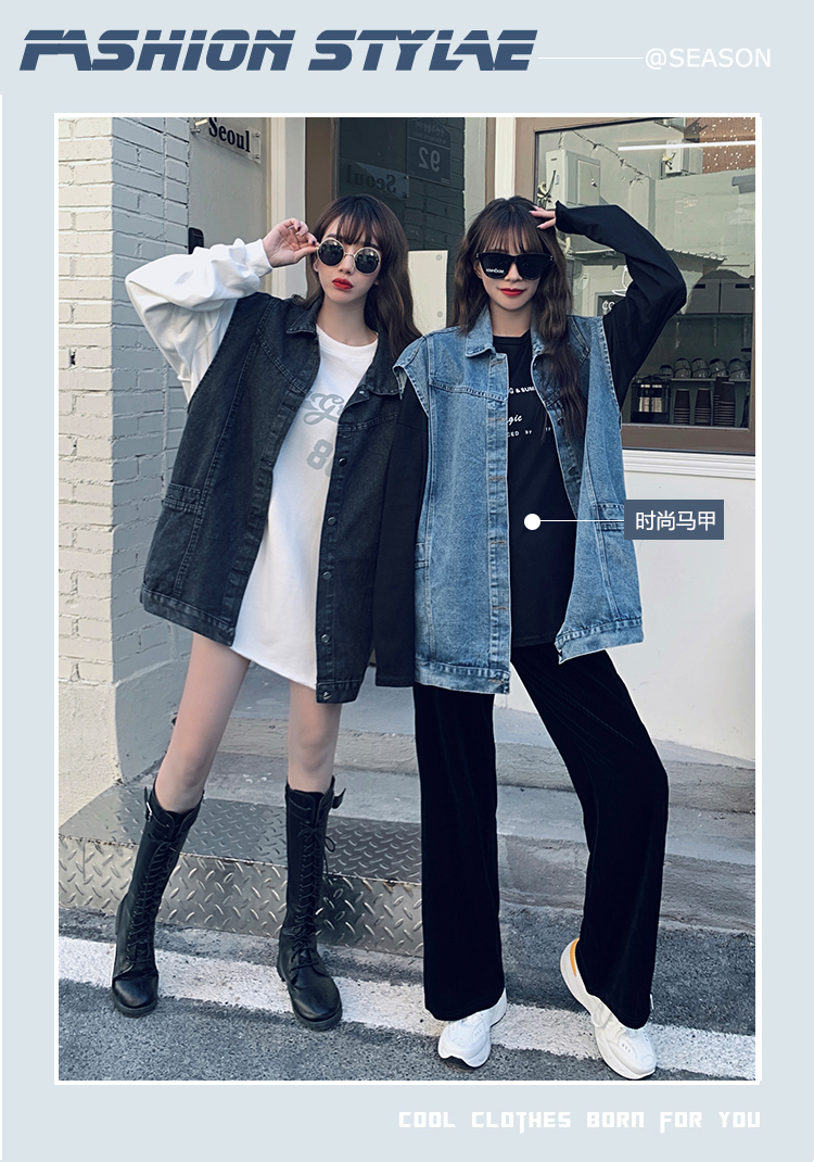 实拍港味潮范牛仔马甲女大口袋宽松休闲无袖学生上衣夹克