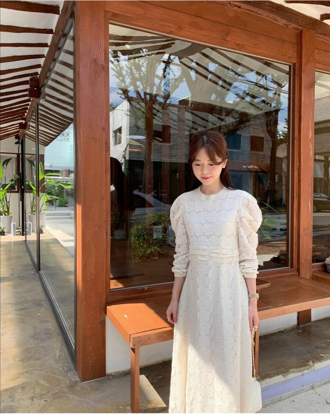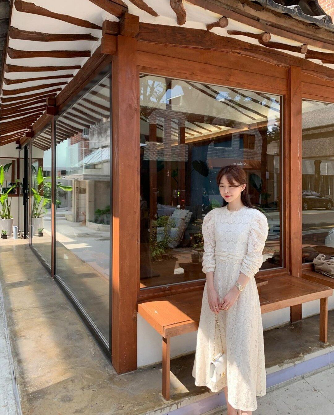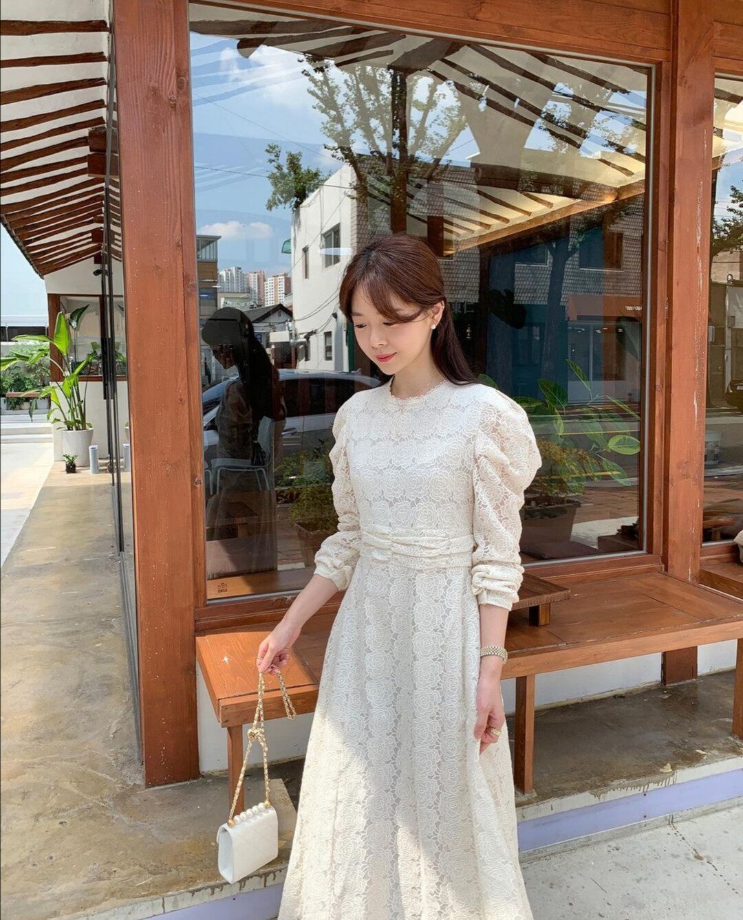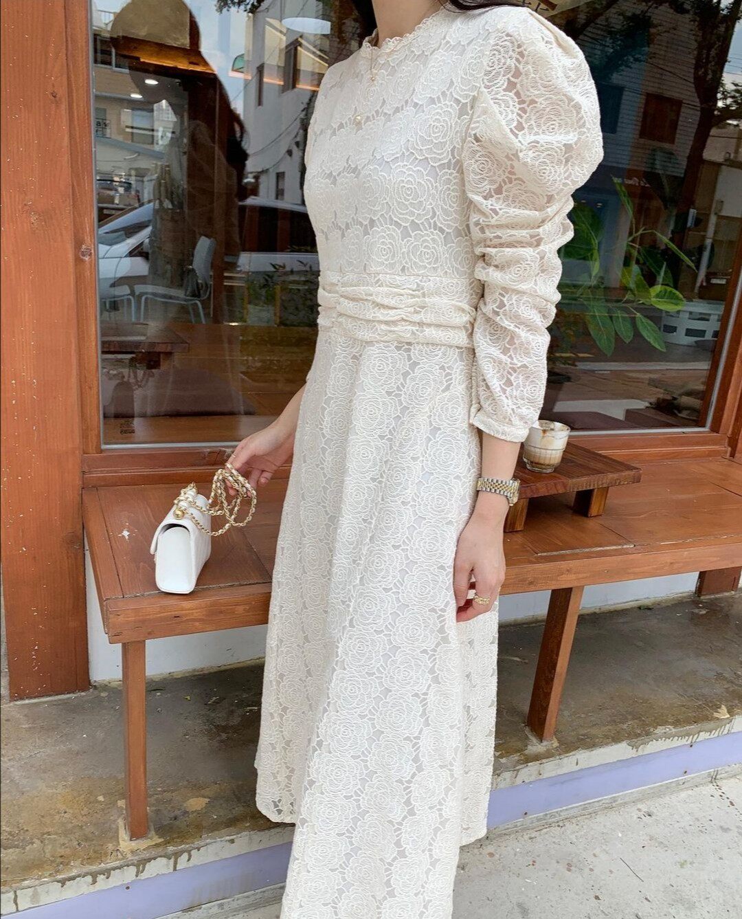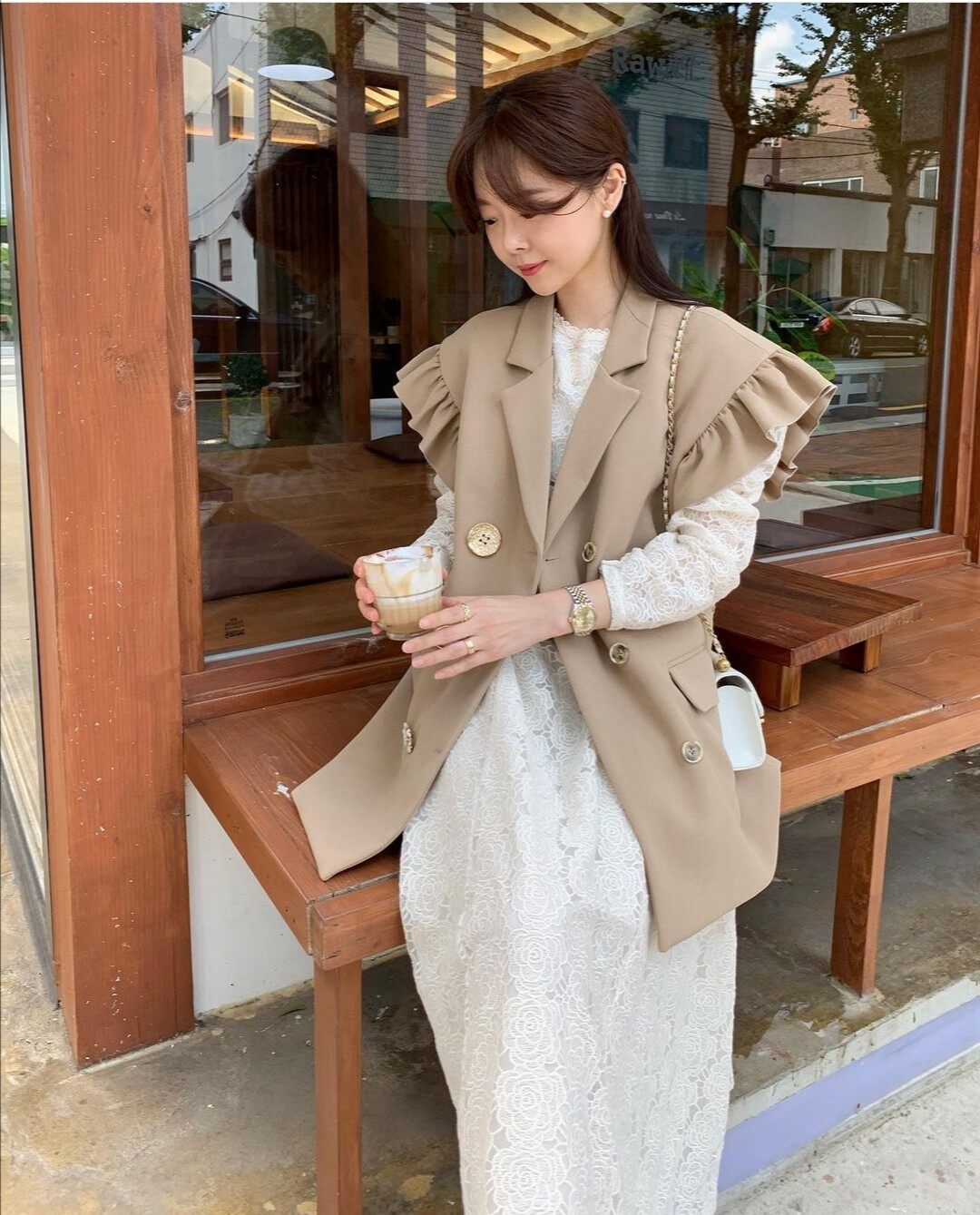 优雅气质重工缕空勾花长款连衣裙+百搭木耳边飞飞袖马甲