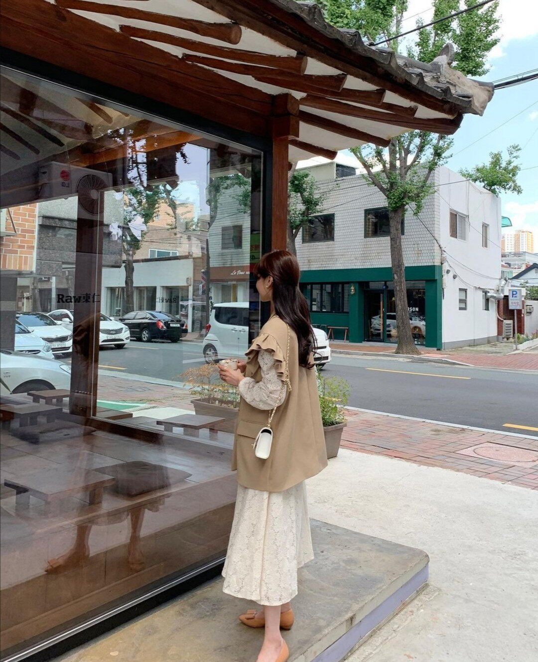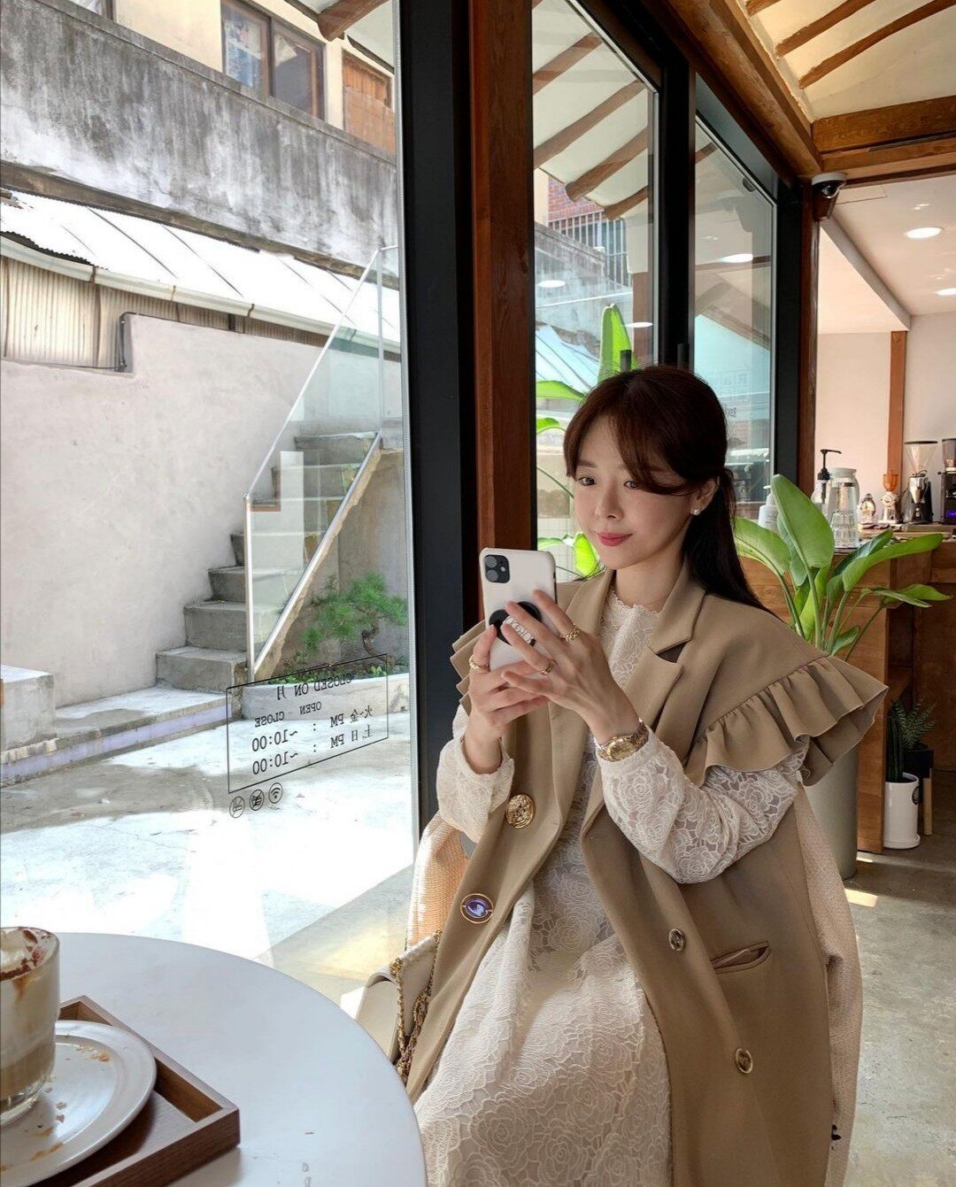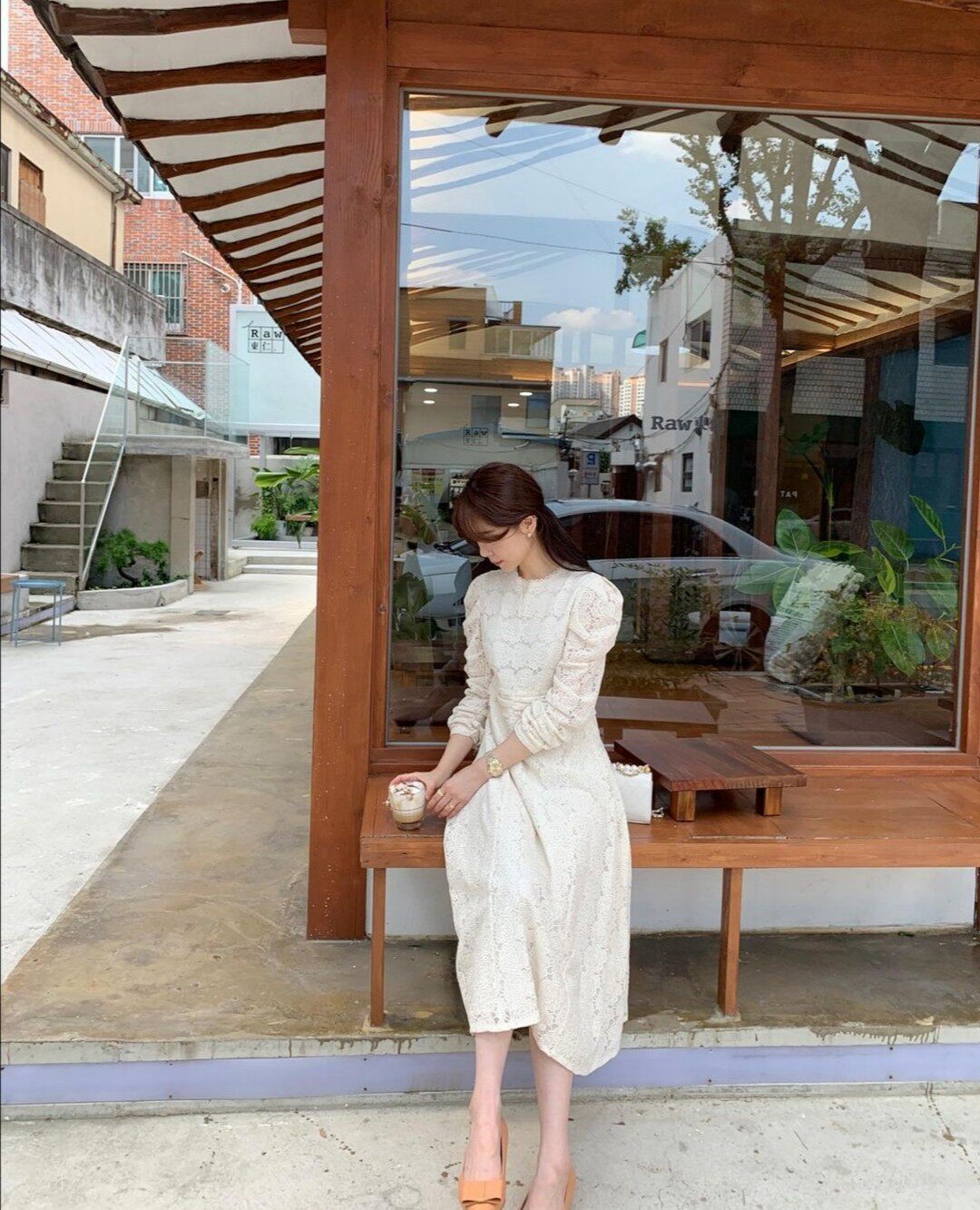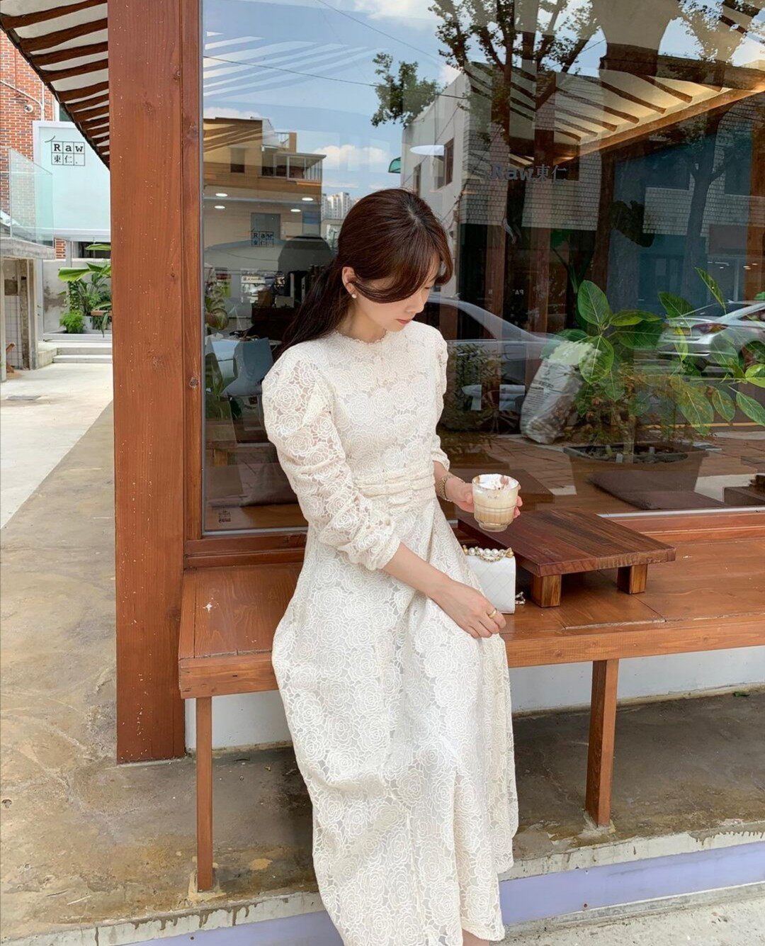 优雅气质重工缕空勾花长款连衣裙+百搭木耳边飞飞袖马甲