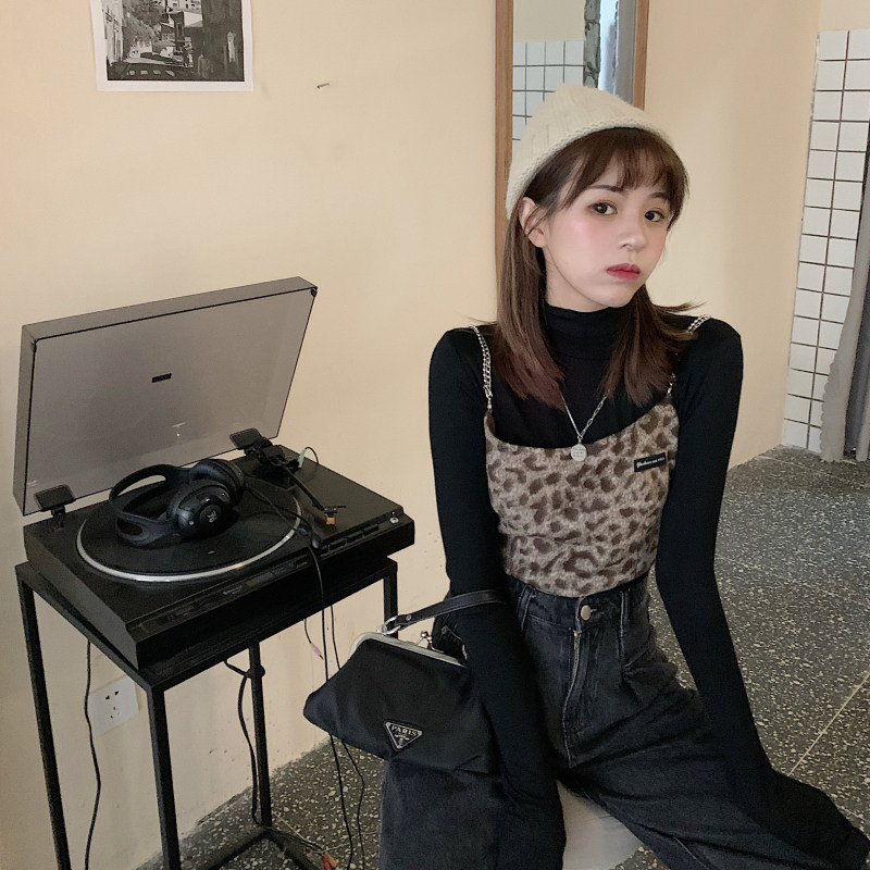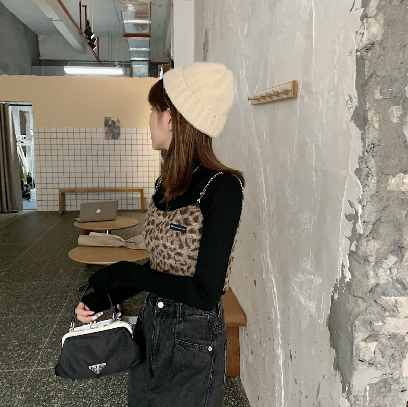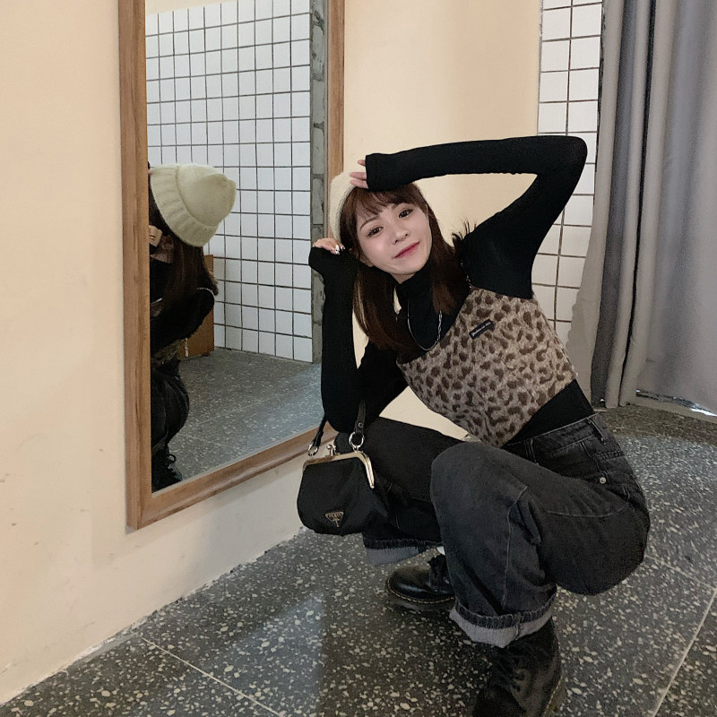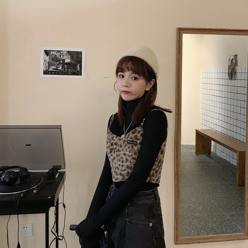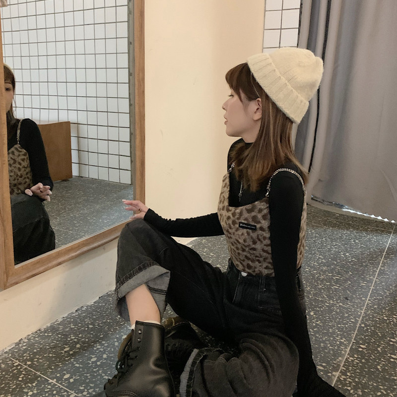- 颜色分类:毛呢豹纹吊带