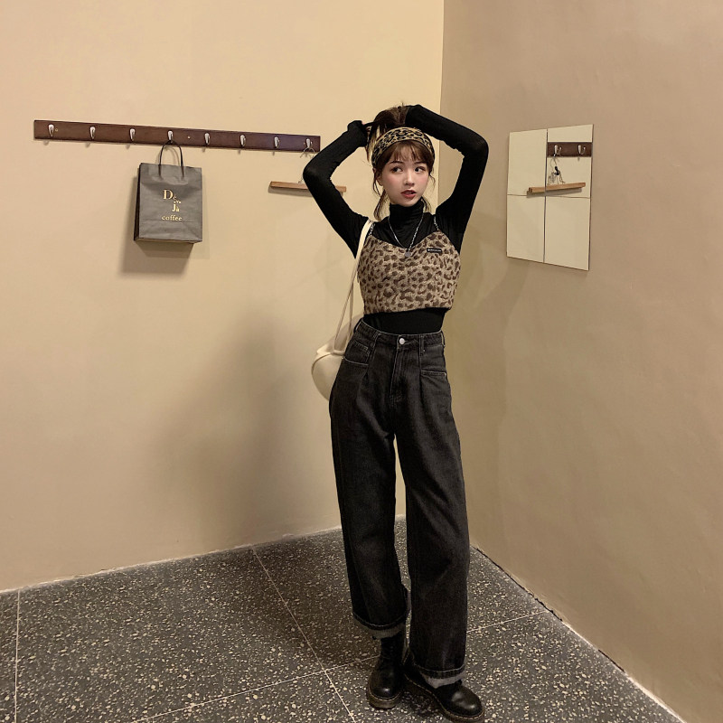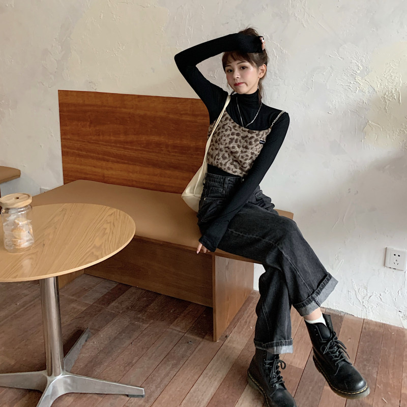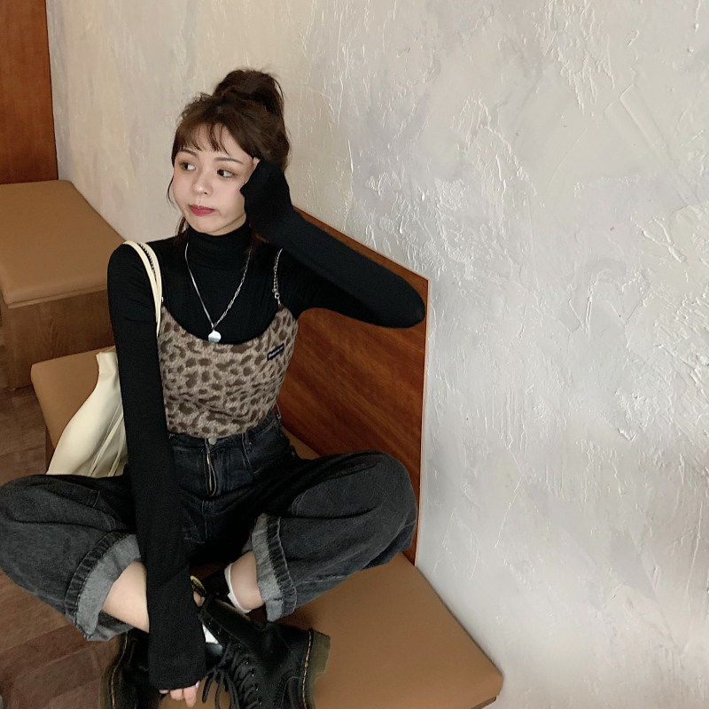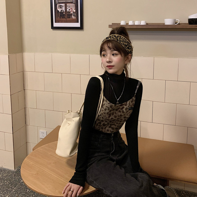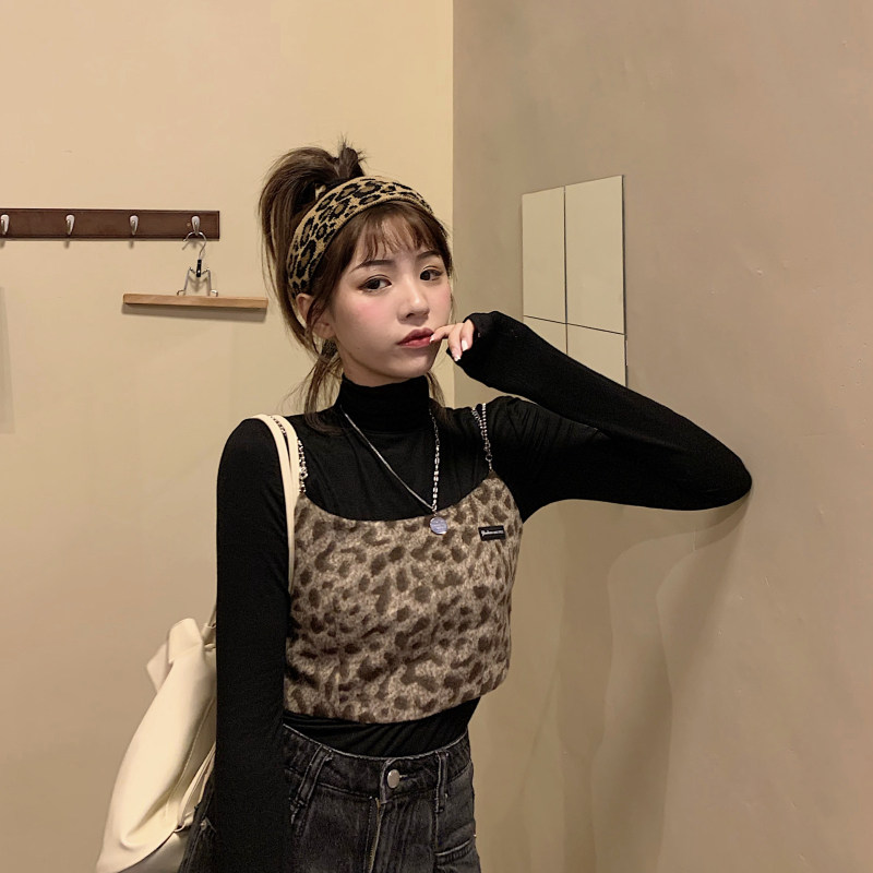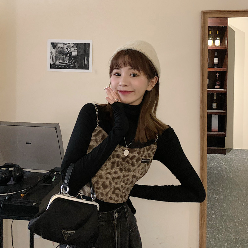 - 颜色分类:毛呢豹纹吊带