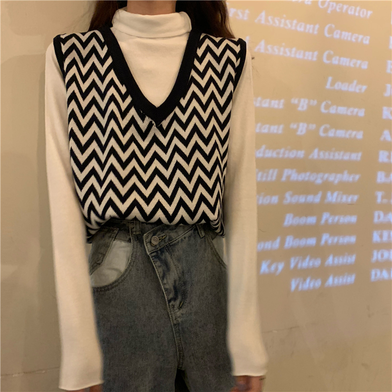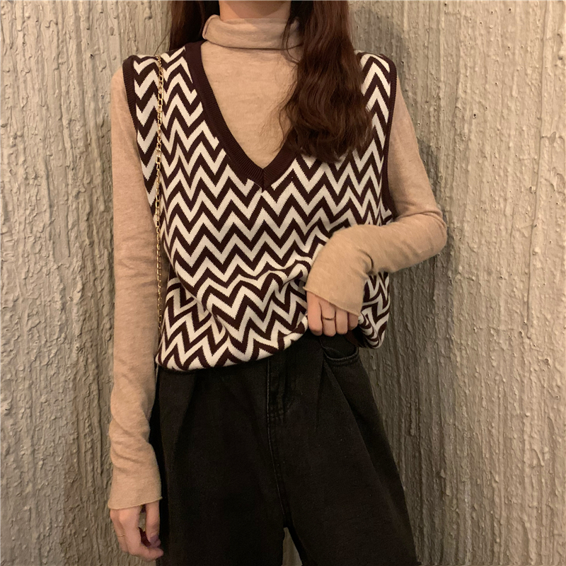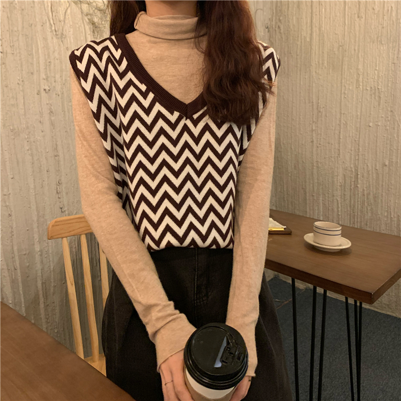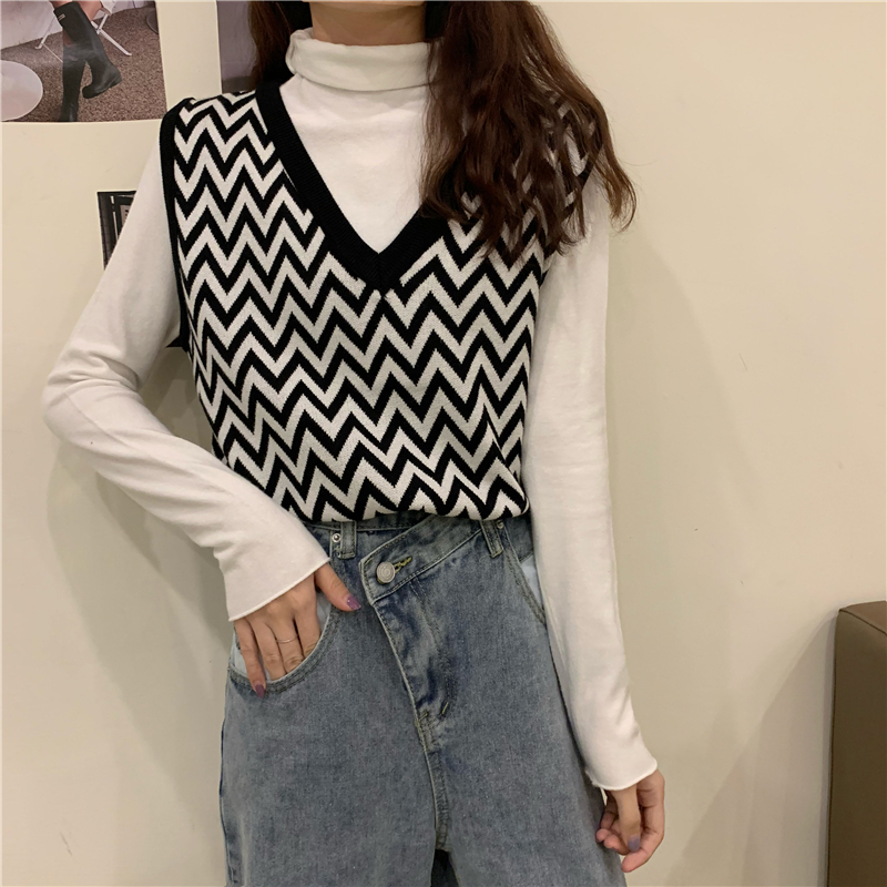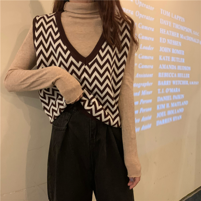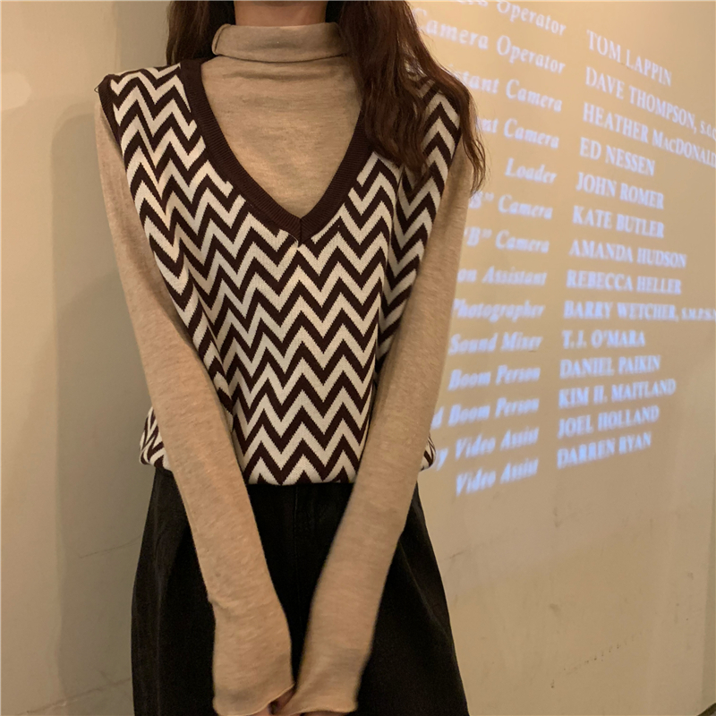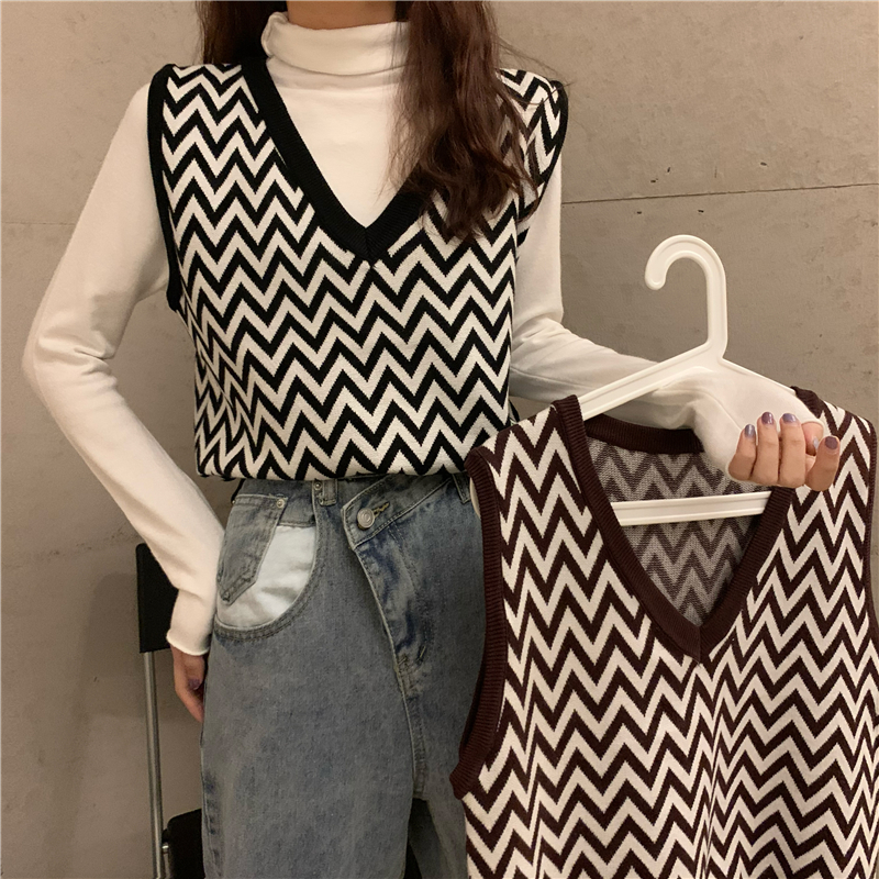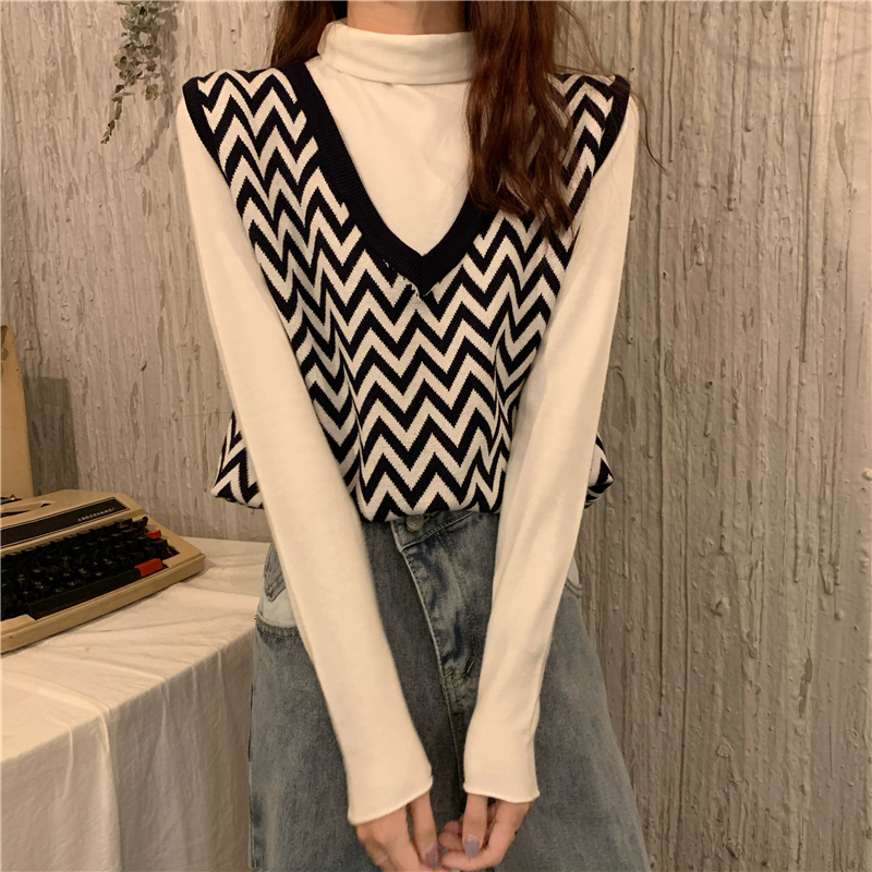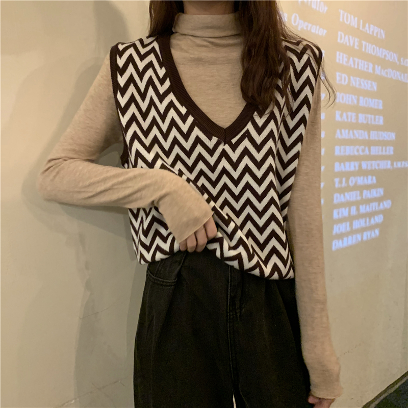 Color/颜色: 黑色 棕色 白色内搭 杏色内搭 Size/尺寸:均码/FREE 马甲衣长45 胸围90 肩宽40 打底衣长58 胸围88 肩宽34 袖长55 *尺寸均为人工手量,有1-3cm误差属正常 |
