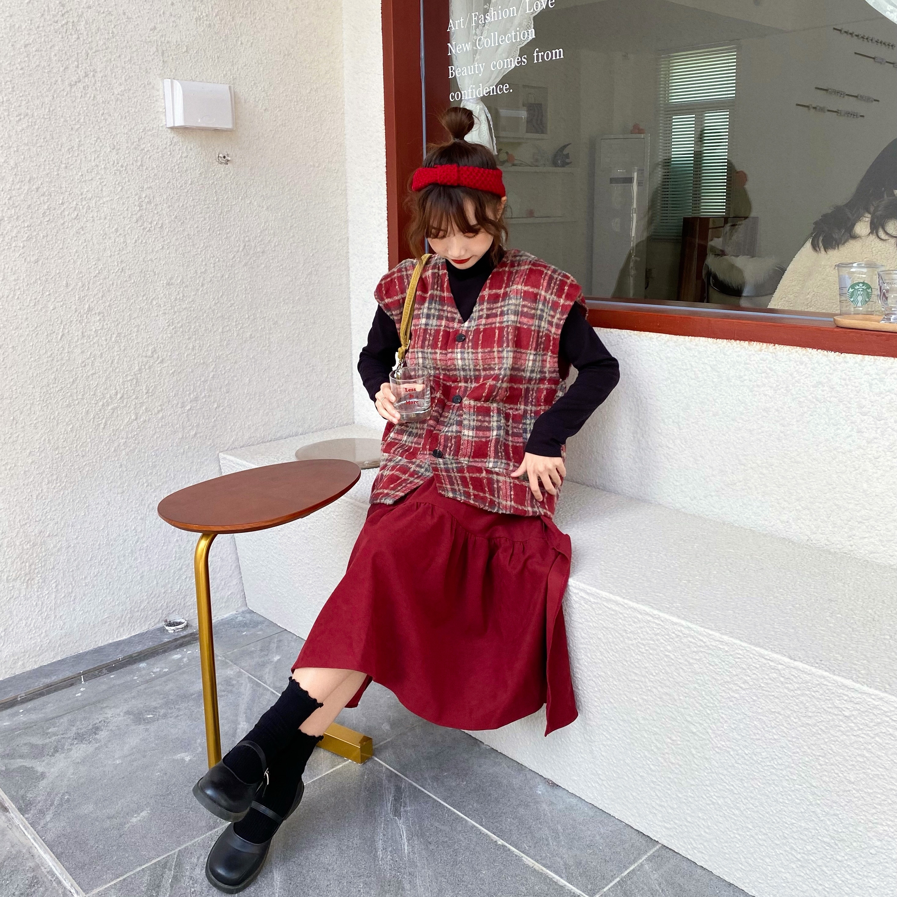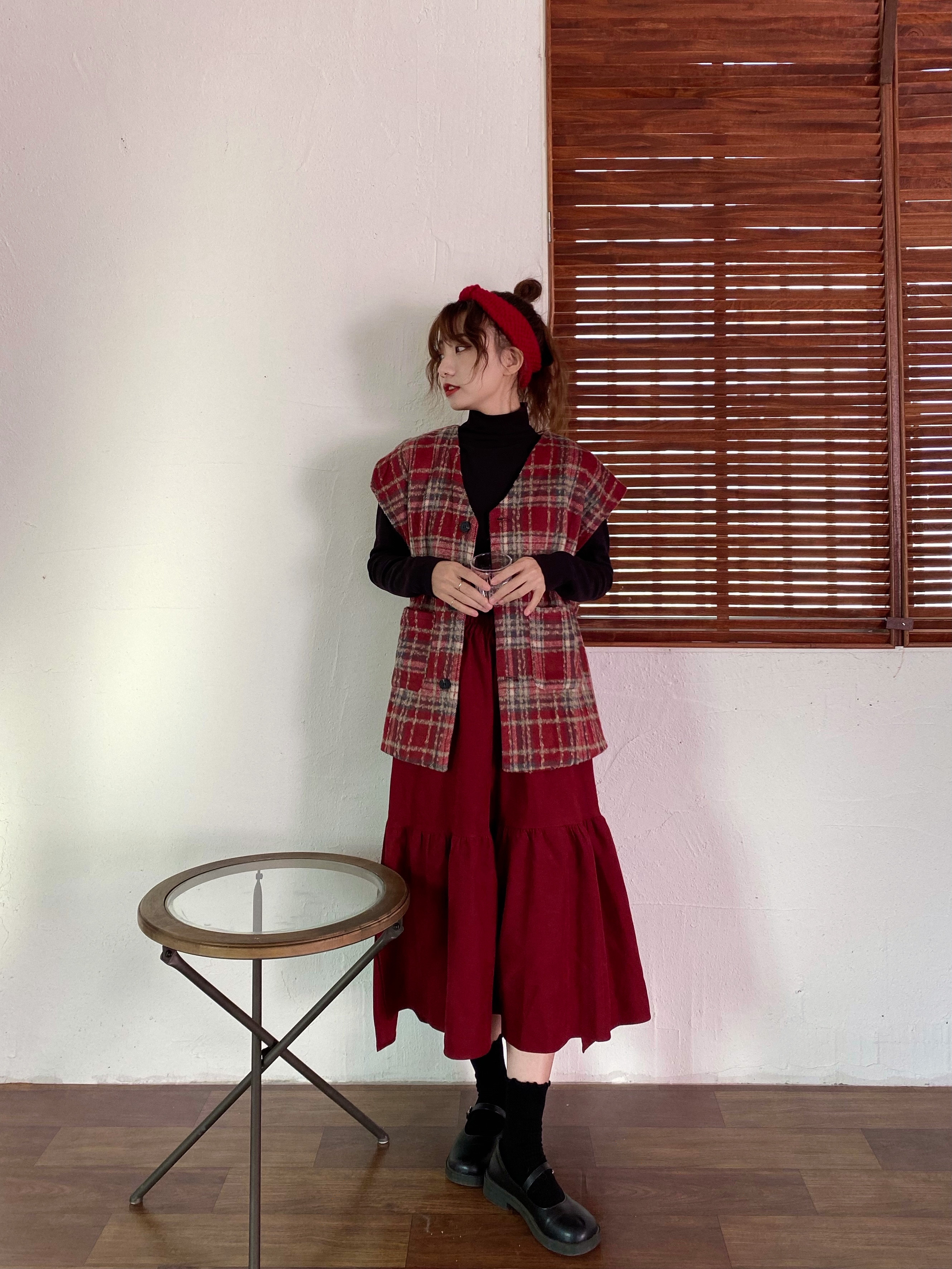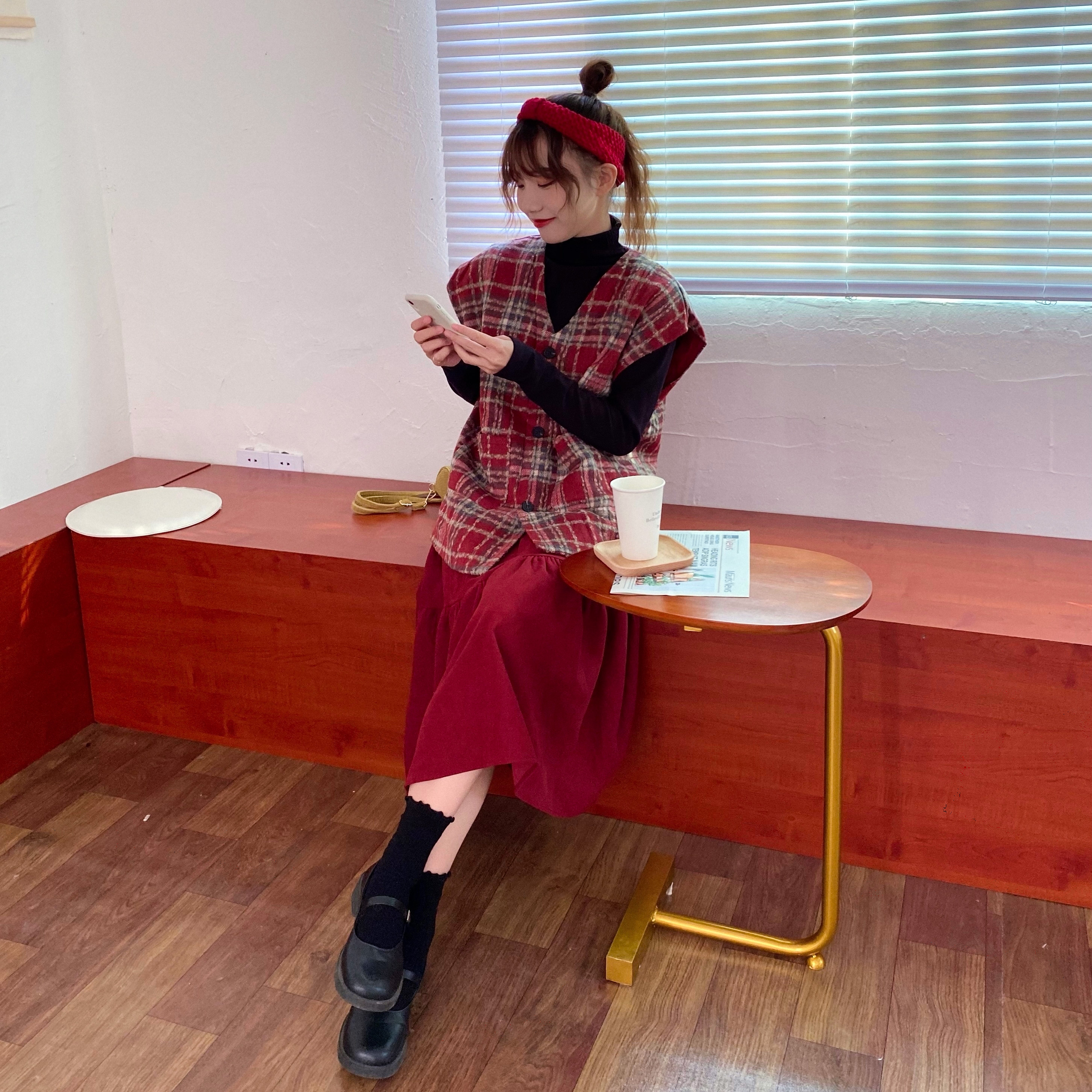 实拍实价 秋冬随性叠搭学院风格子呢马甲背心女宽松背心