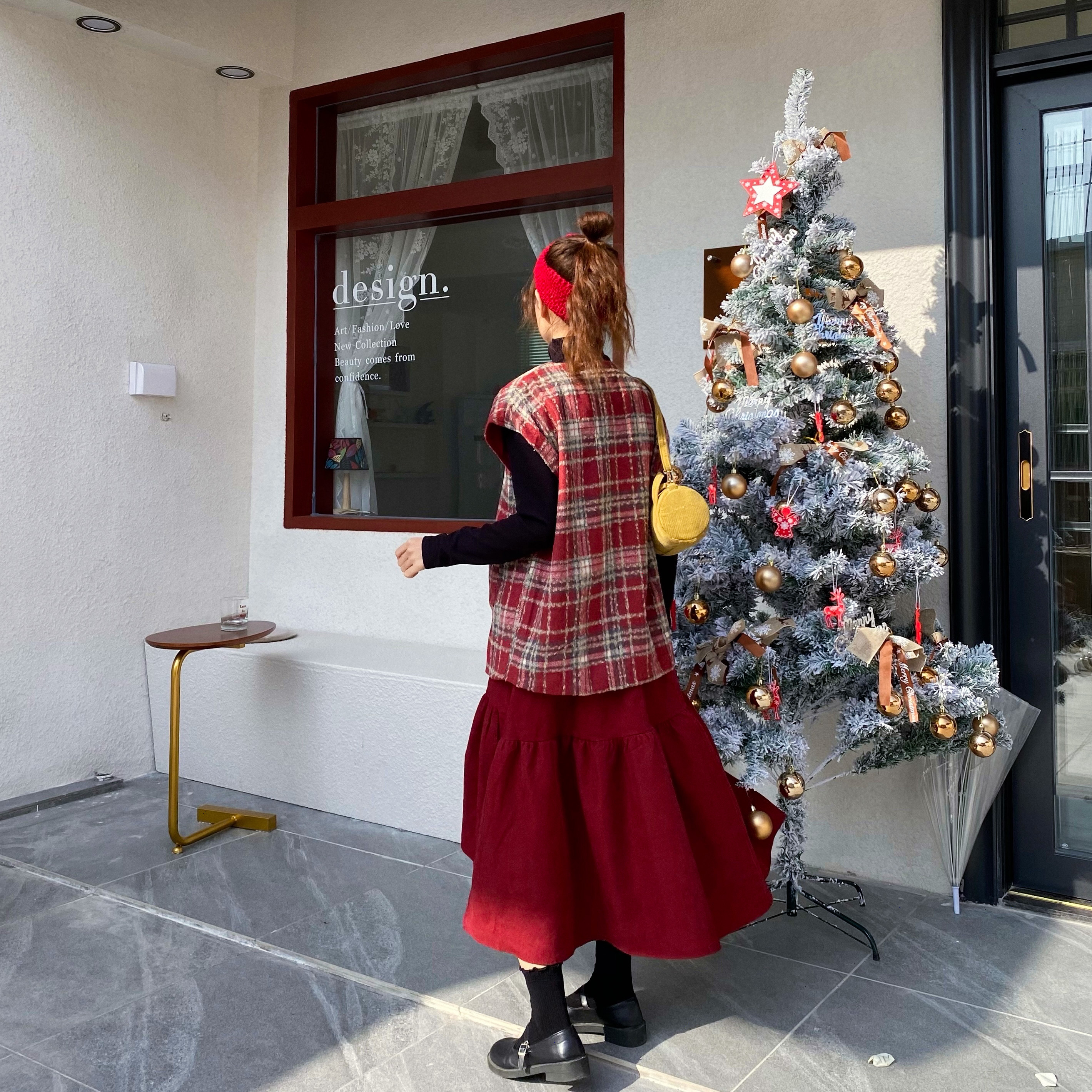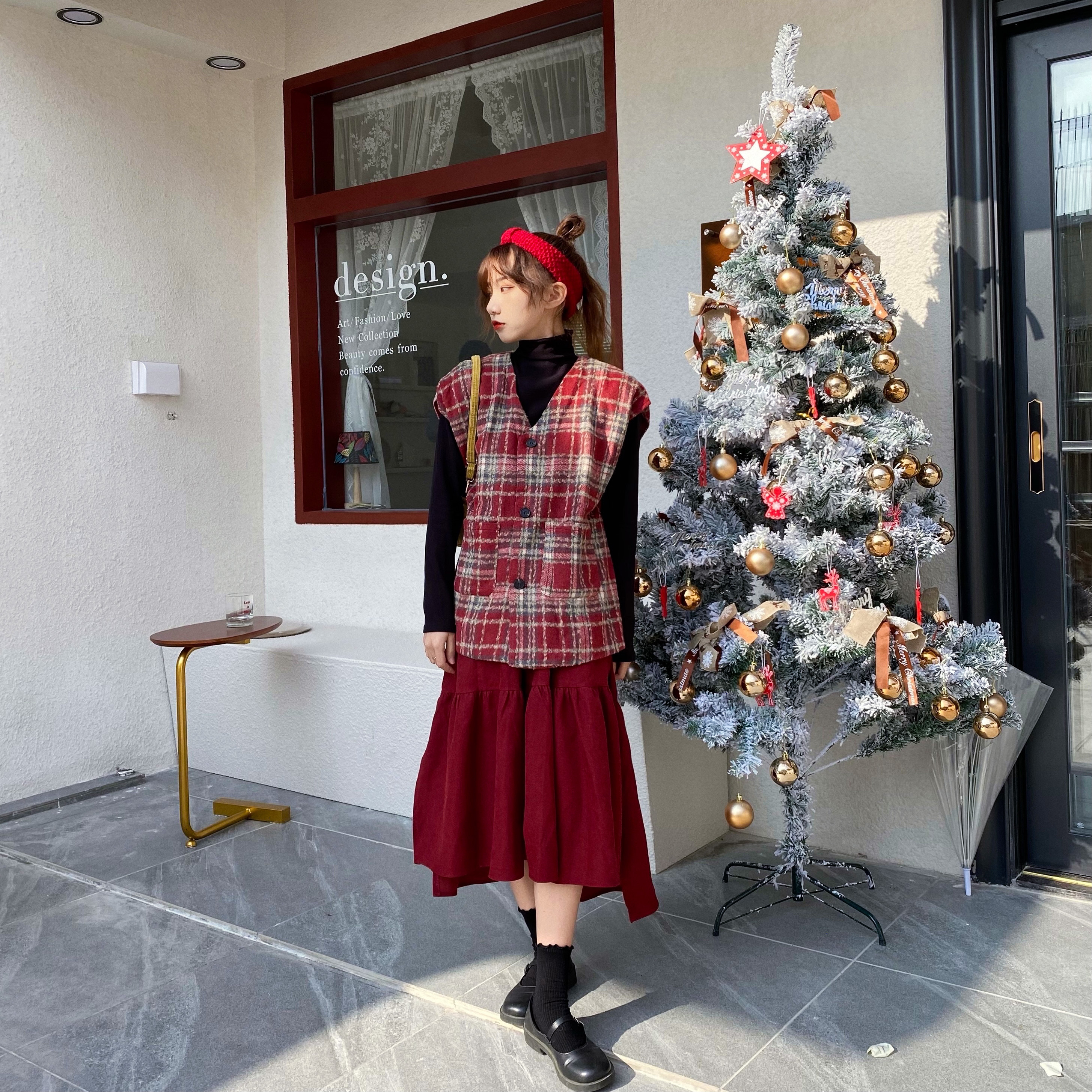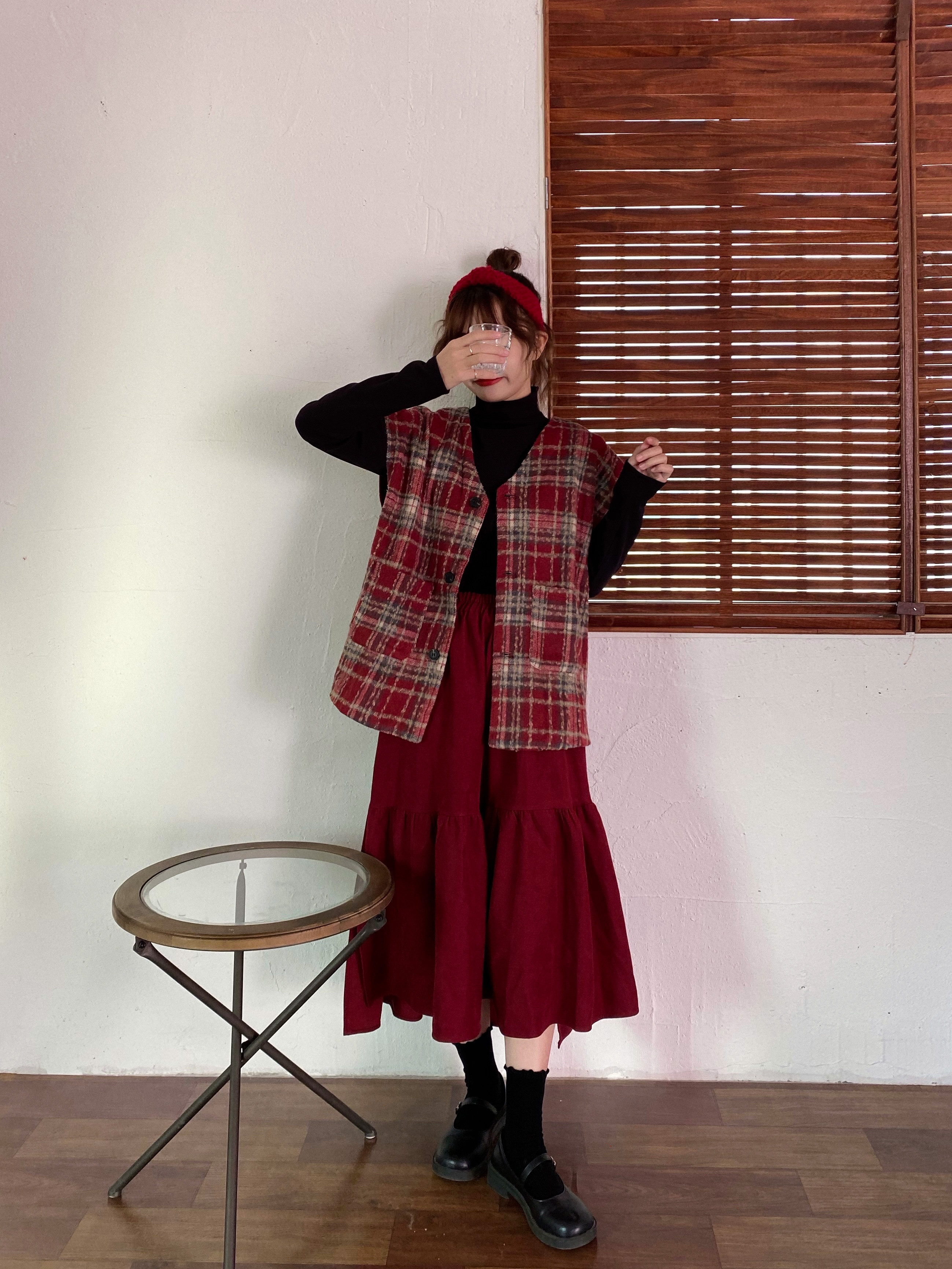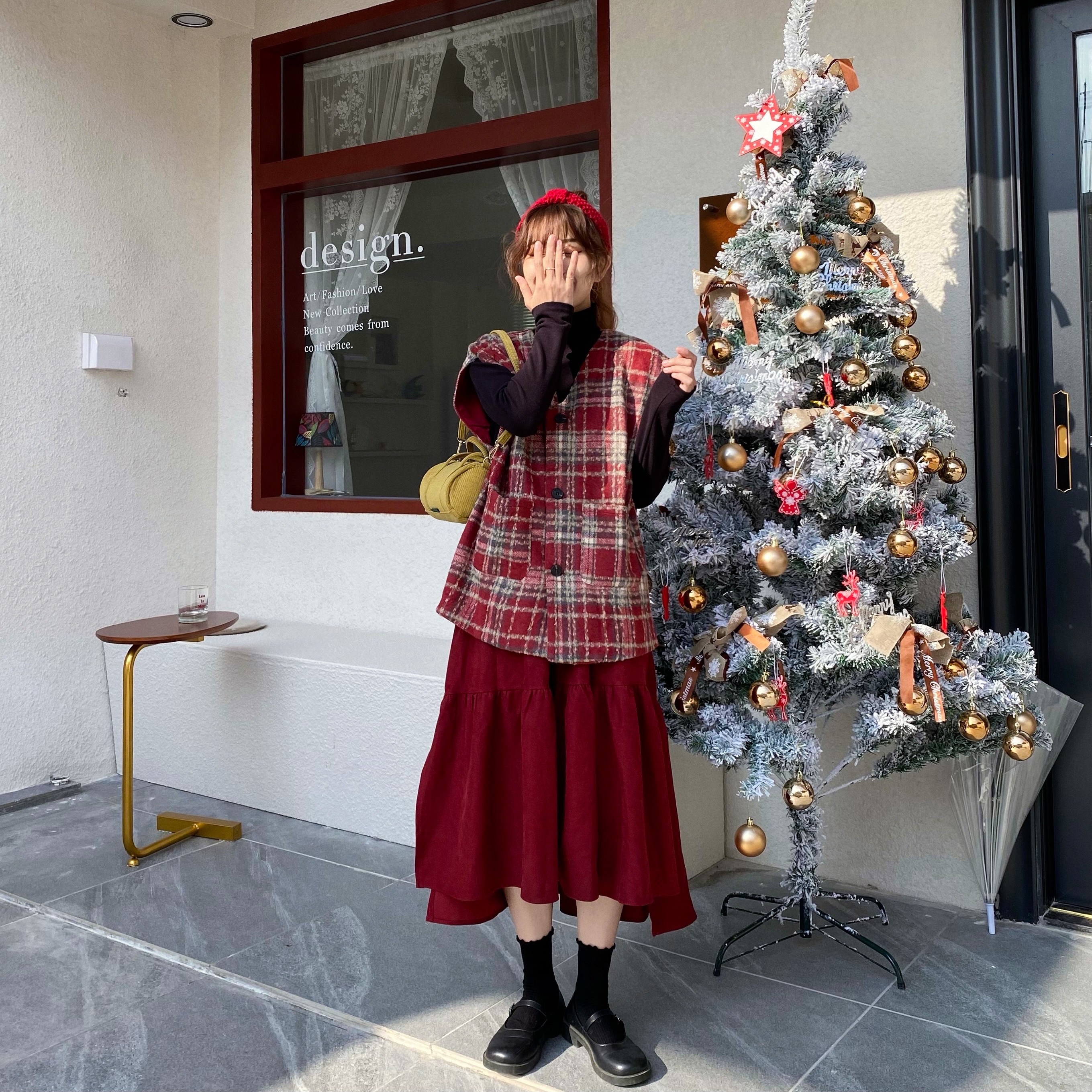 实拍实价 秋冬随性叠搭学院风格子呢马甲背心女宽松背心