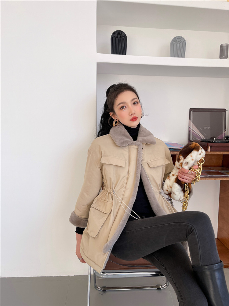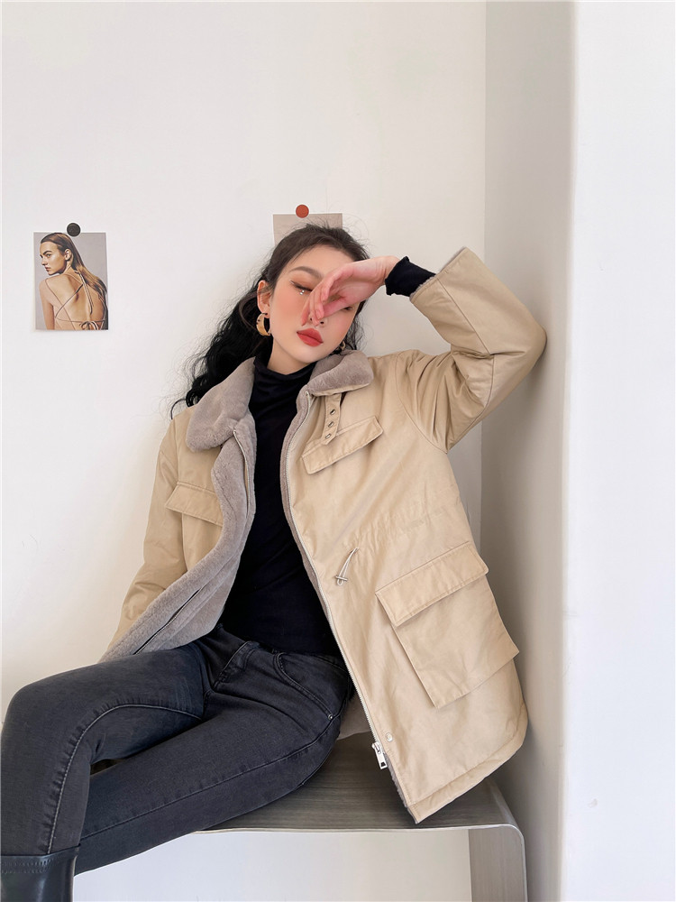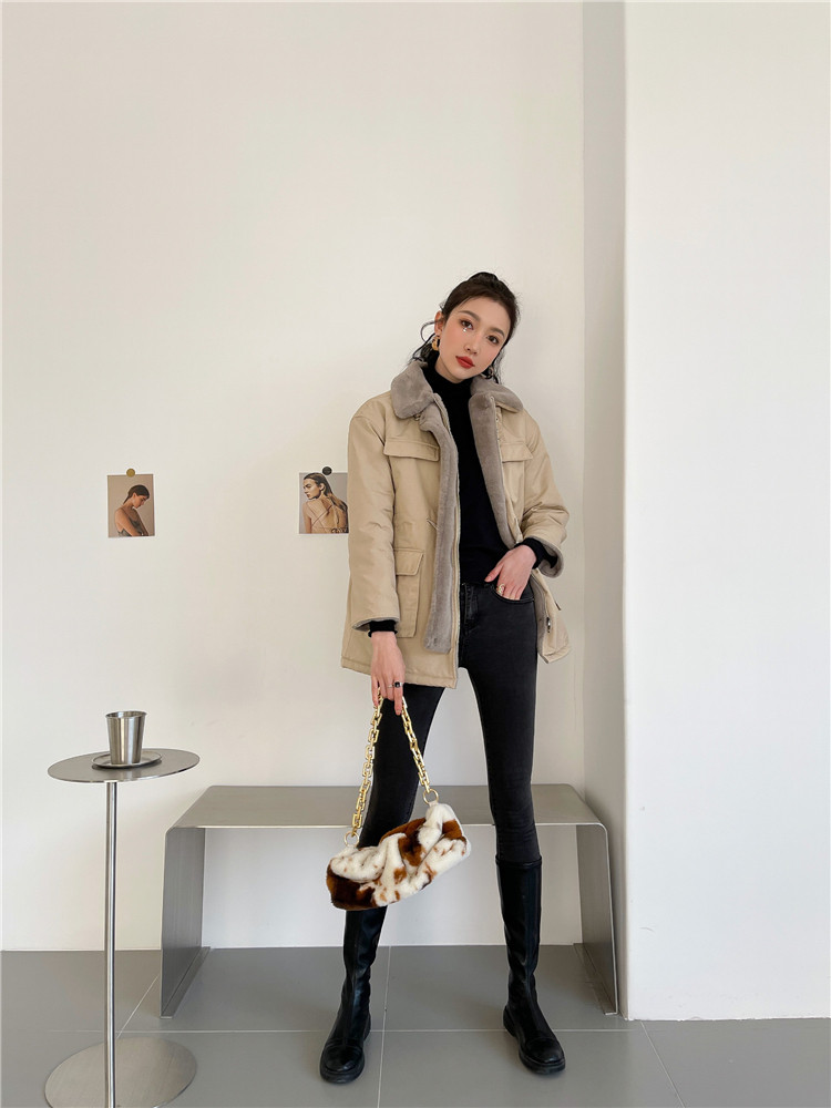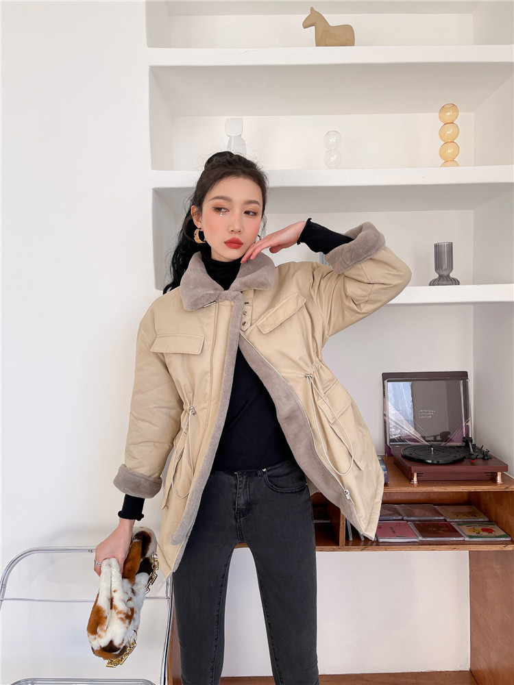 现货#羊羔毛绒外套女秋冬2020新款仿兔毛内胆中长款棉服