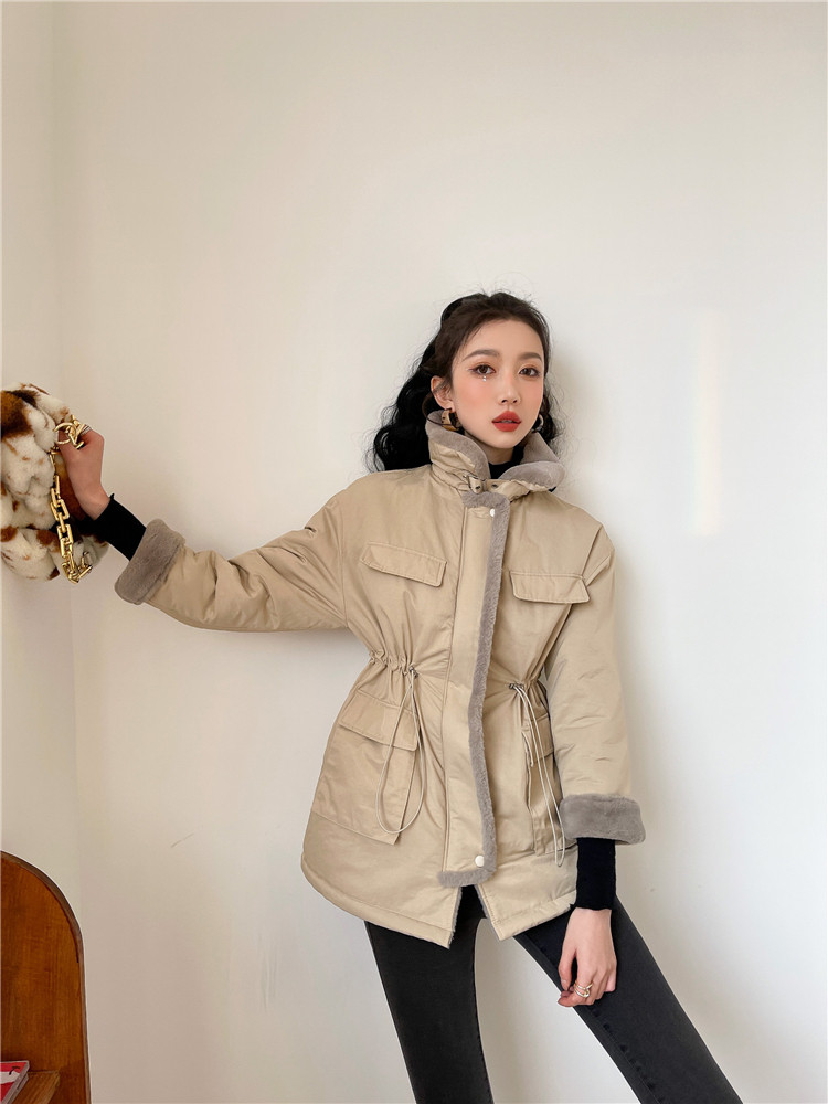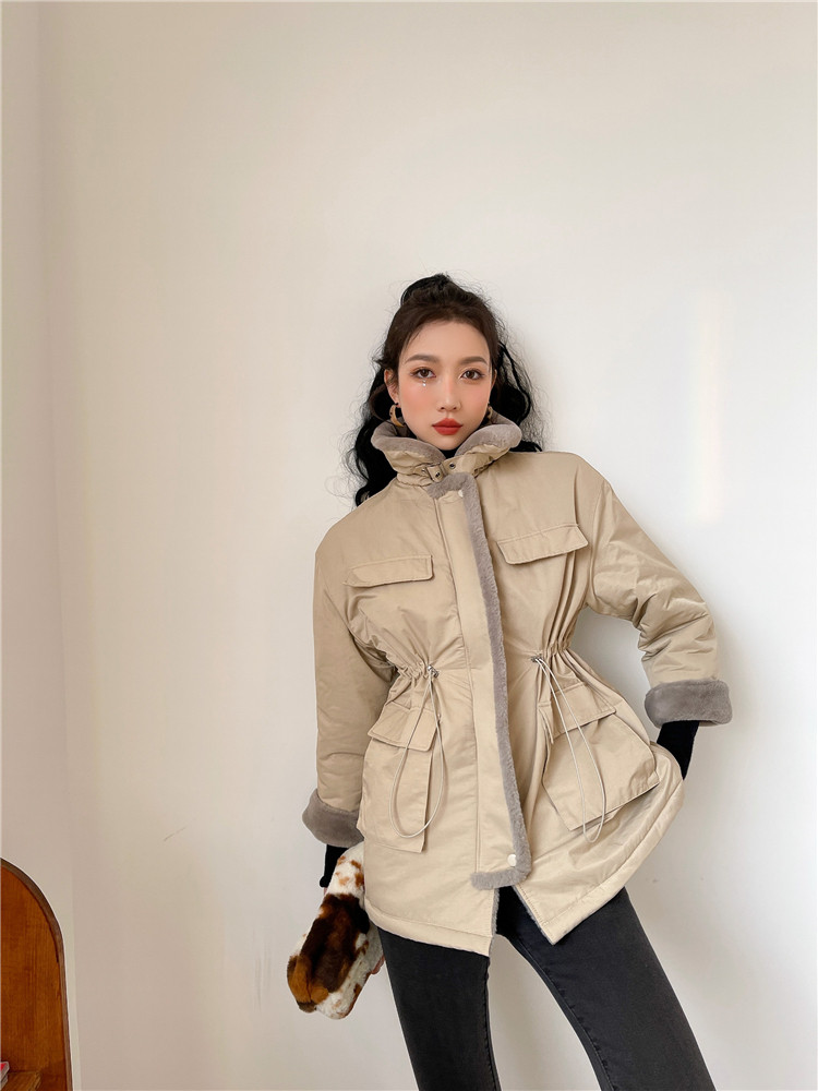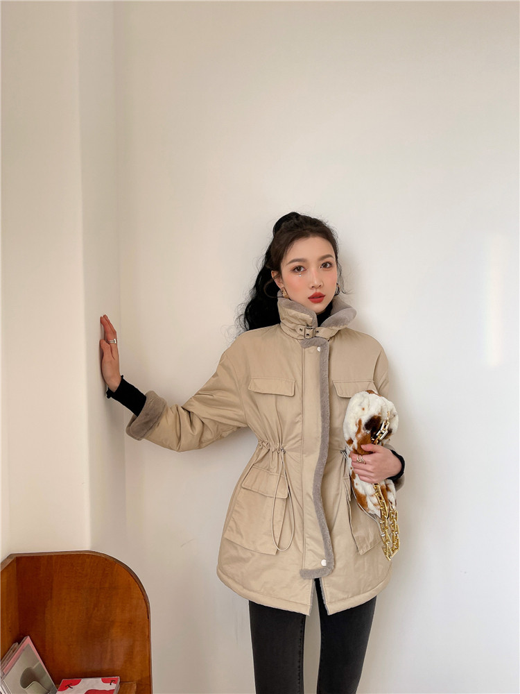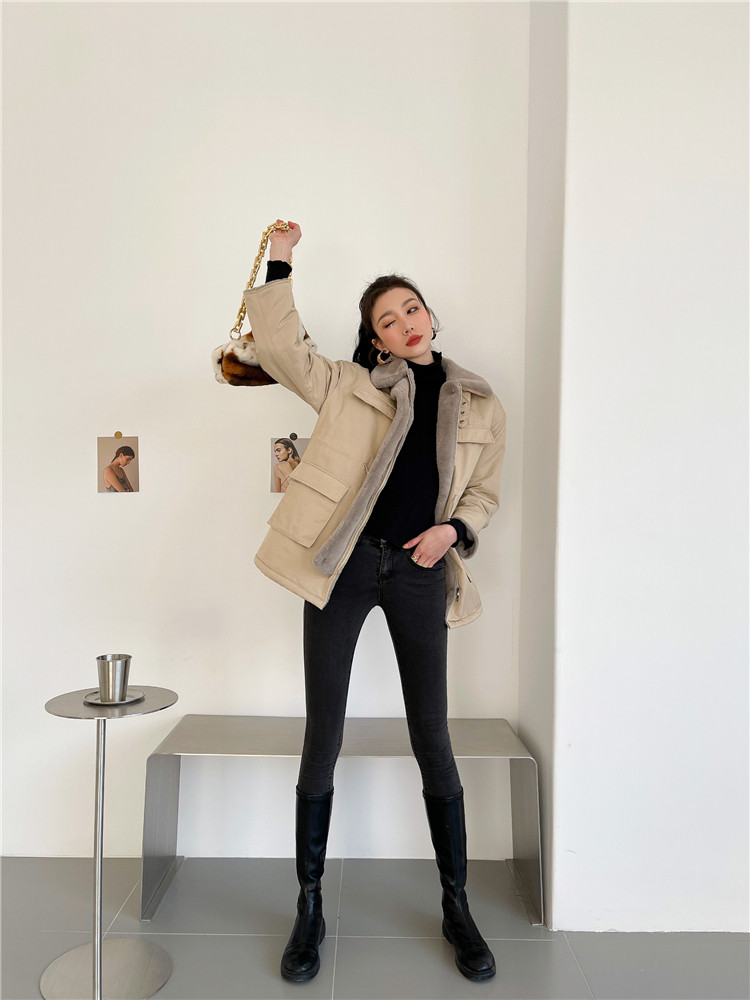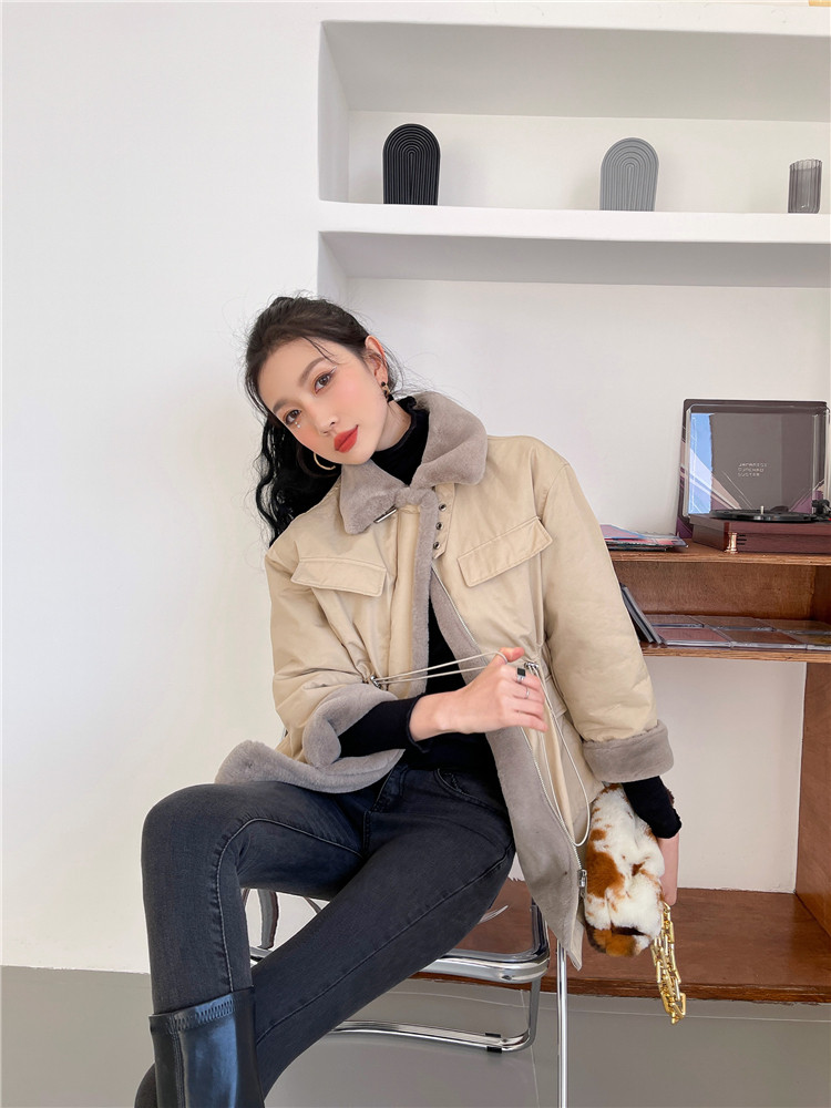 现货#羊羔毛绒外套女秋冬2020新款仿兔毛内胆中长款棉服