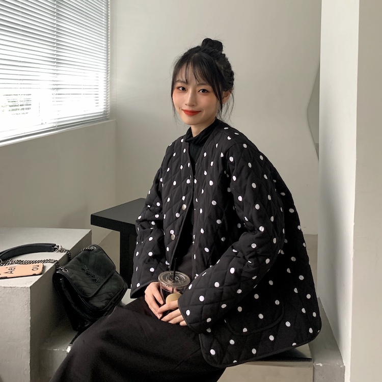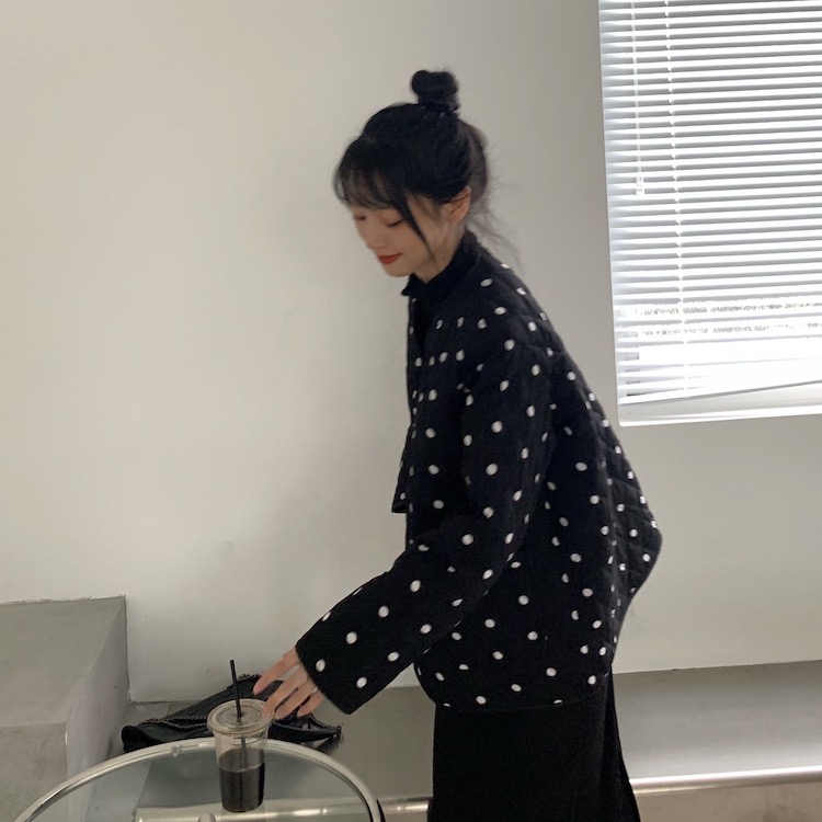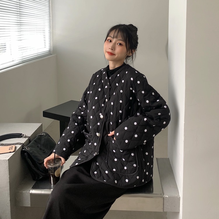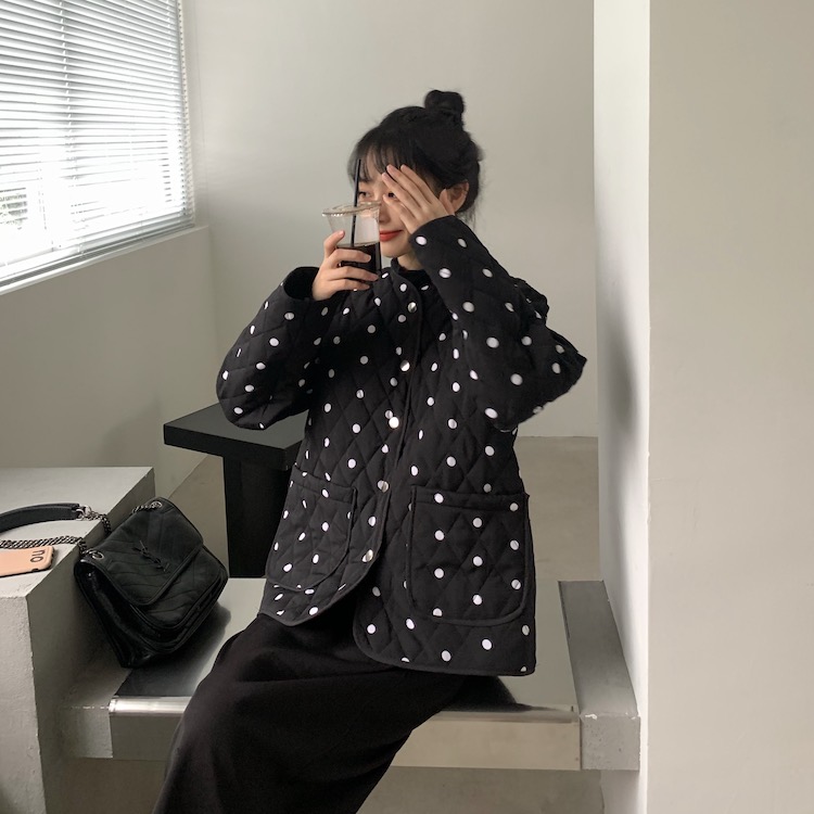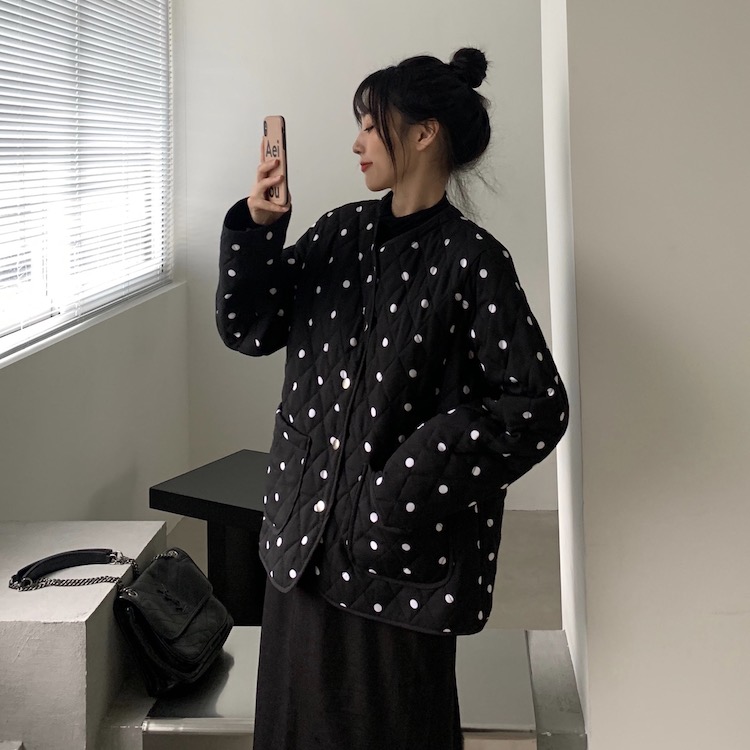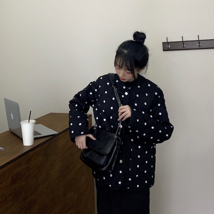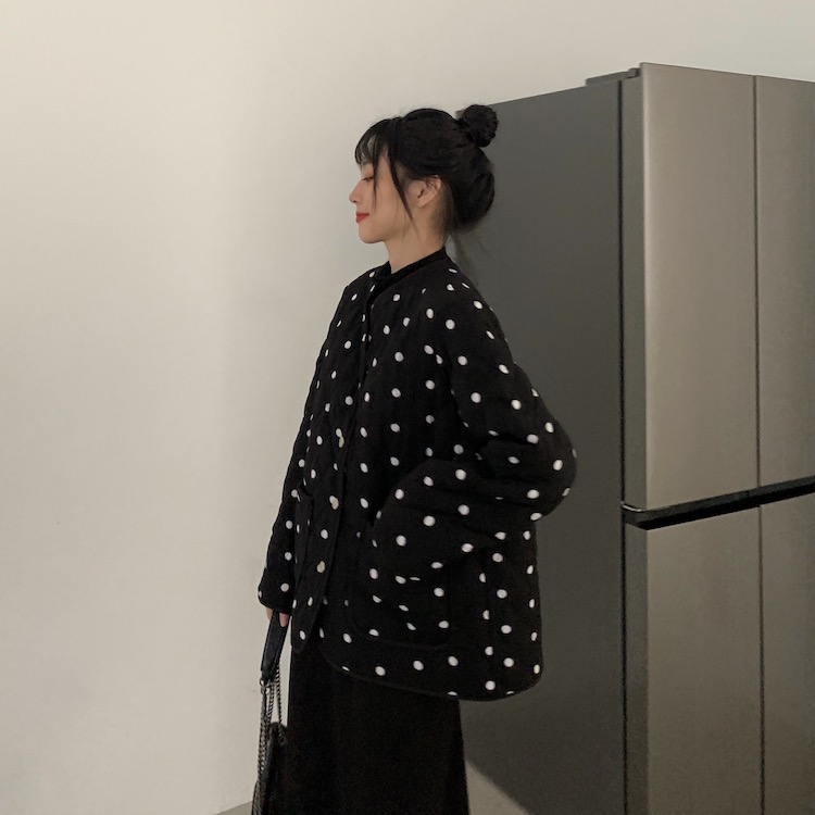实拍 super百搭 学院风 可爱波点 夹棉加厚 棉衣外套