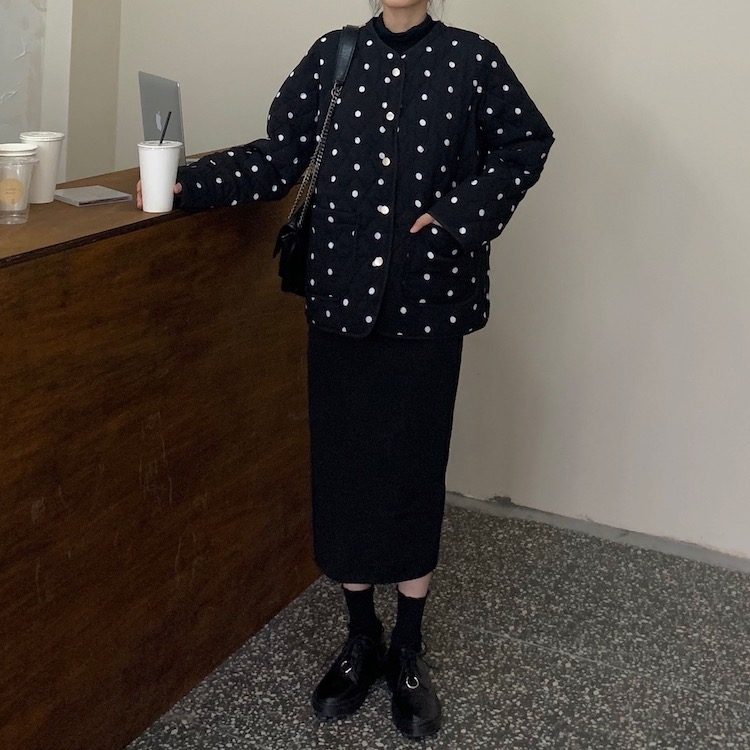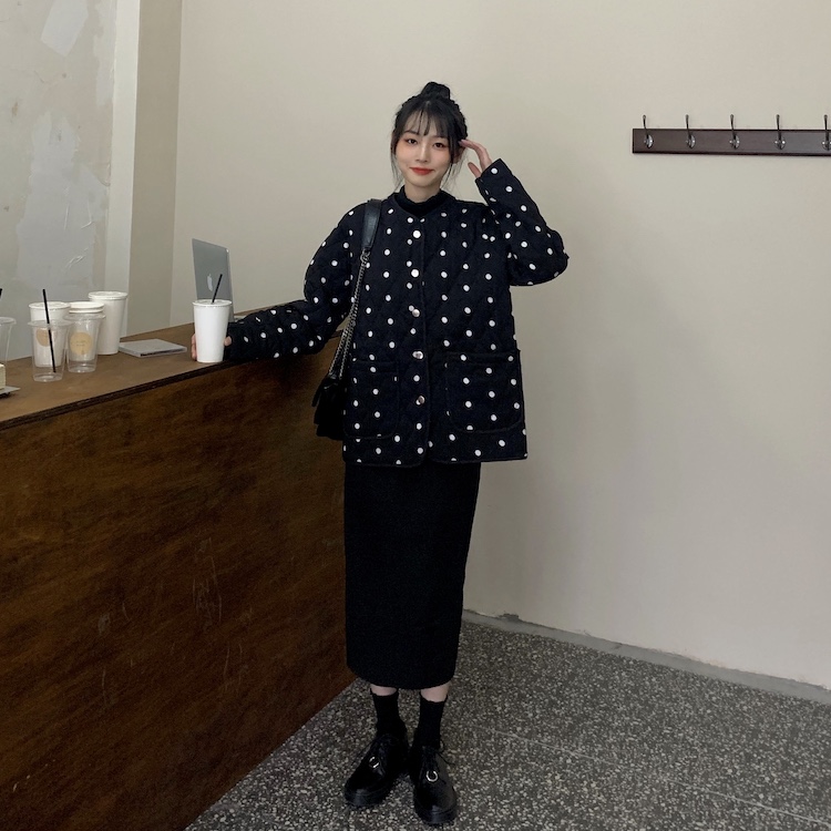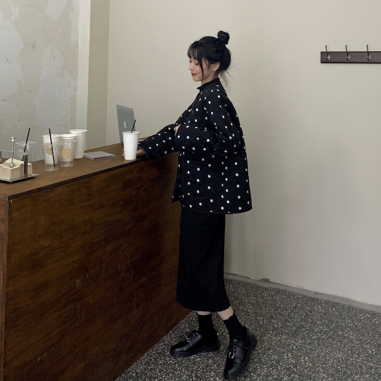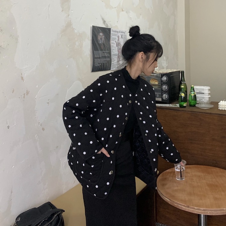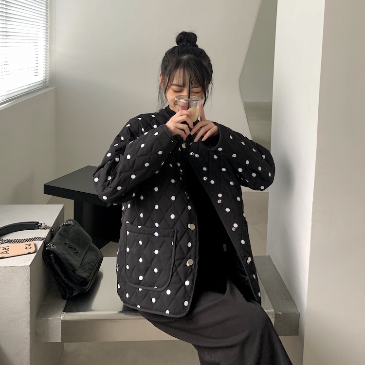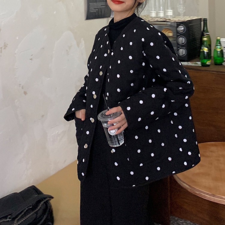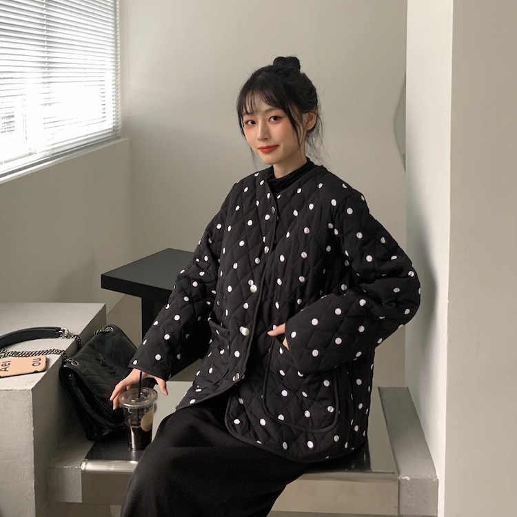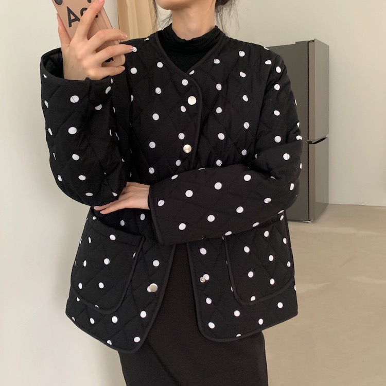 实拍 super百搭 学院风 可爱波点 夹棉加厚 棉衣外套
