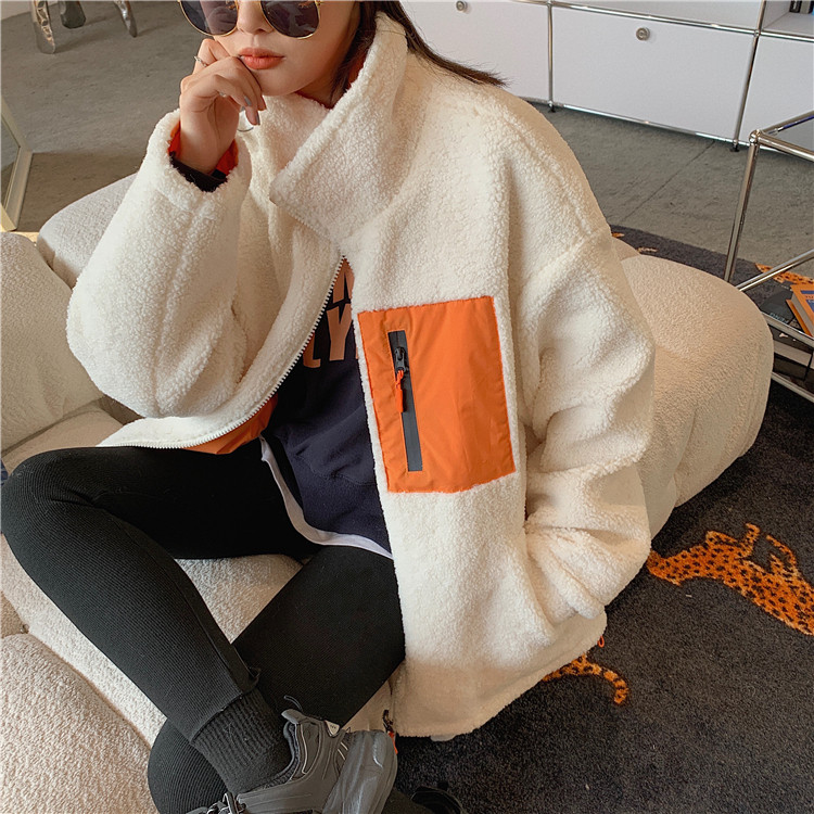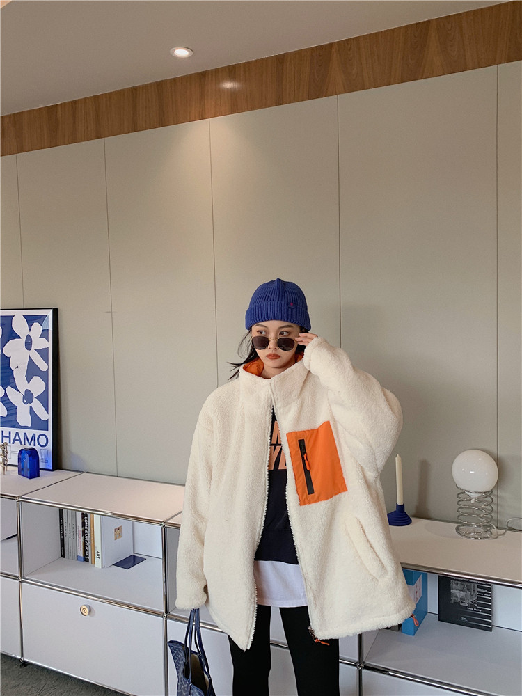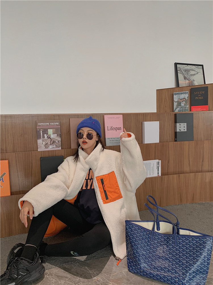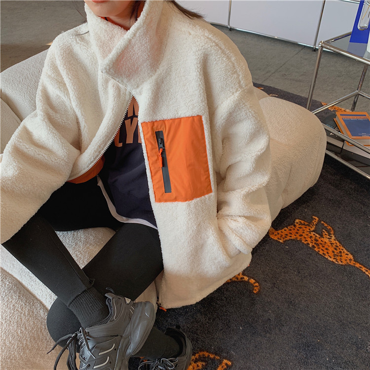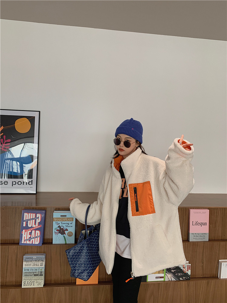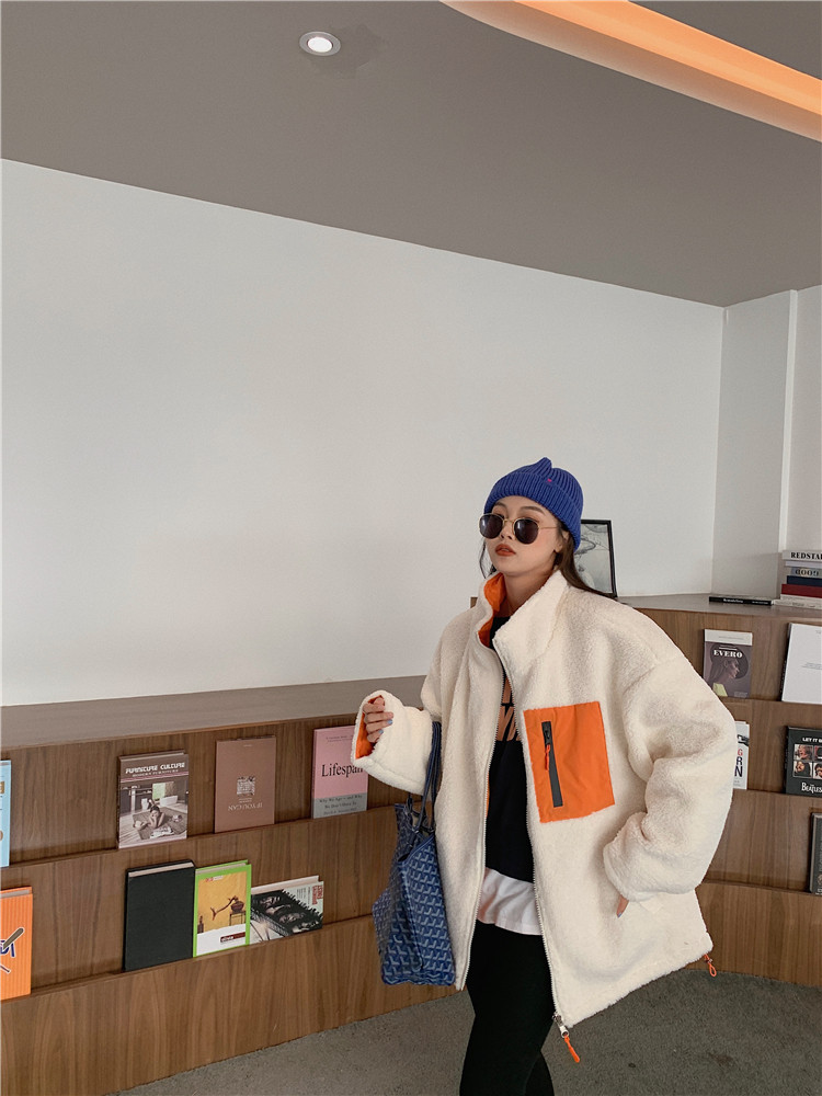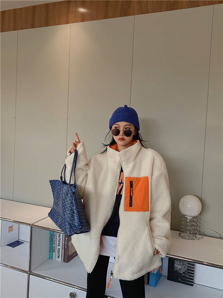 实拍实价 2020秋季新款拼接外套百搭正反两穿宽松休闲羊羔毛棉衣