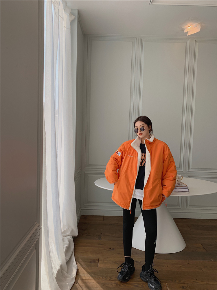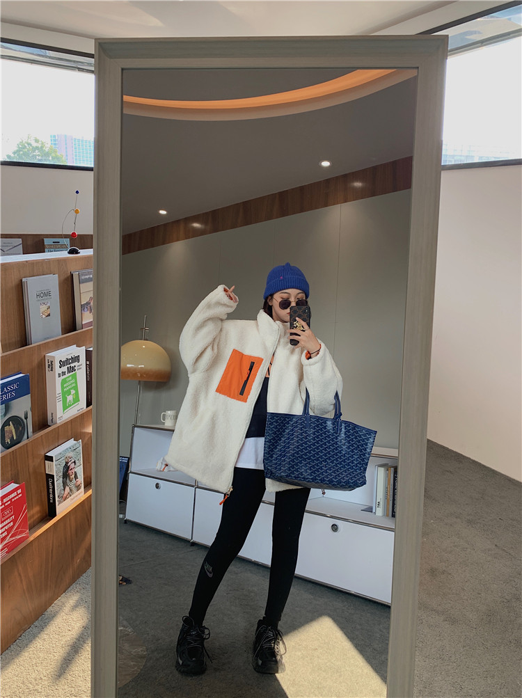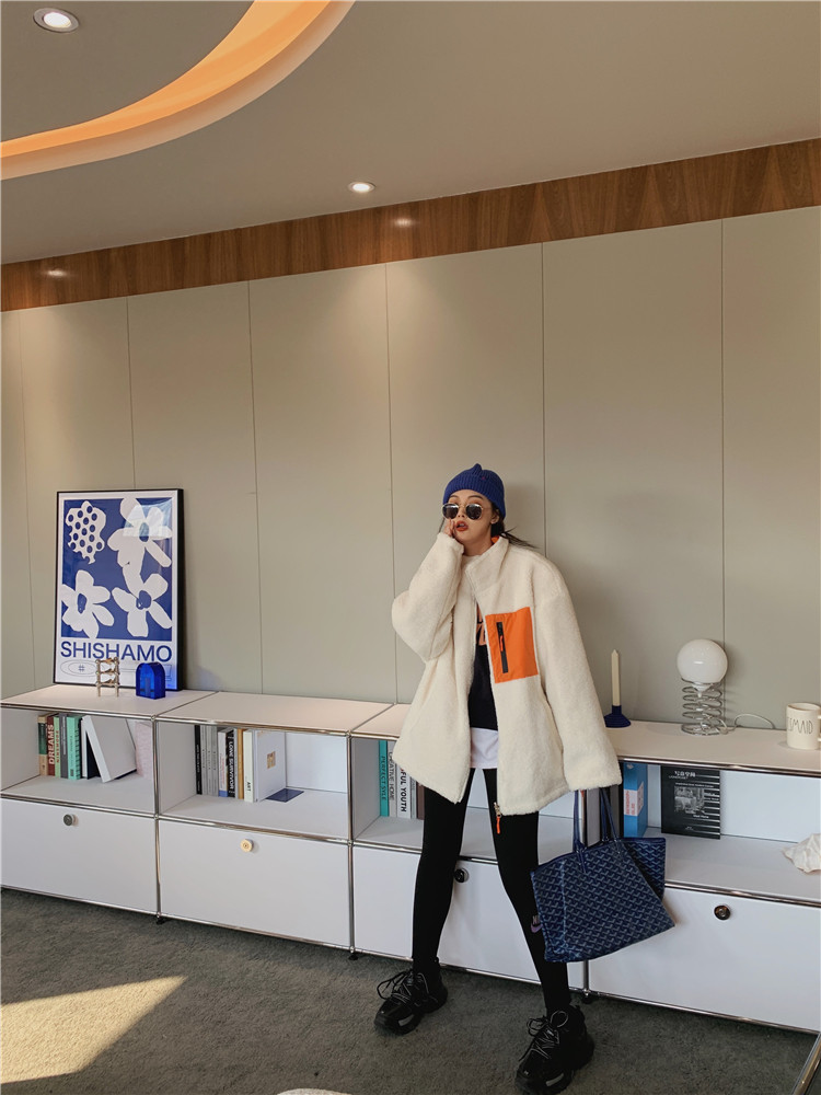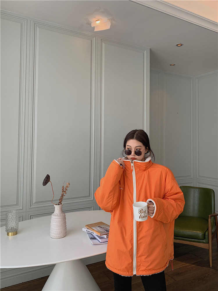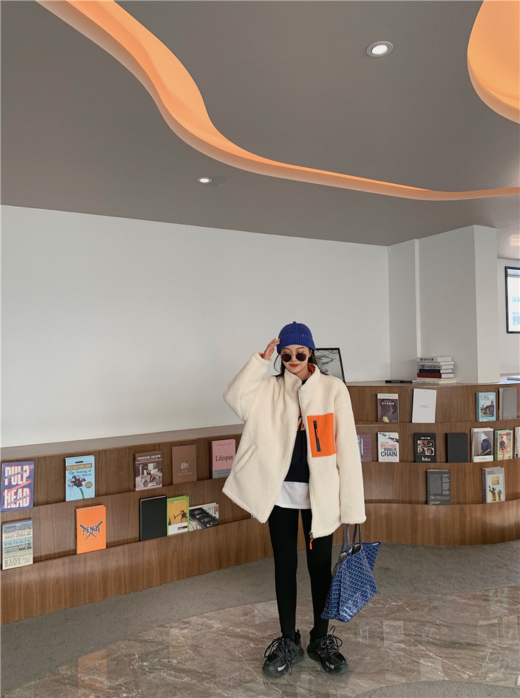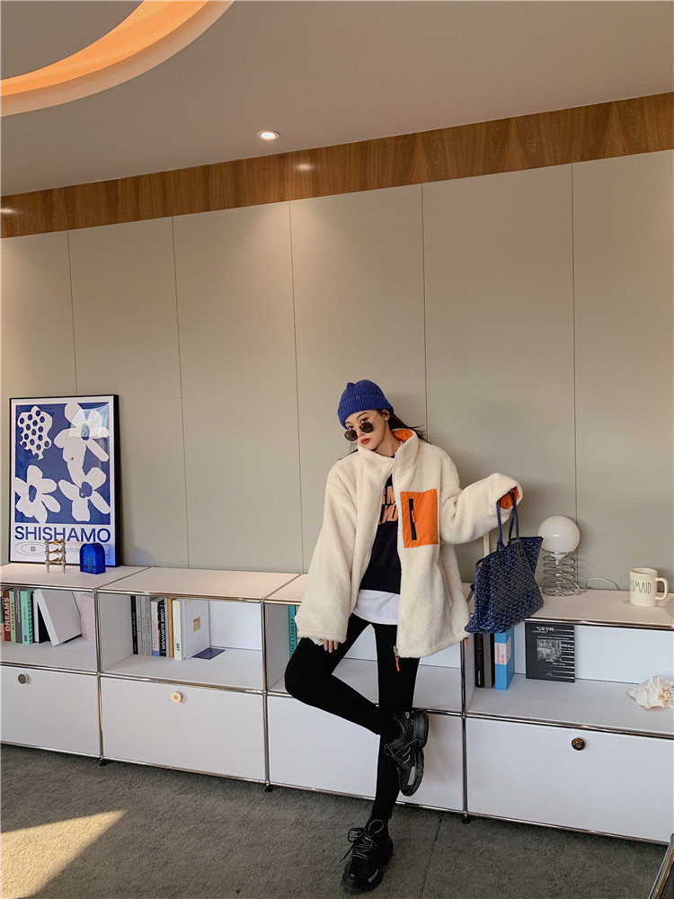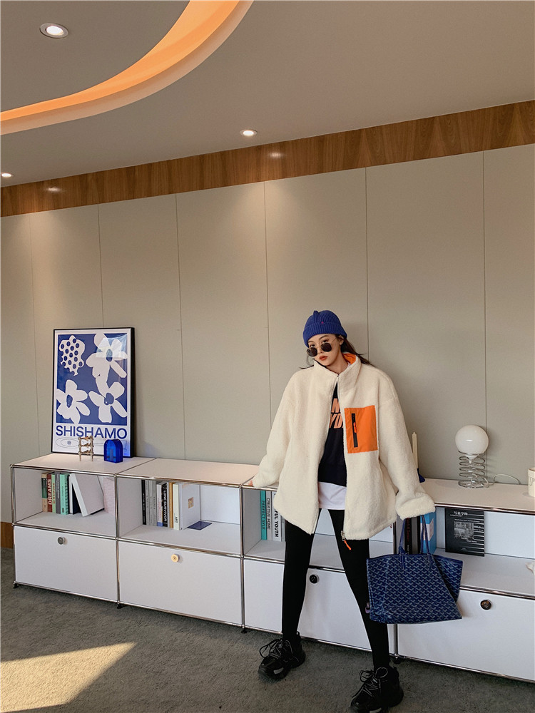 实拍实价 2020秋季新款拼接外套百搭正反两穿宽松休闲羊羔毛棉衣