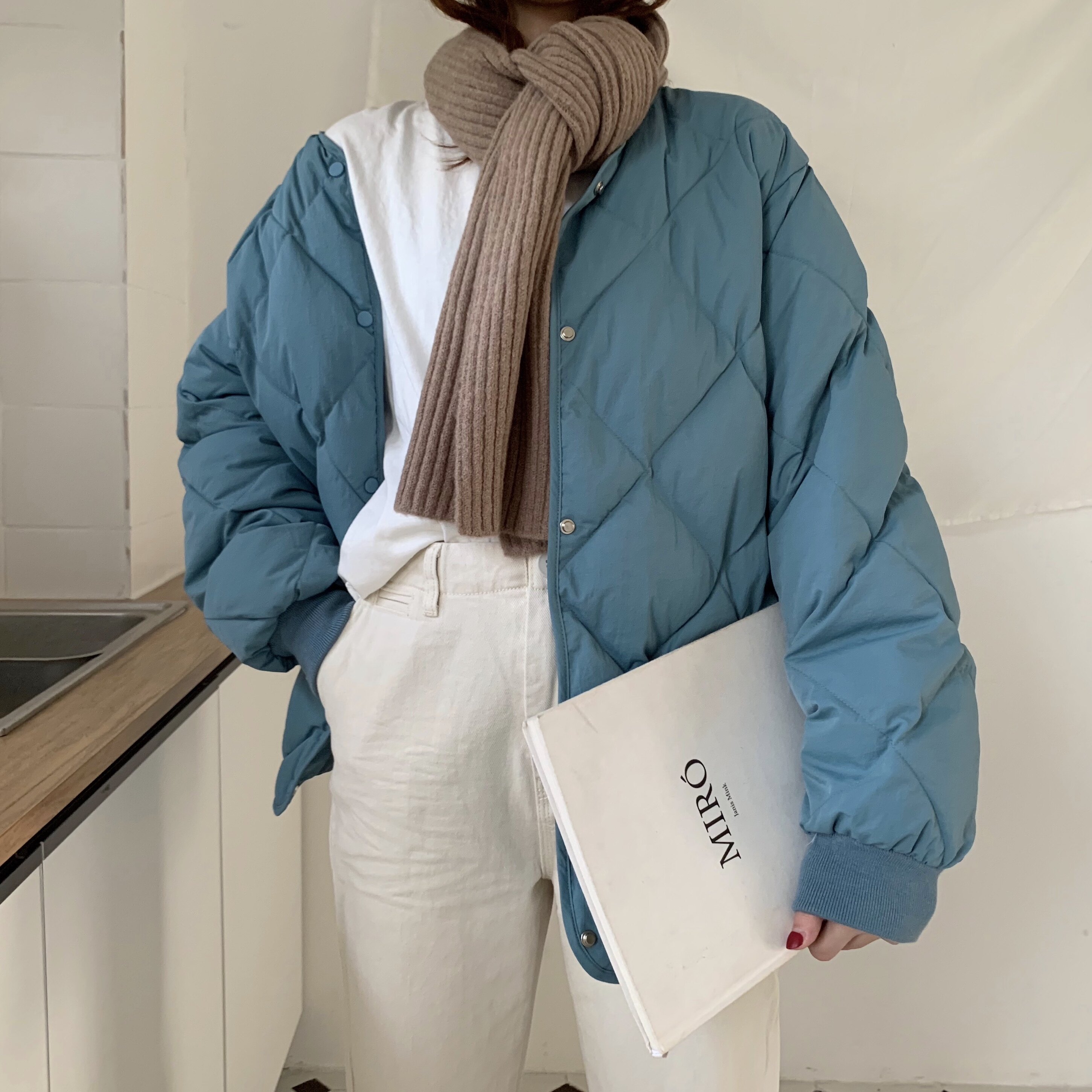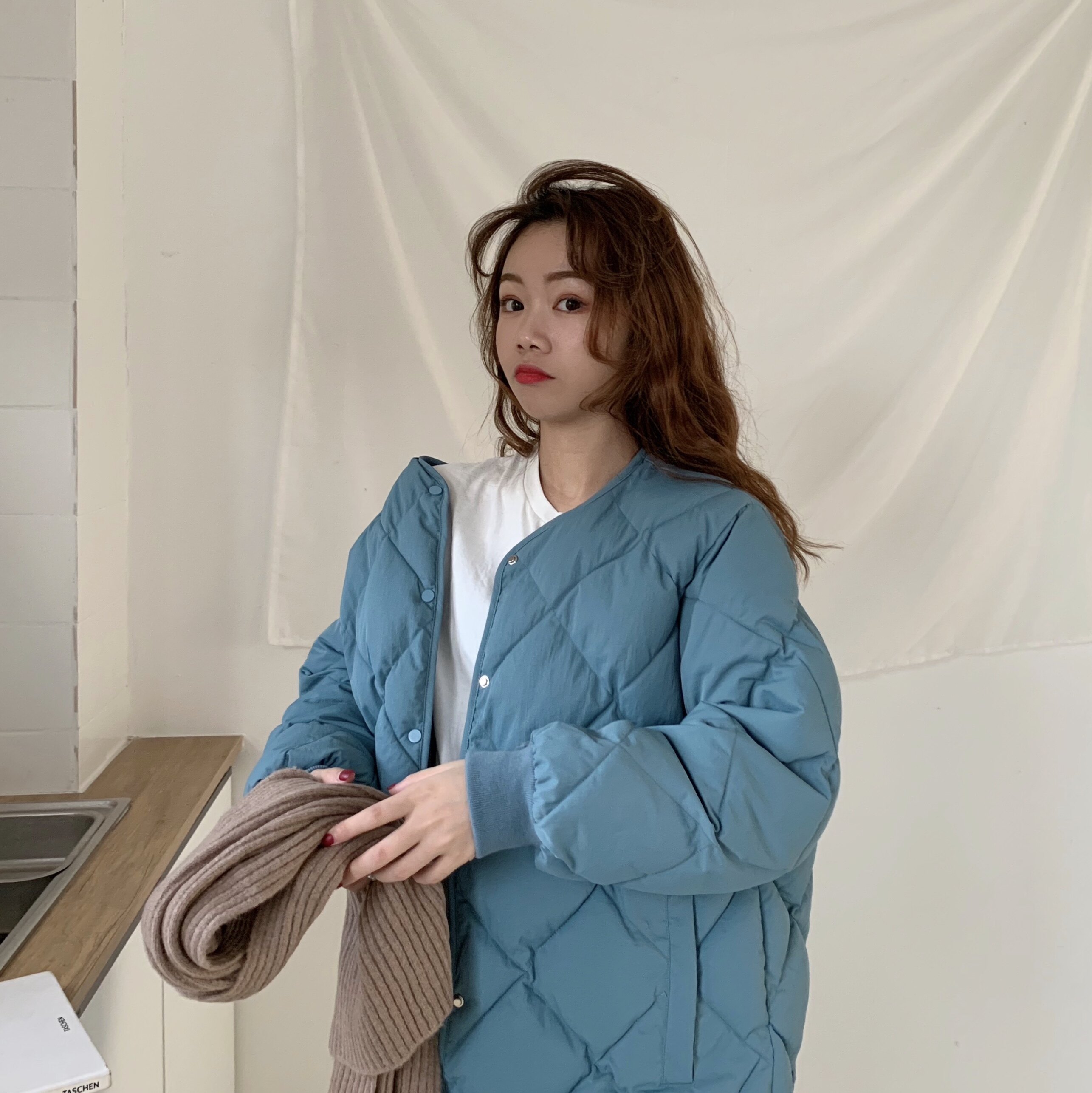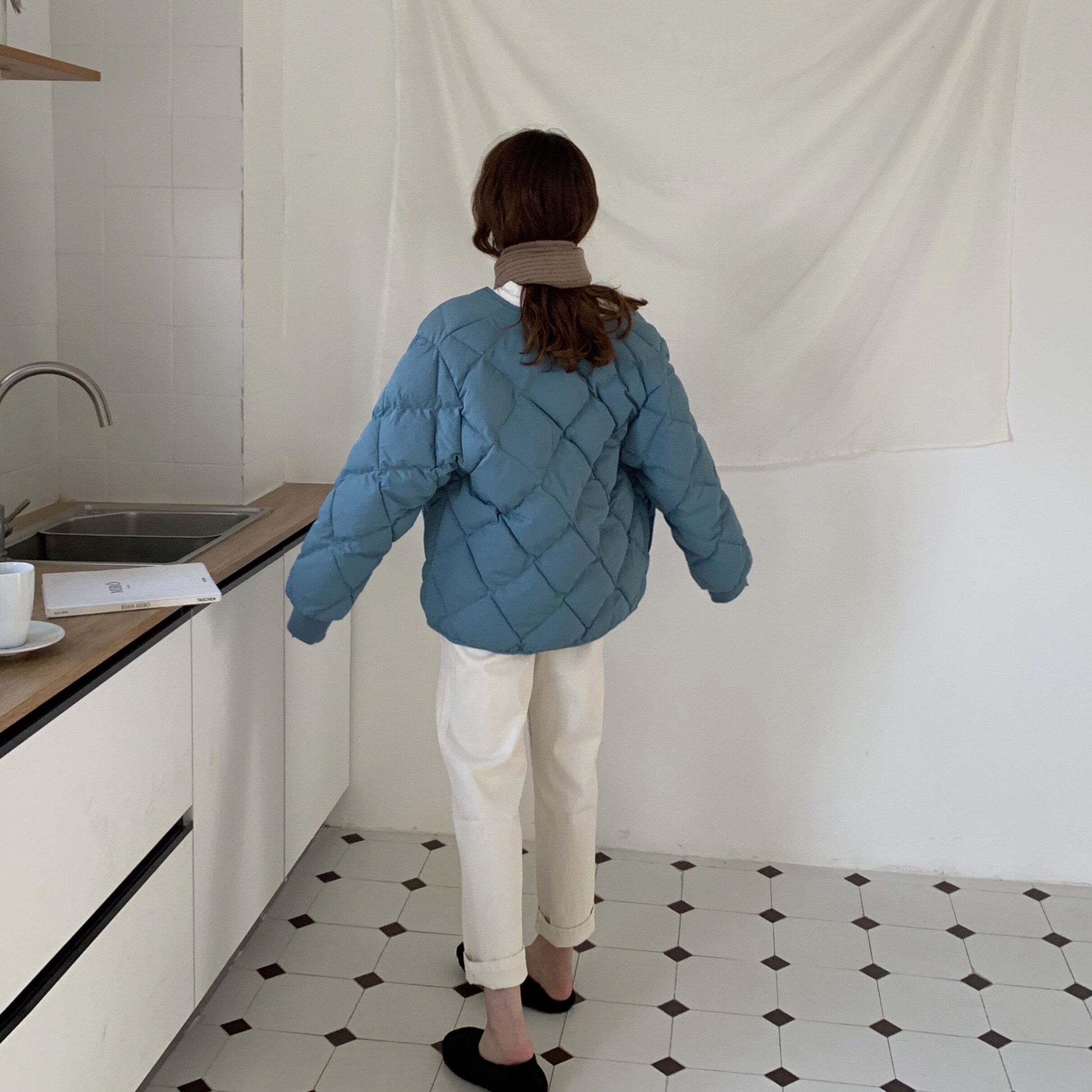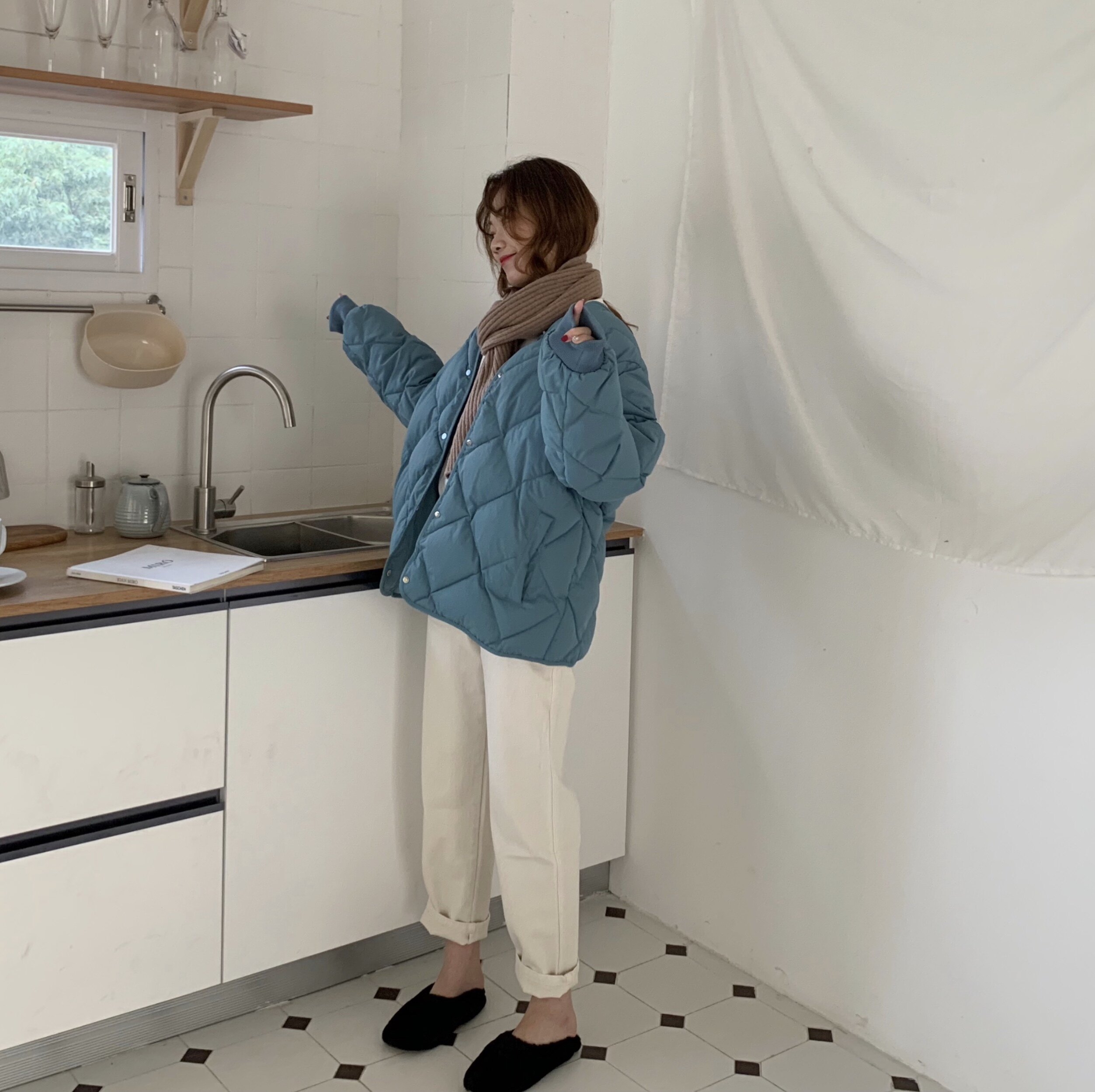 实拍 实价秋冬2018新款韩版百搭菱形ins面包服学生加厚棉袄外套女
