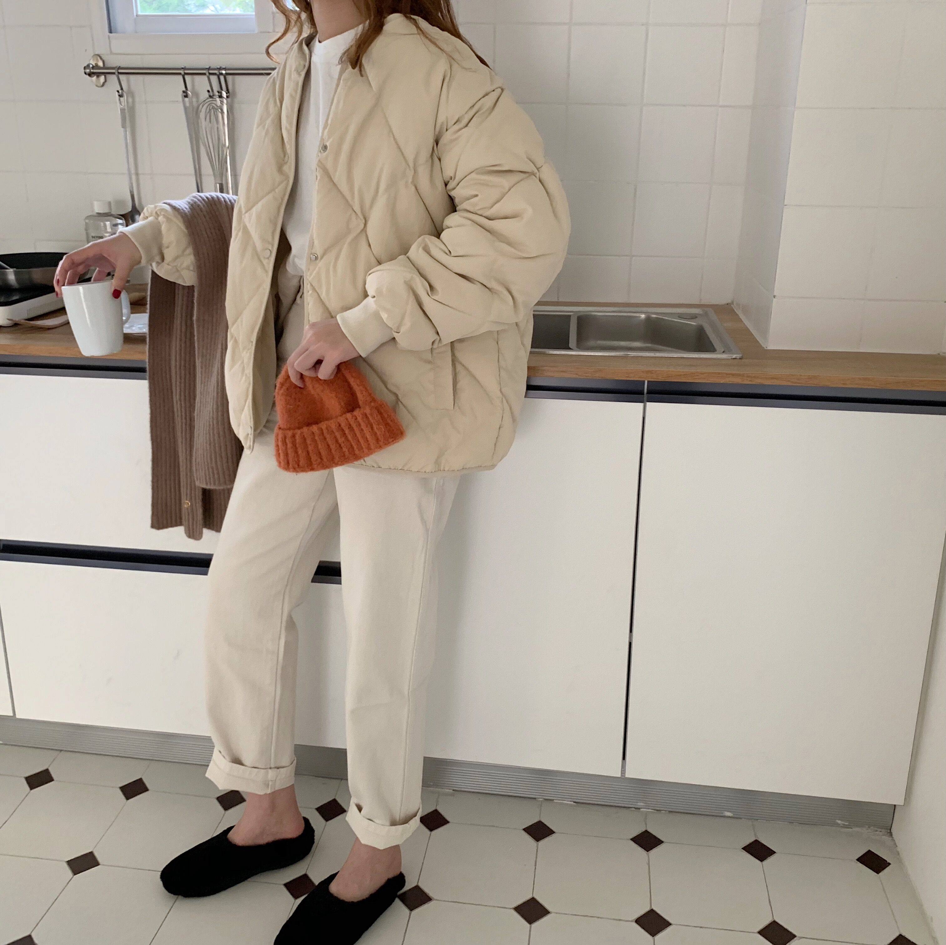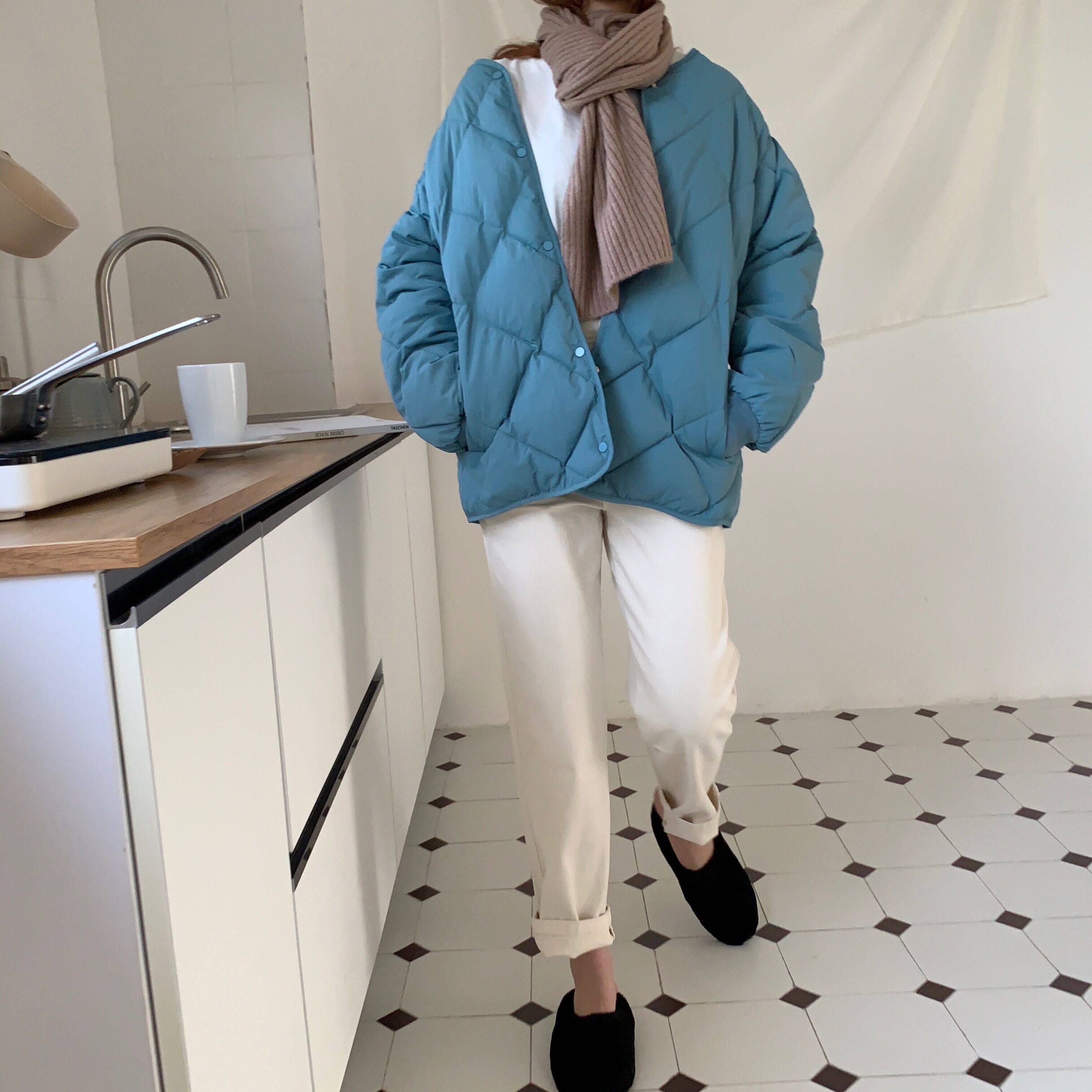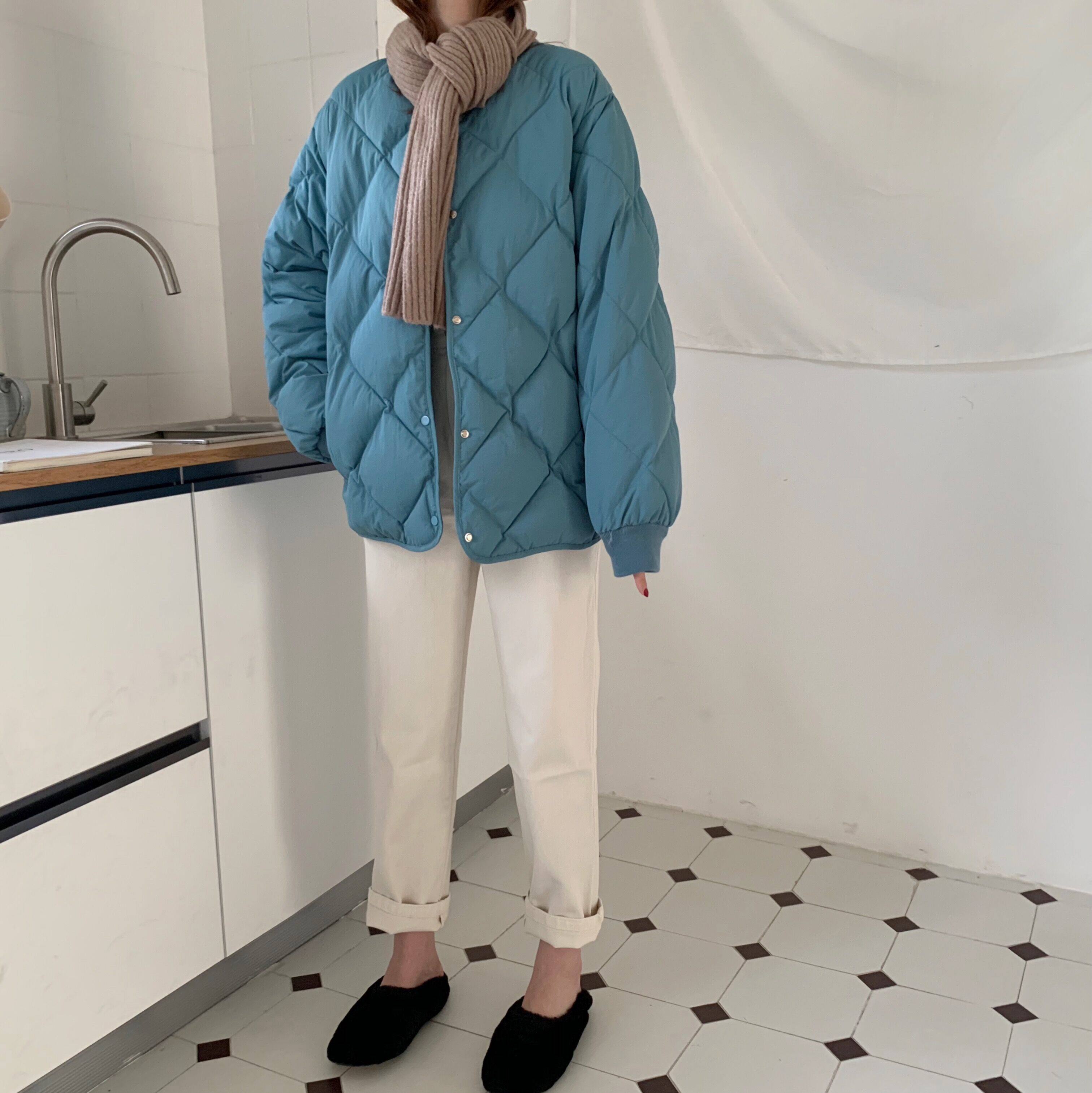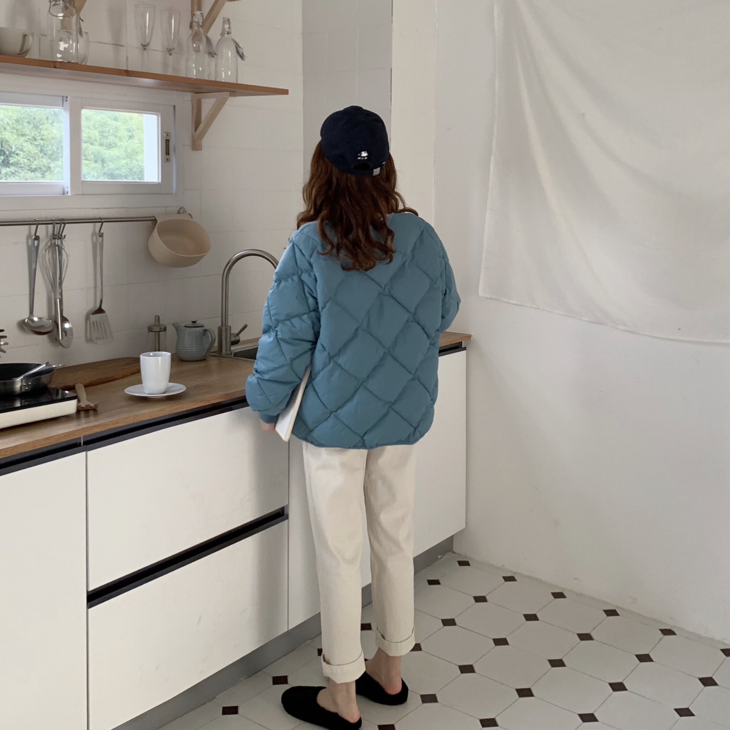 实拍 实价秋冬2018新款韩版百搭菱形ins面包服学生加厚棉袄外套女