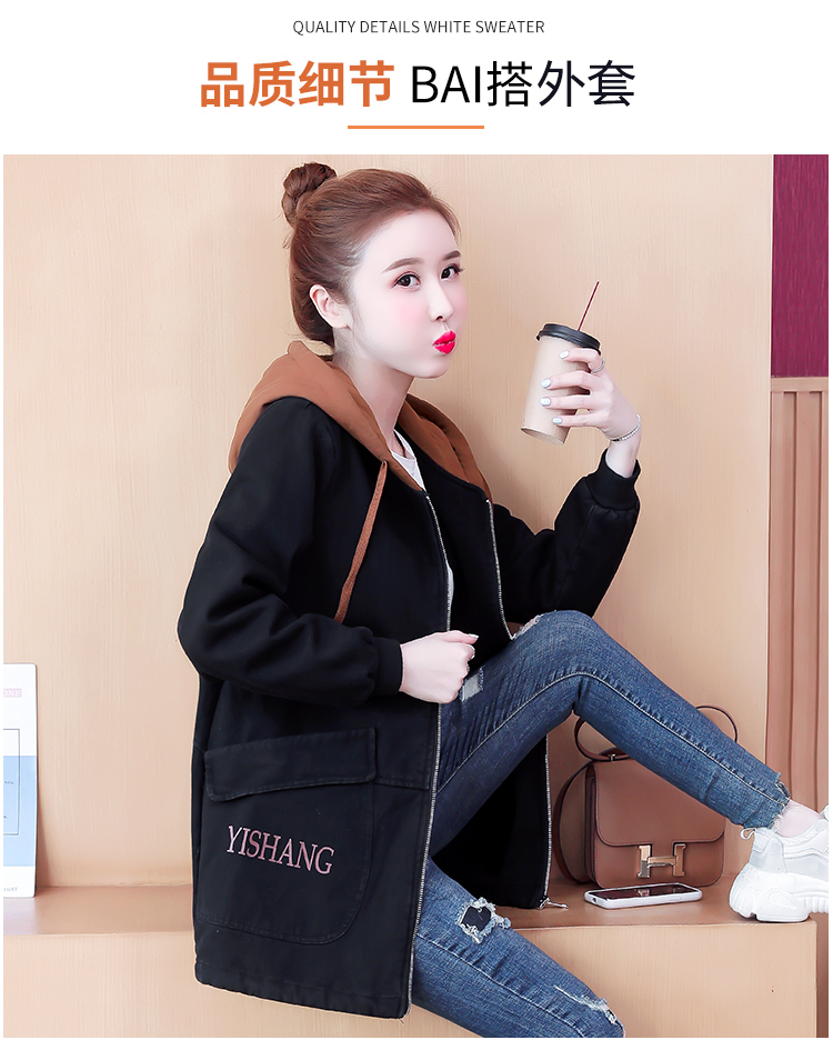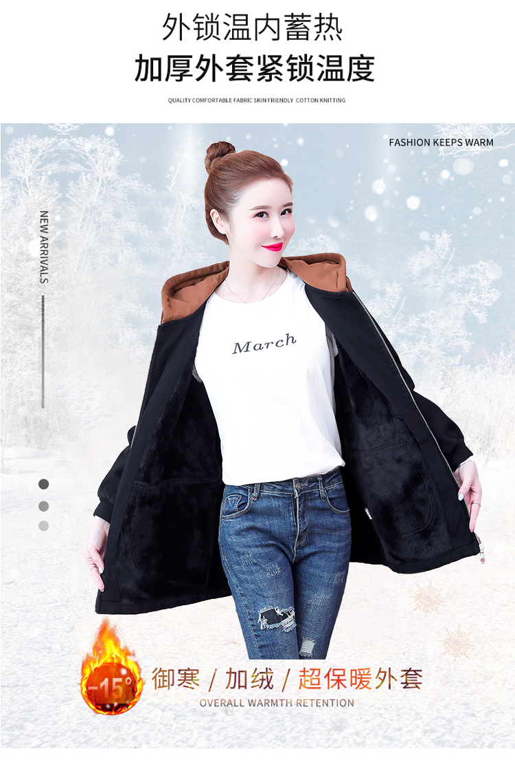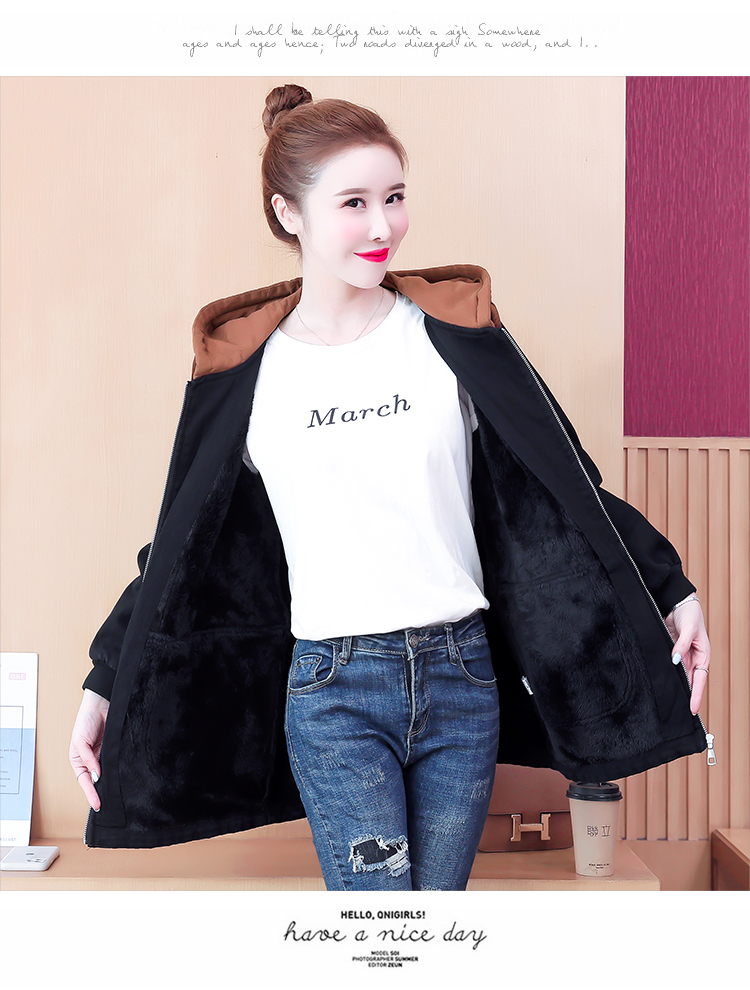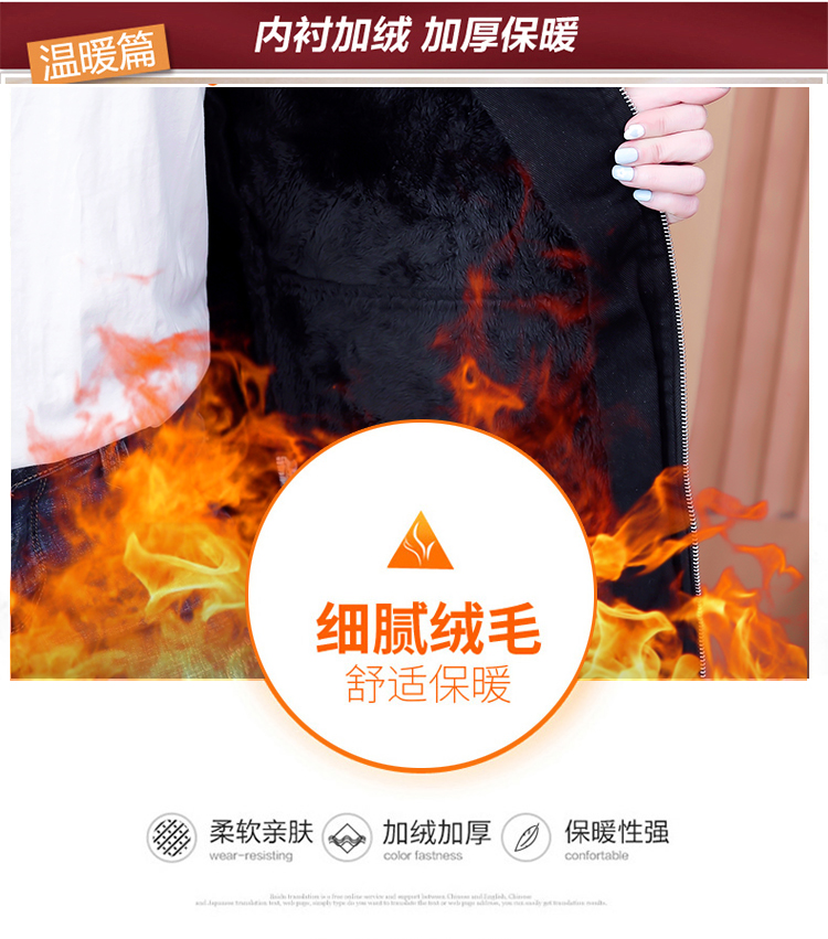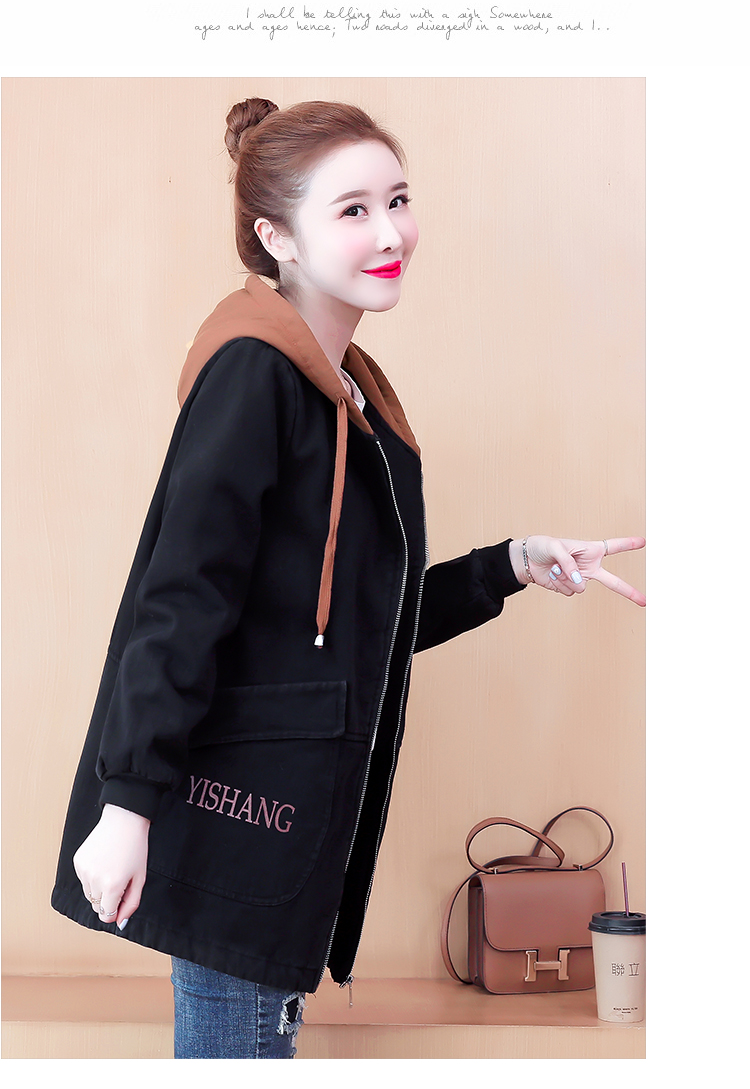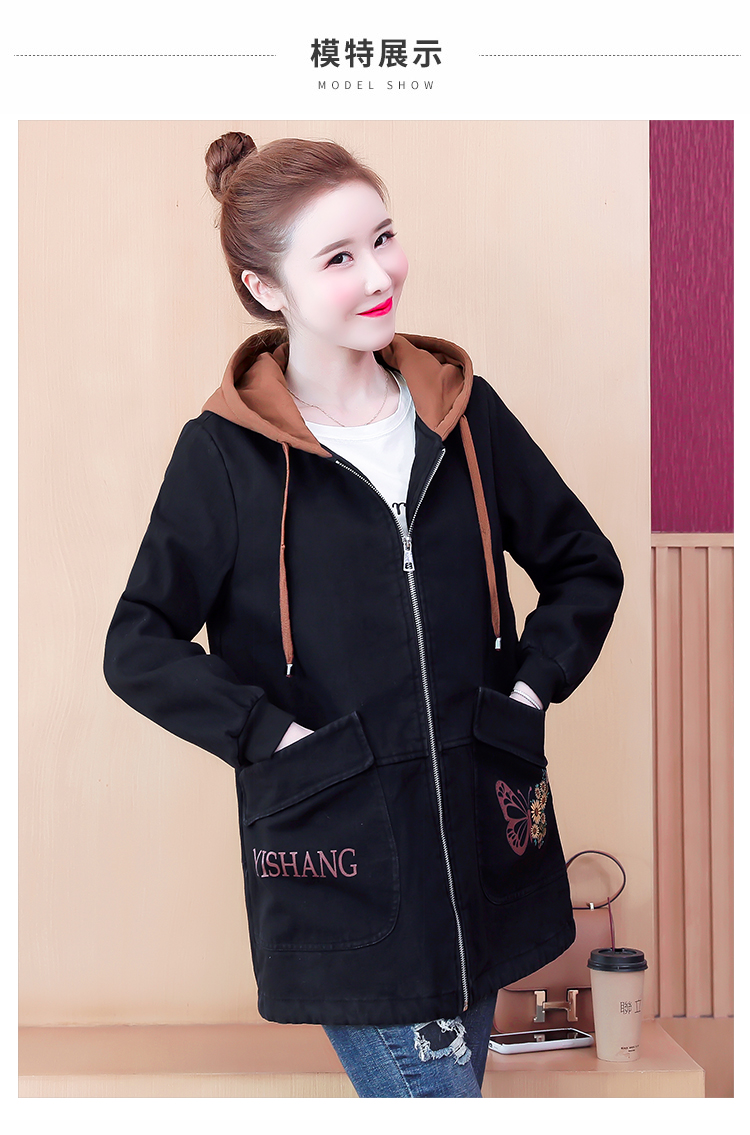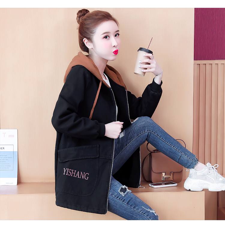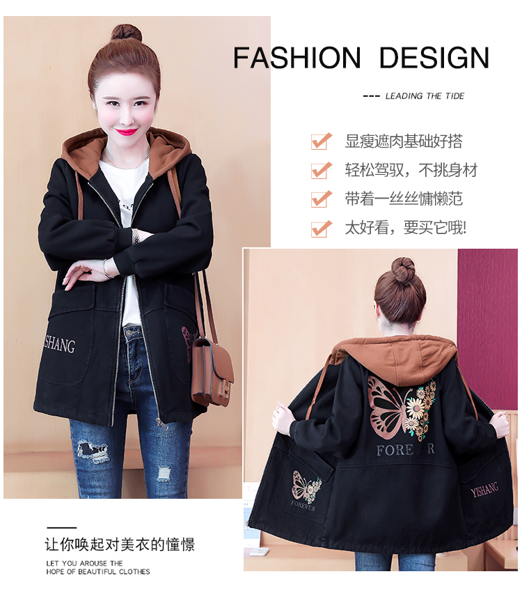牛仔外套中长款女韩版加绒加厚棉衣连帽冬季2020黑色棉服印花潮版