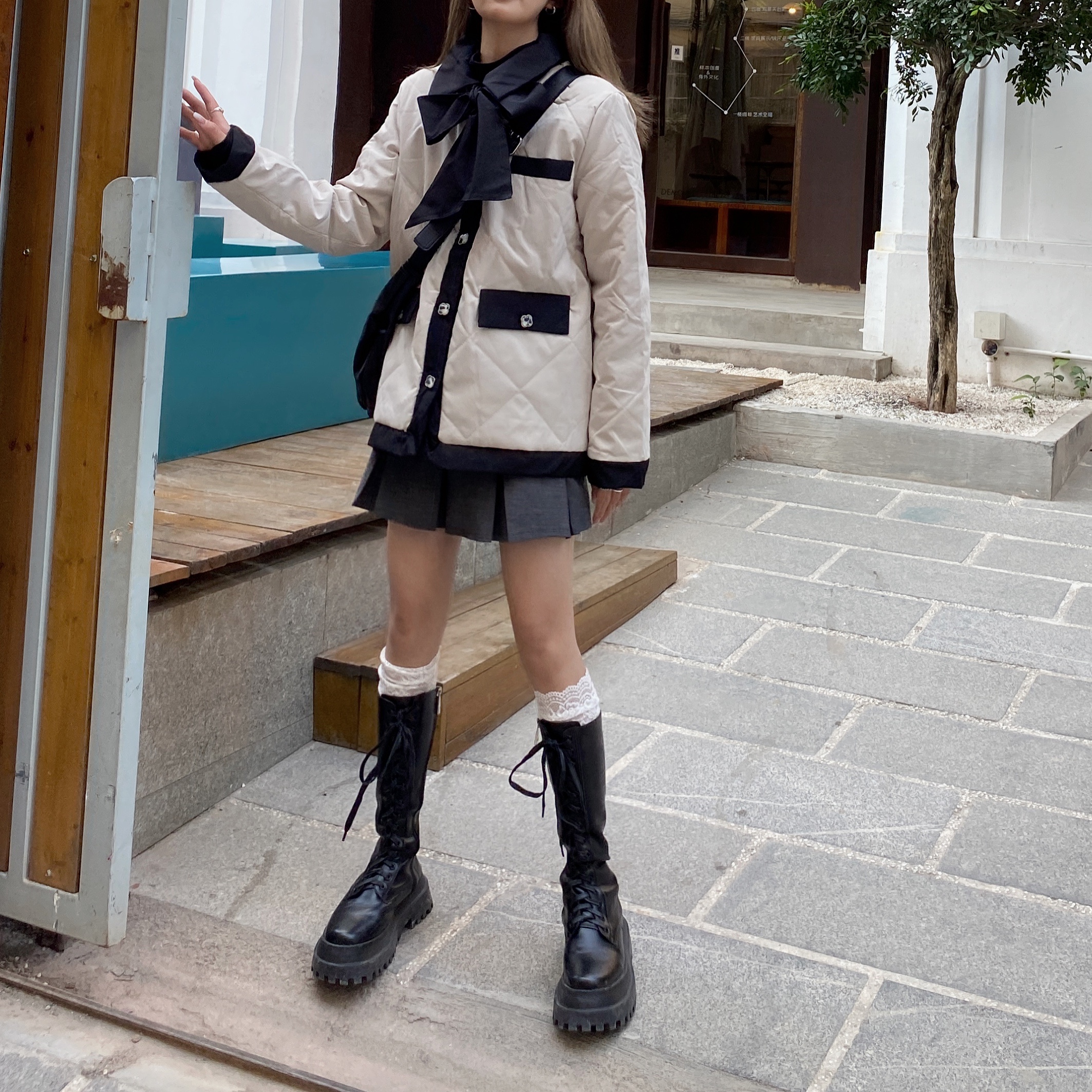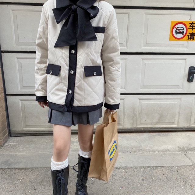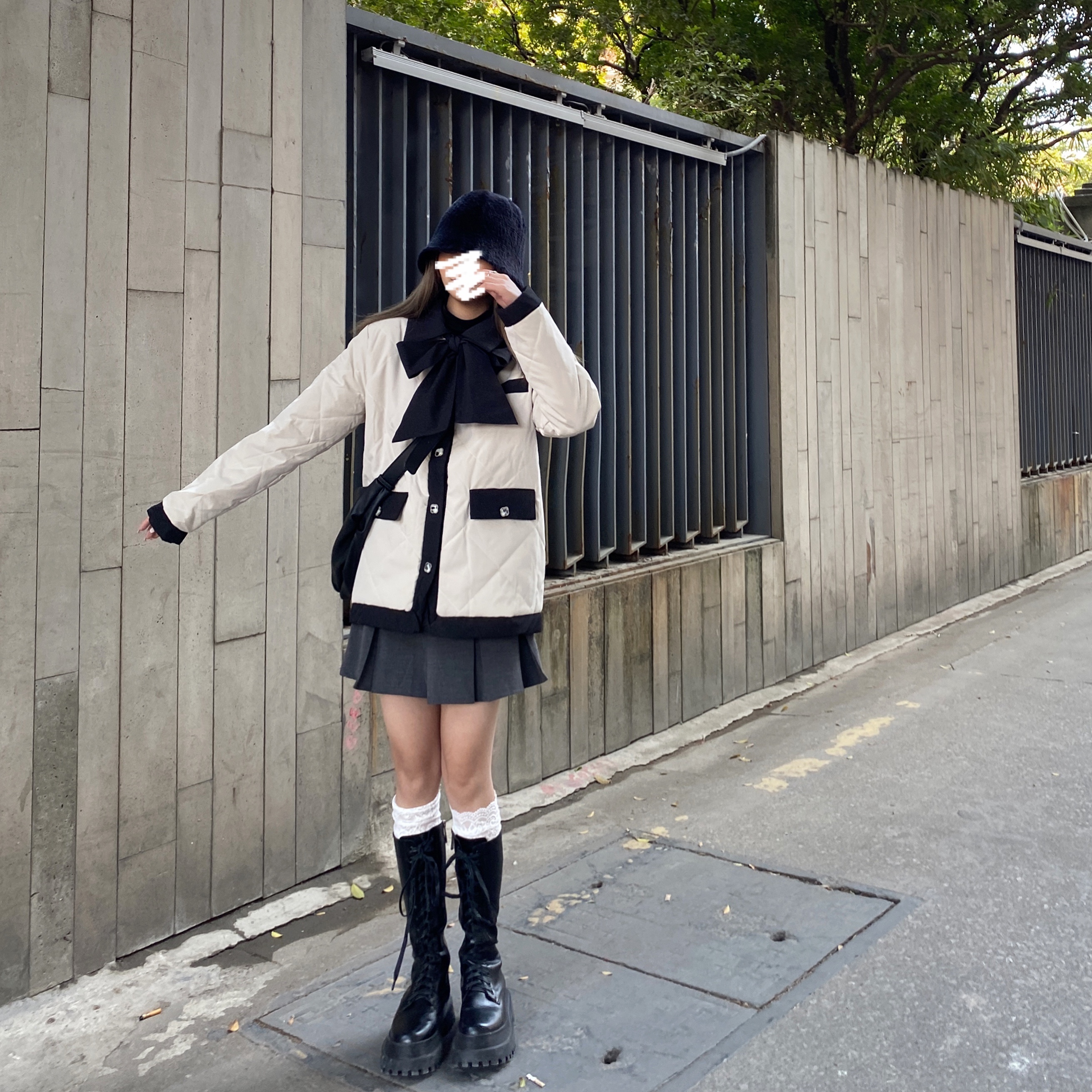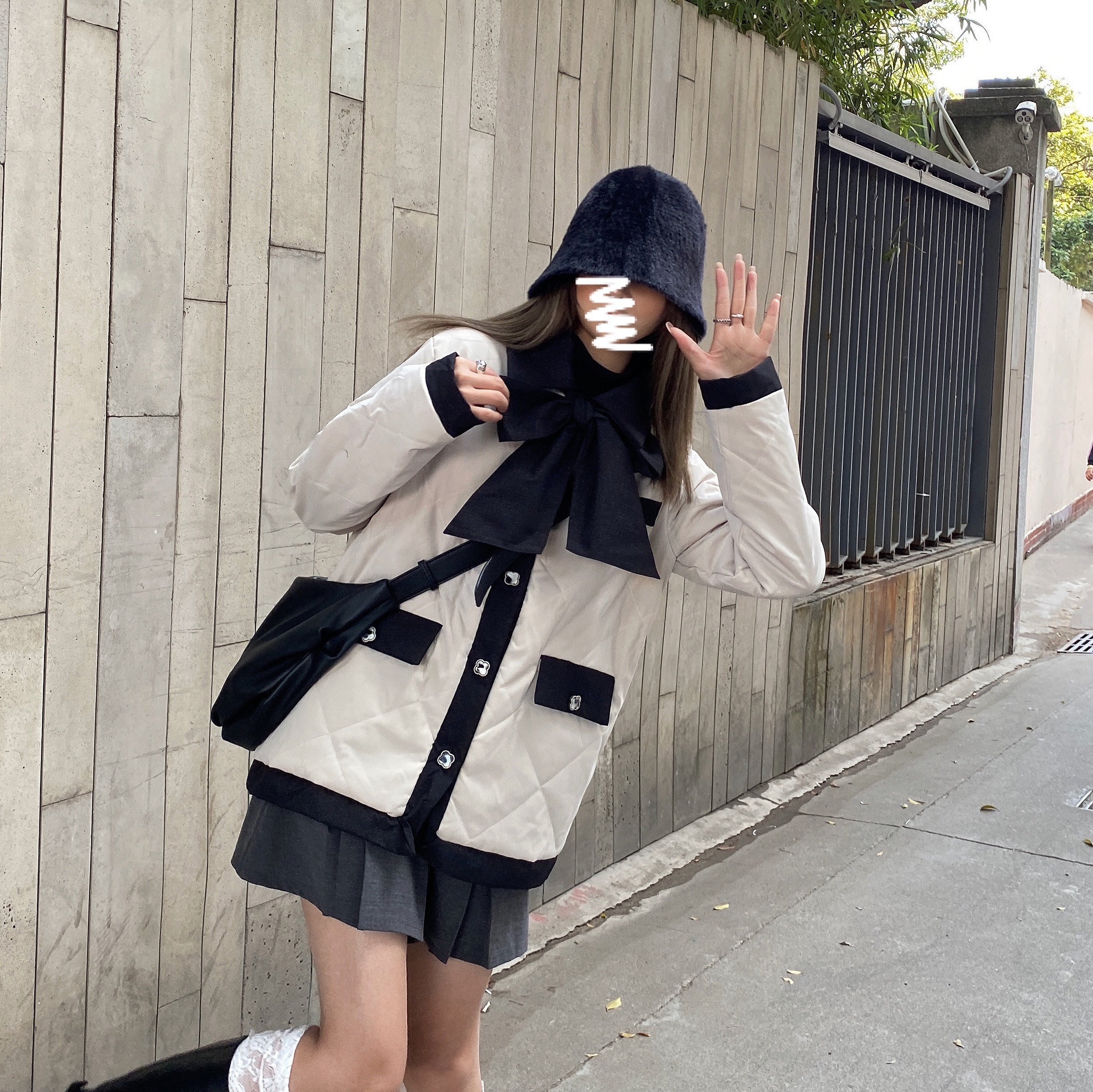 实拍实价 校服绝配韩系酷甜少女大闪钻大蝴蝶结面包棉服外套