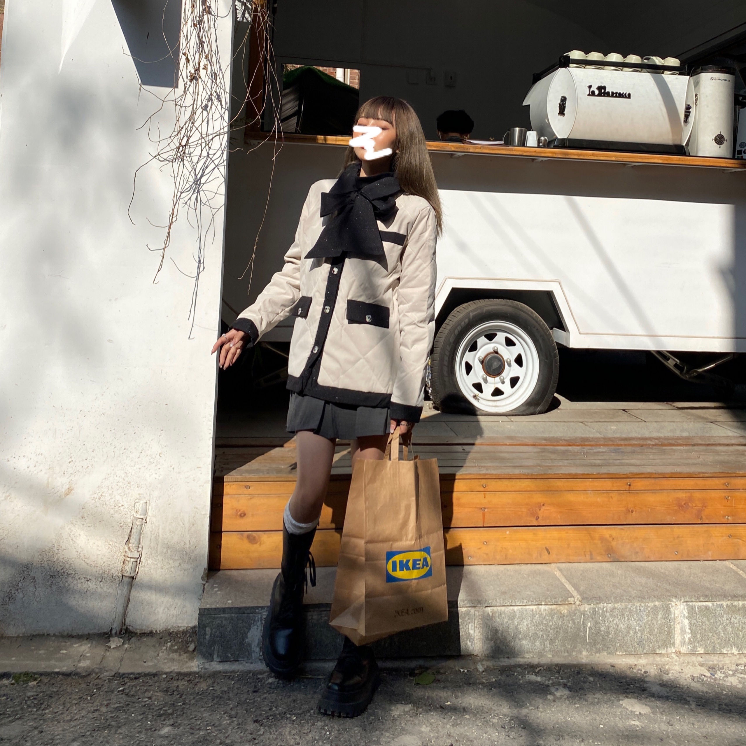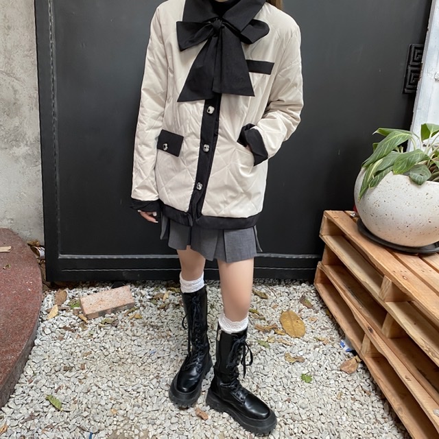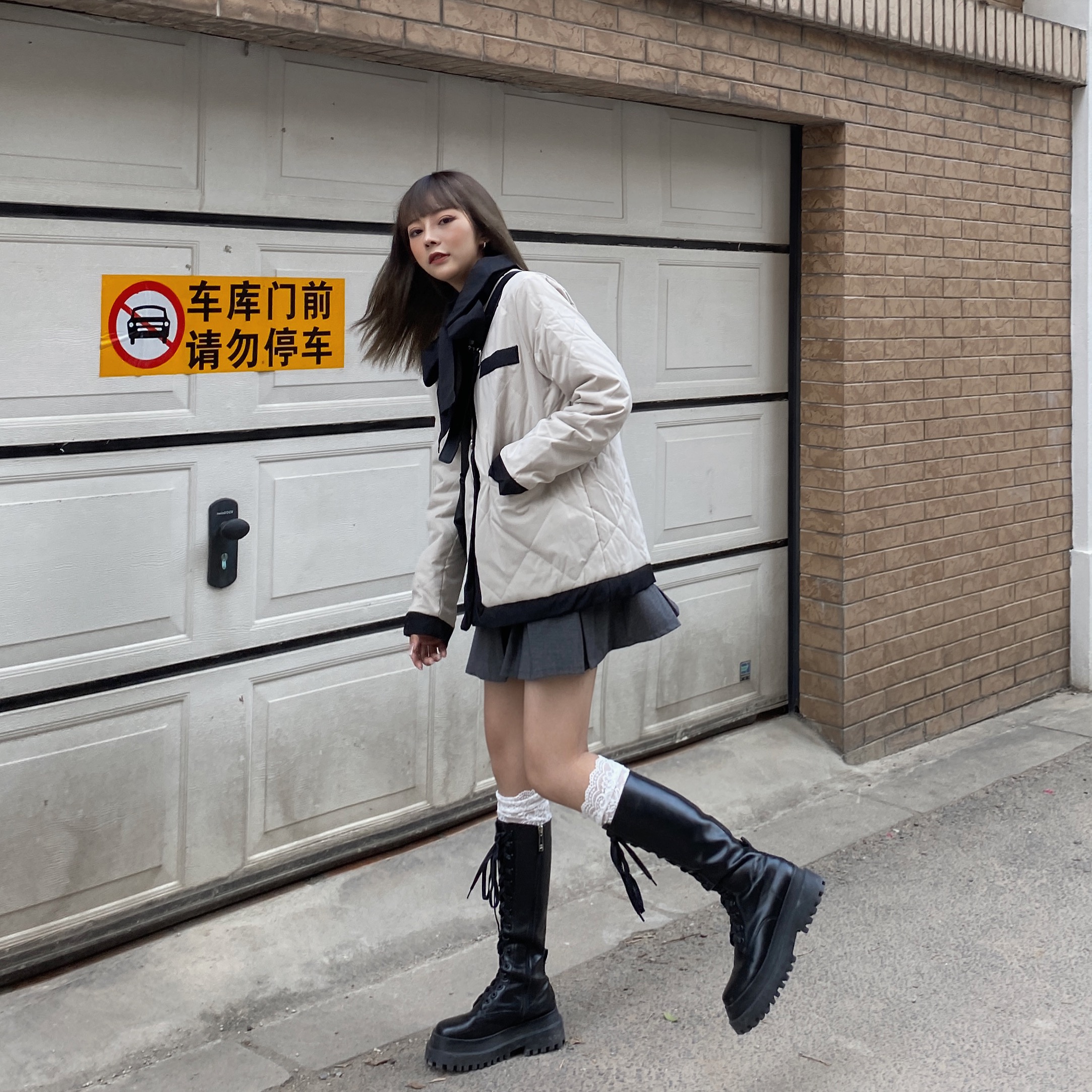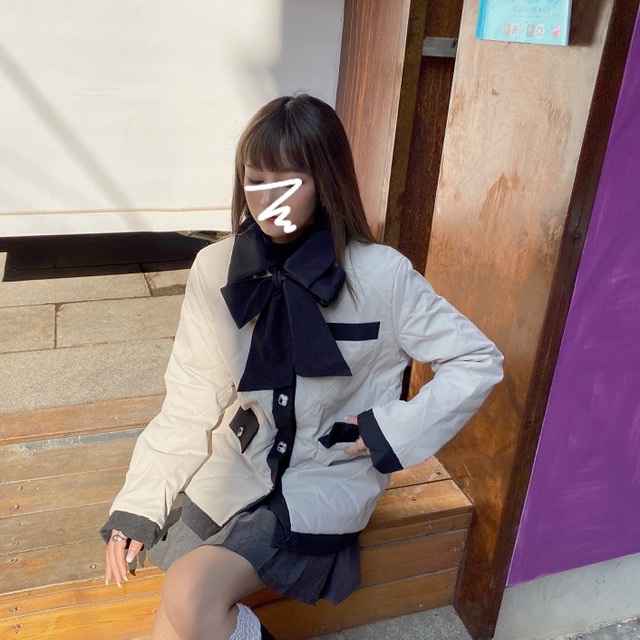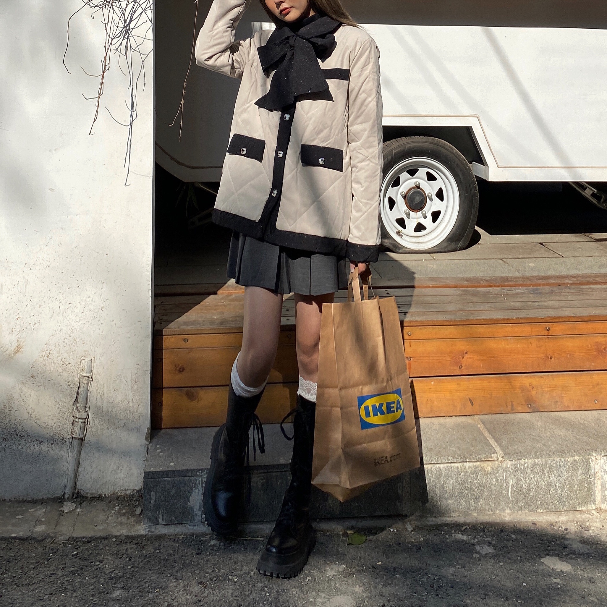 实拍实价 校服绝配韩系酷甜少女大闪钻大蝴蝶结面包棉服外套