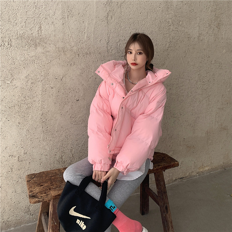 实拍实价~韩版宽松棉衣女韩国港风Ins加厚面包棉服短款外套潮