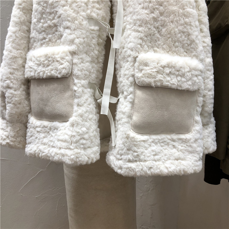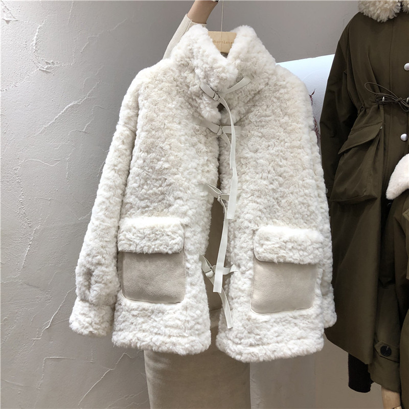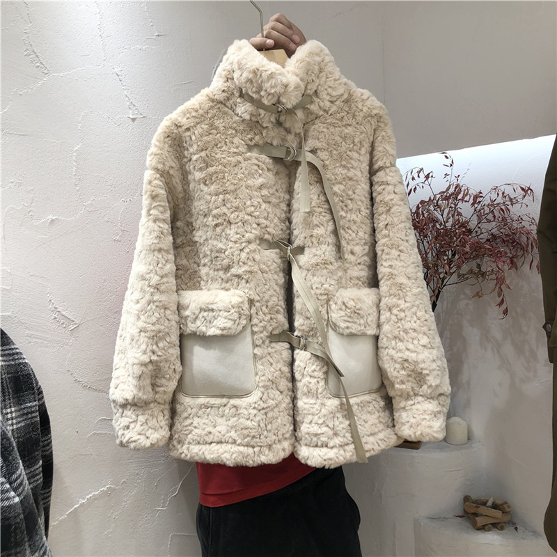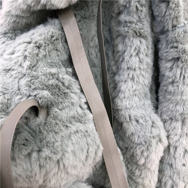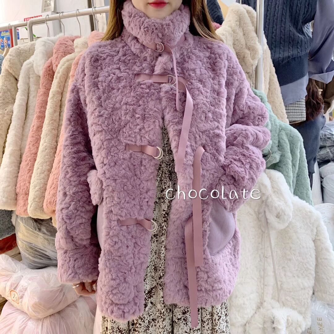 兔绒皮草仿真皮毛一体外套秋冬韩版毛茸茸小清新丝带扣加厚大衣女