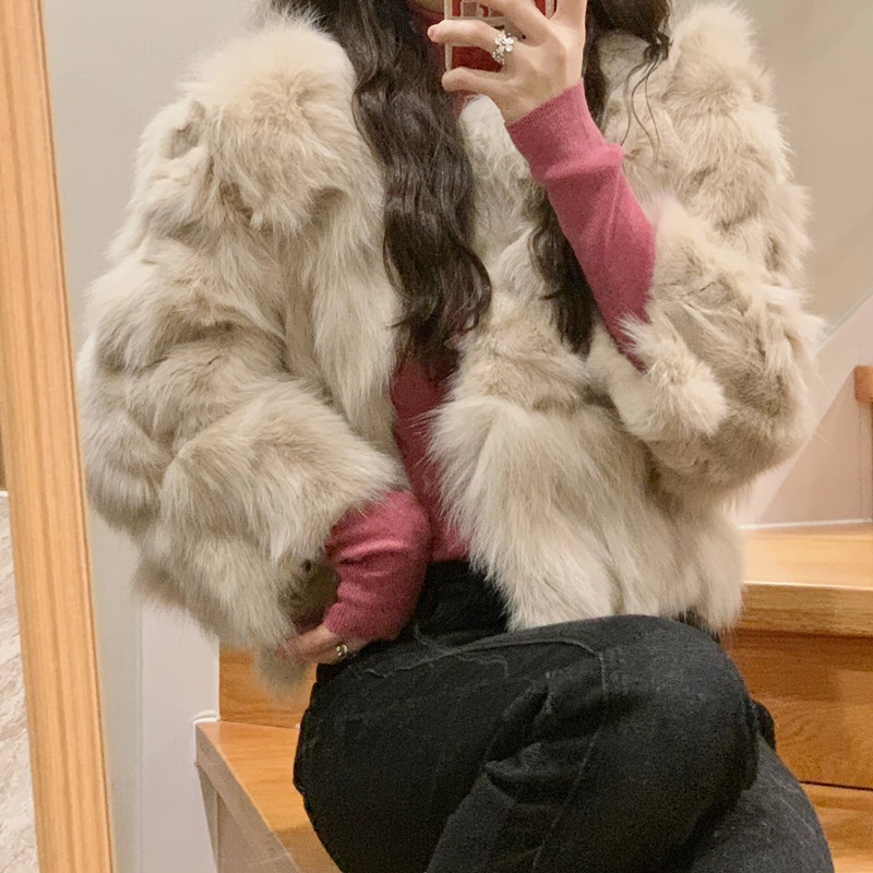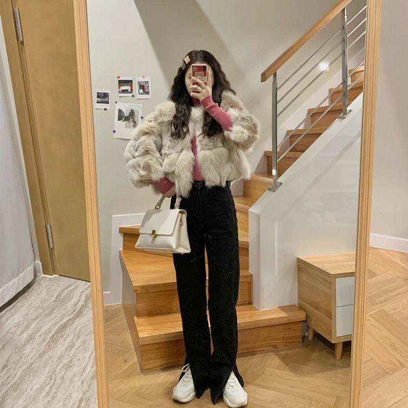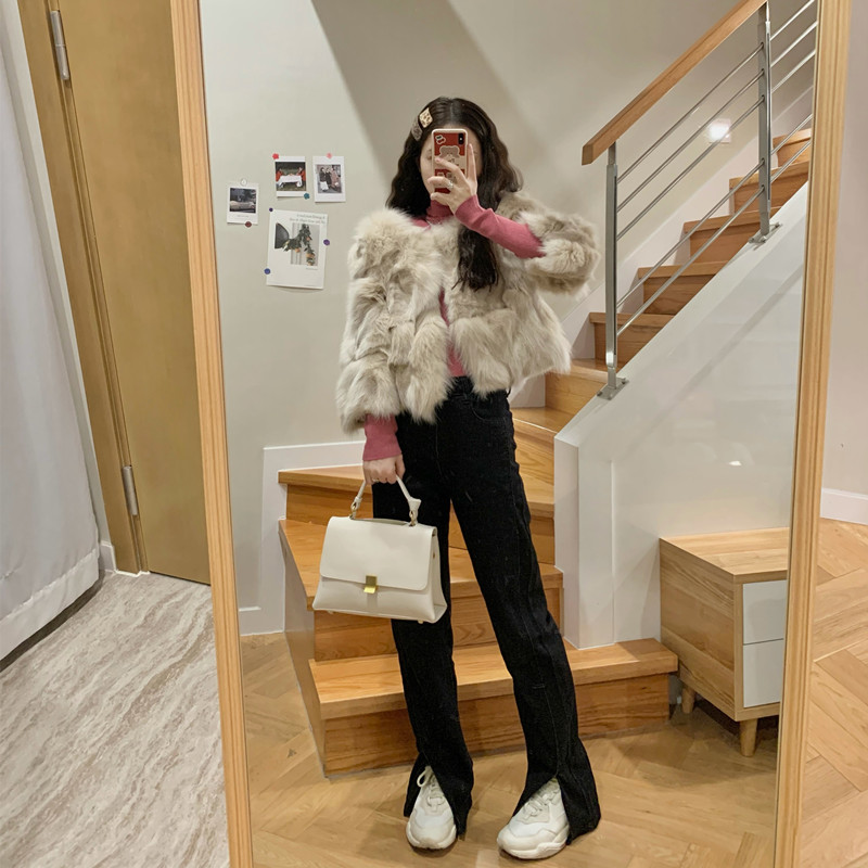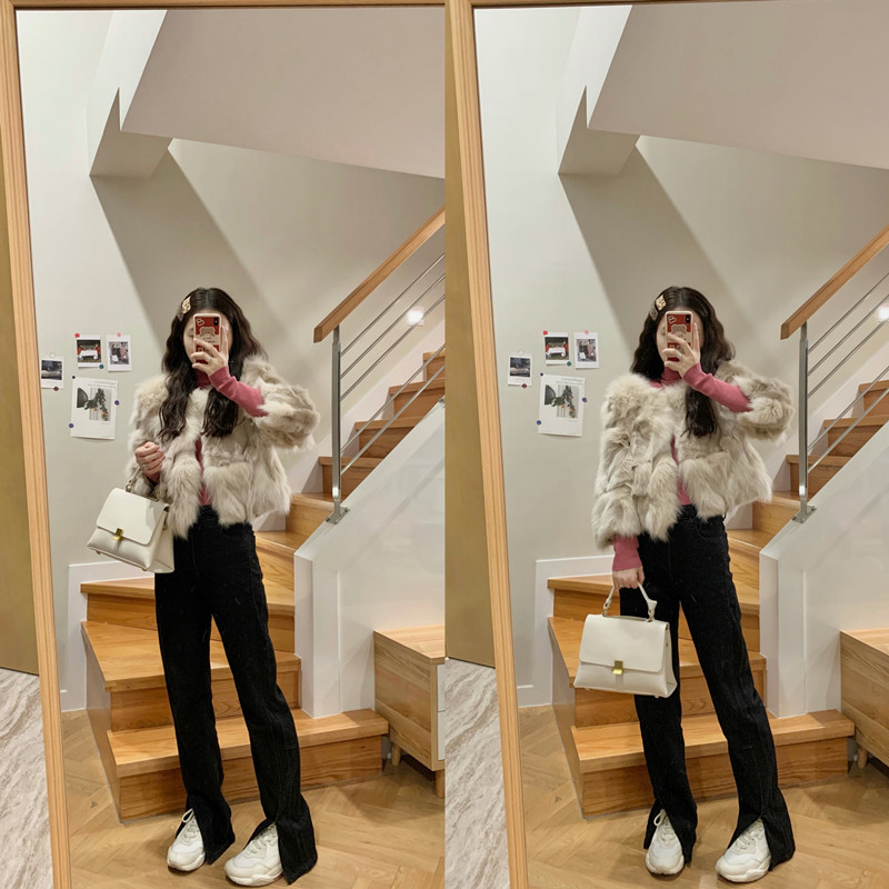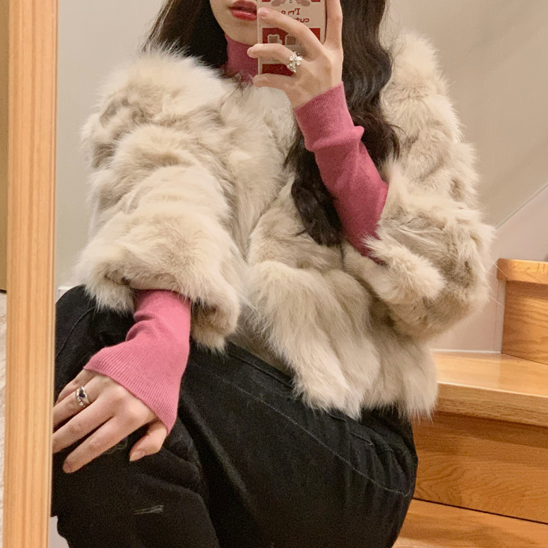实拍实价新款冬狐狸毛仿皮草网红时尚毛绒外套+百搭高领打底内搭