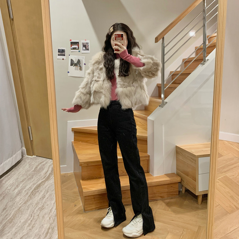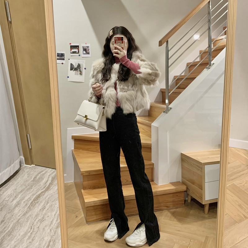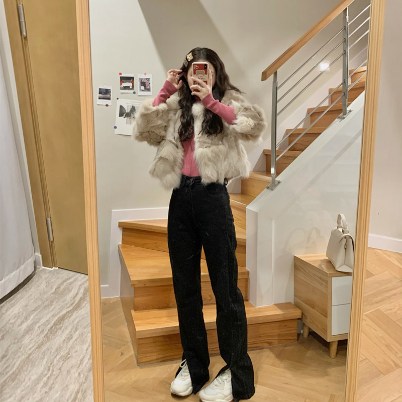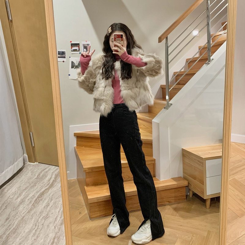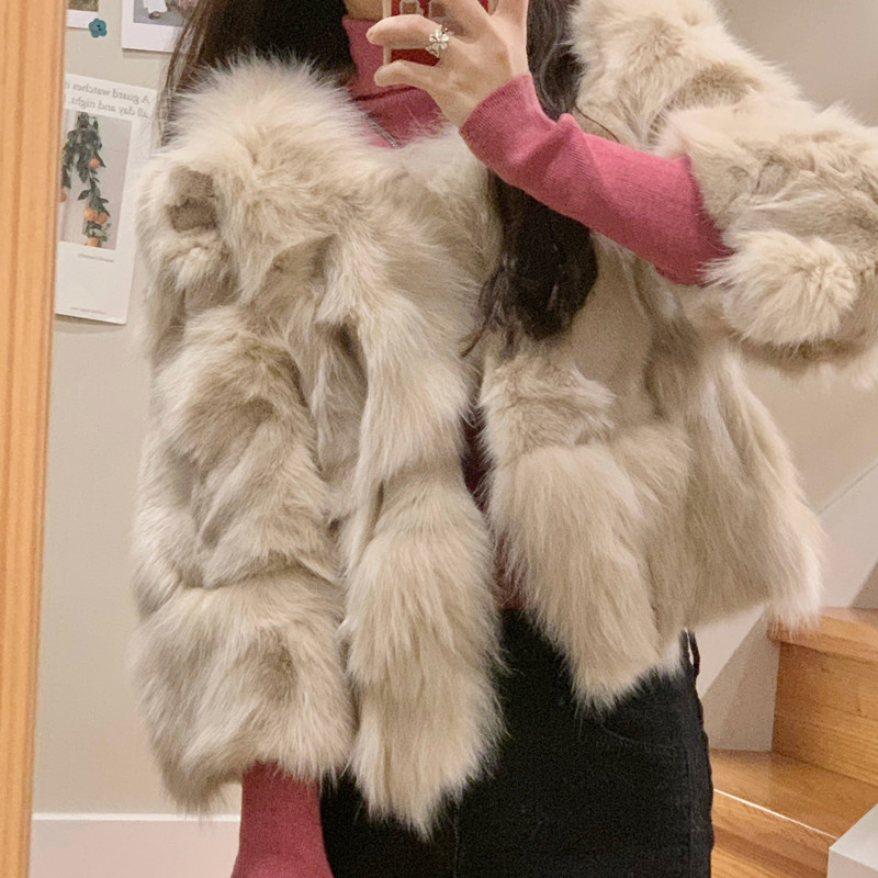 实拍实价新款冬狐狸毛仿皮草网红时尚毛绒外套+百搭高领打底内搭