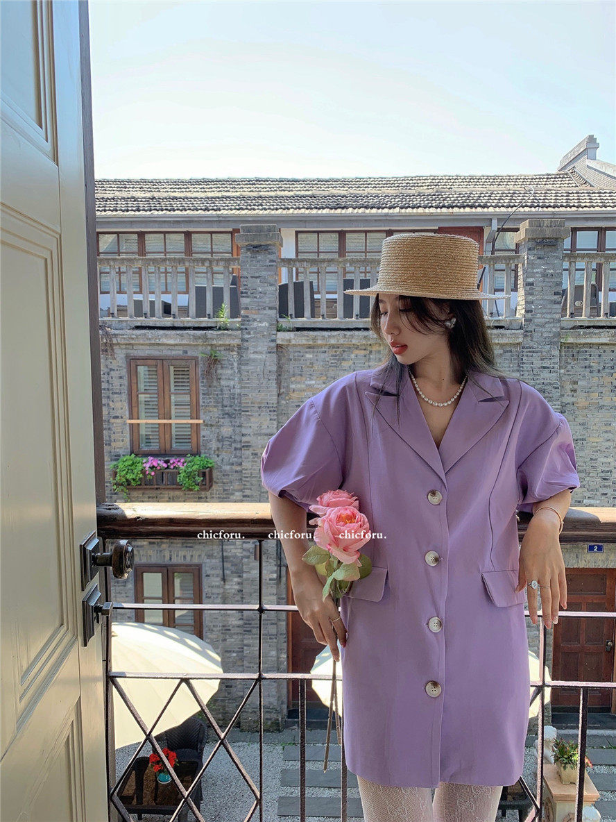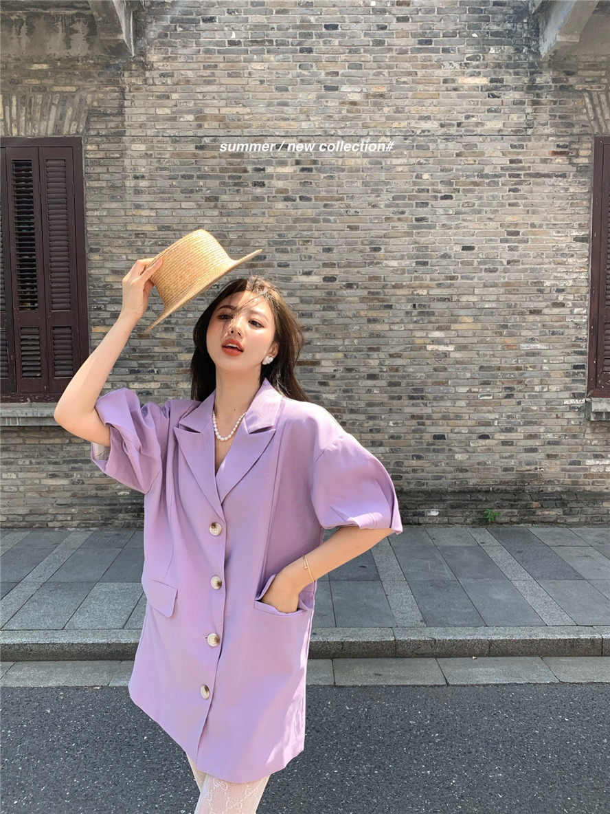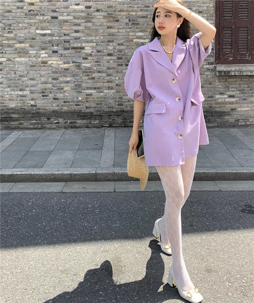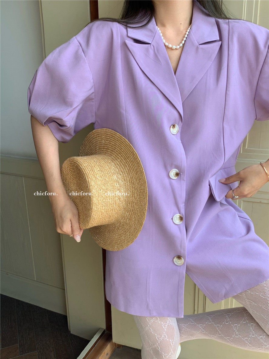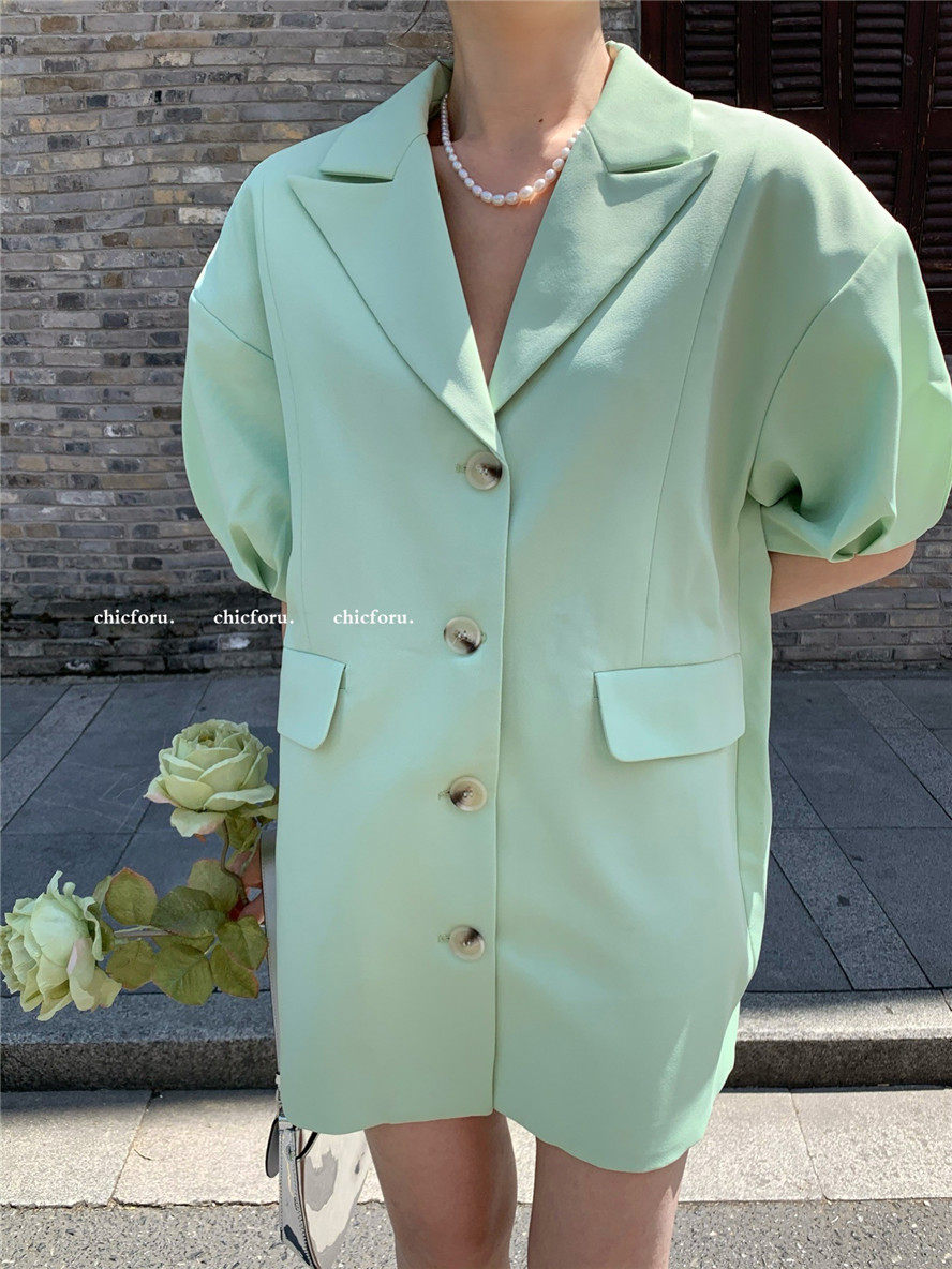 实拍 复古宫廷泡泡袖新款宽松西服外套