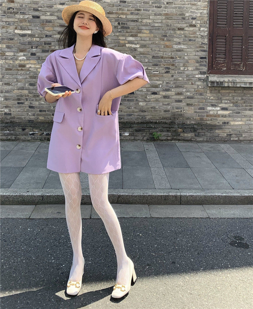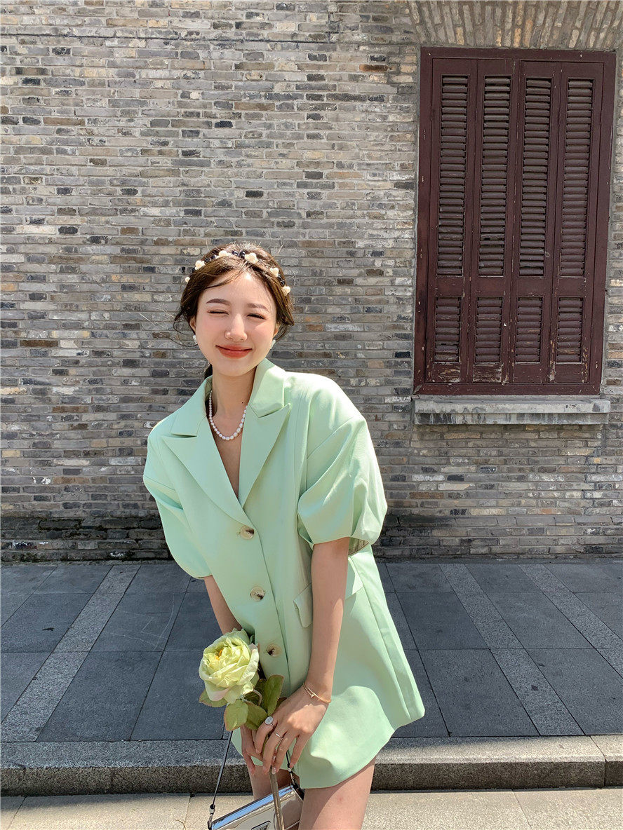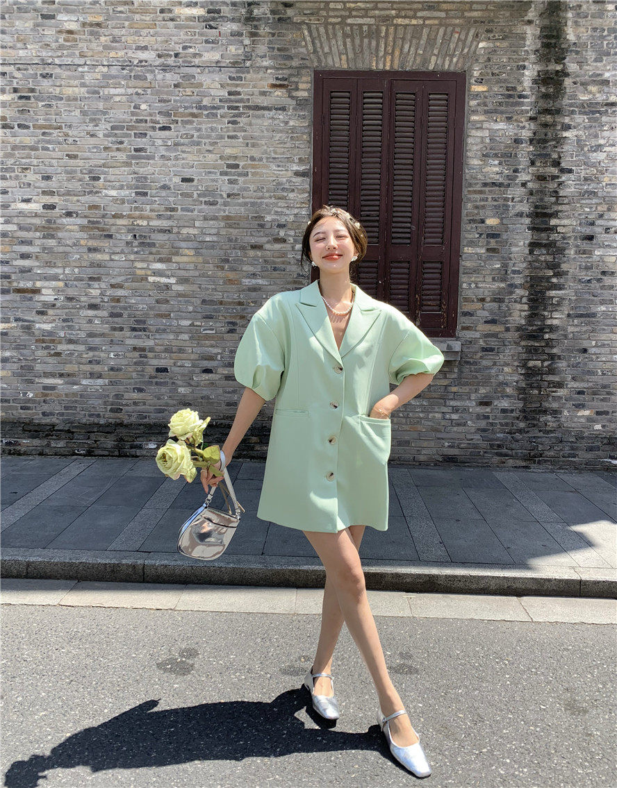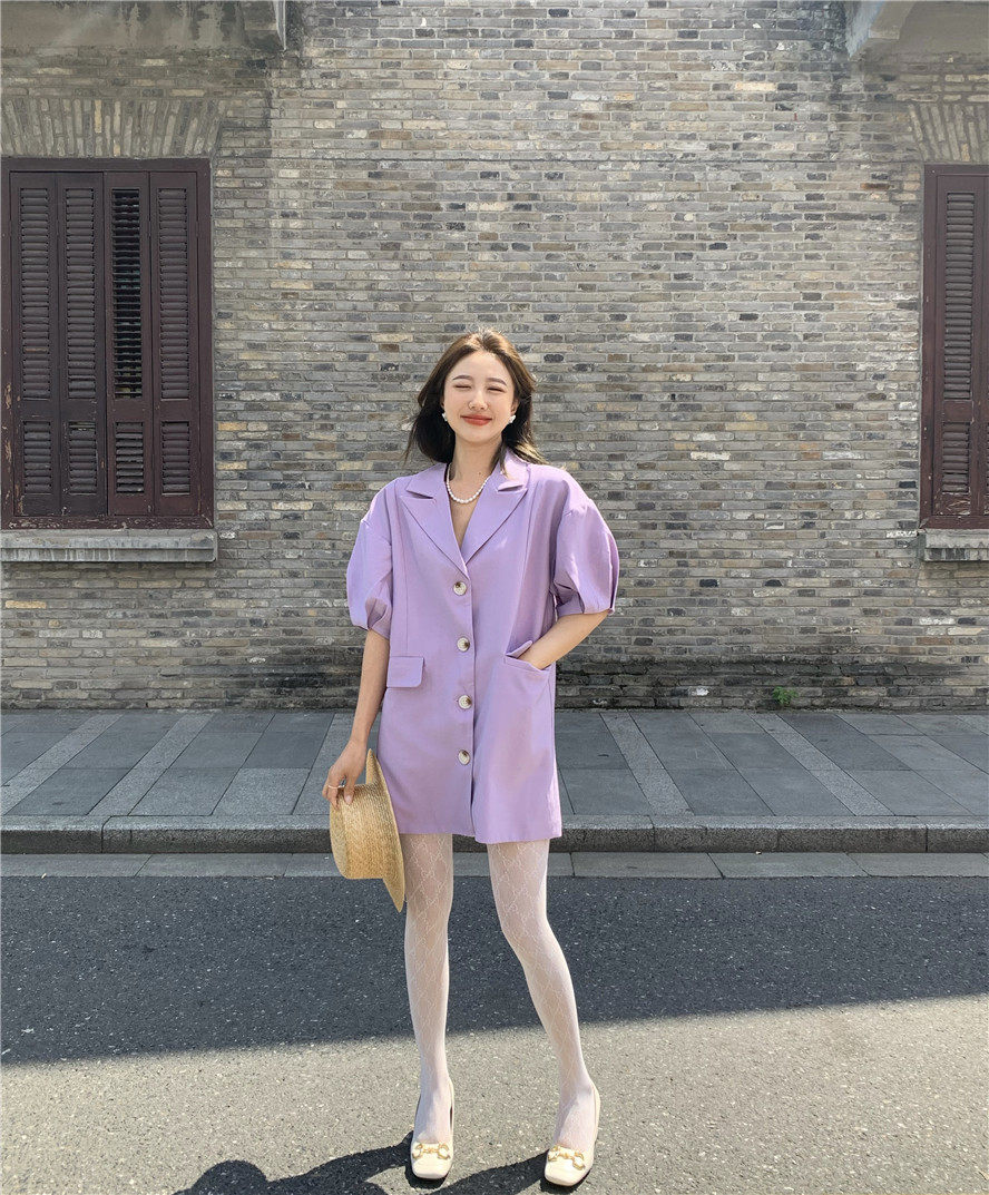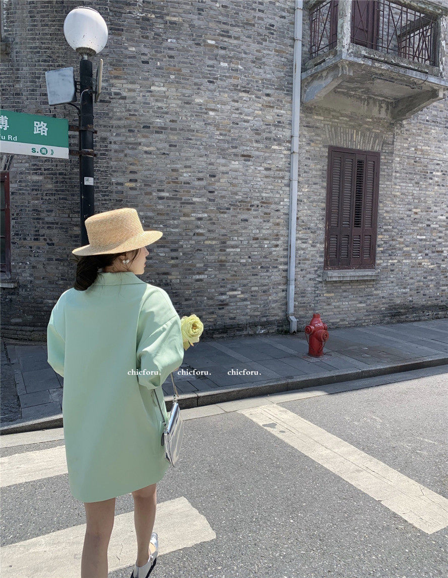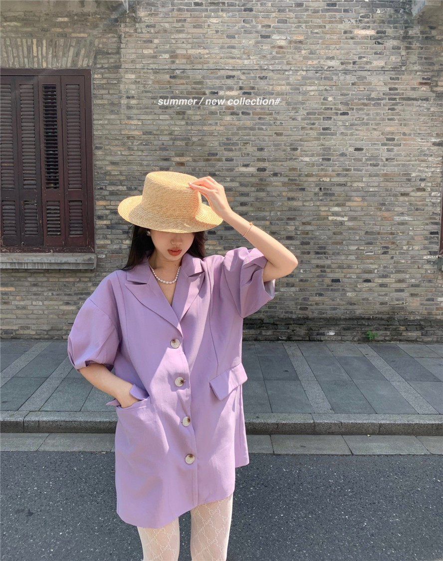 实拍 复古宫廷泡泡袖新款宽松西服外套