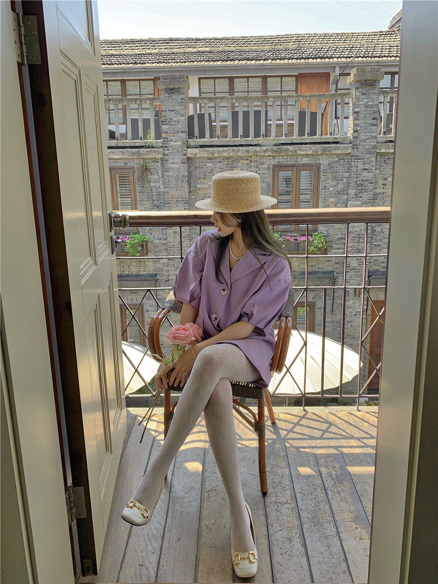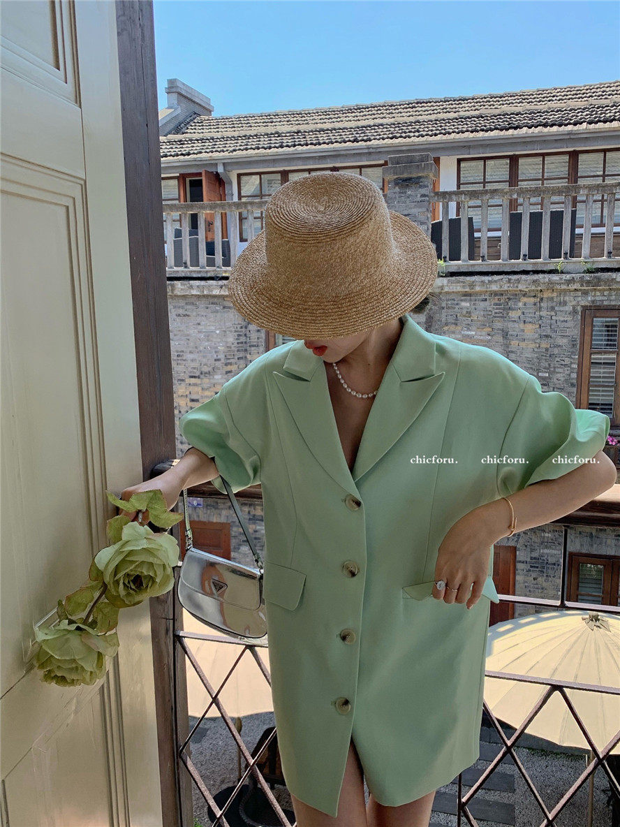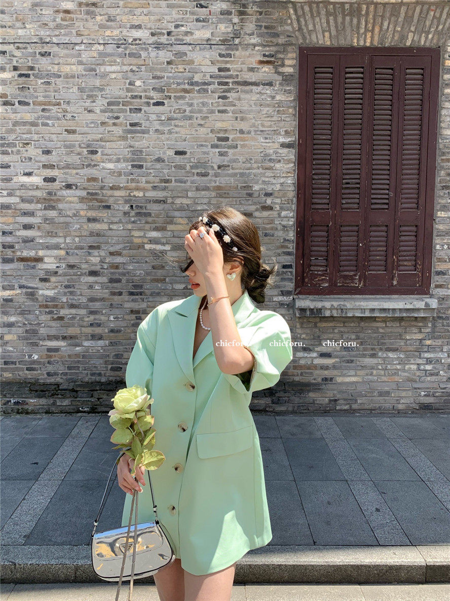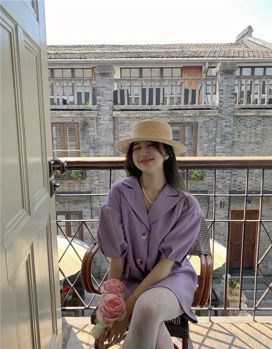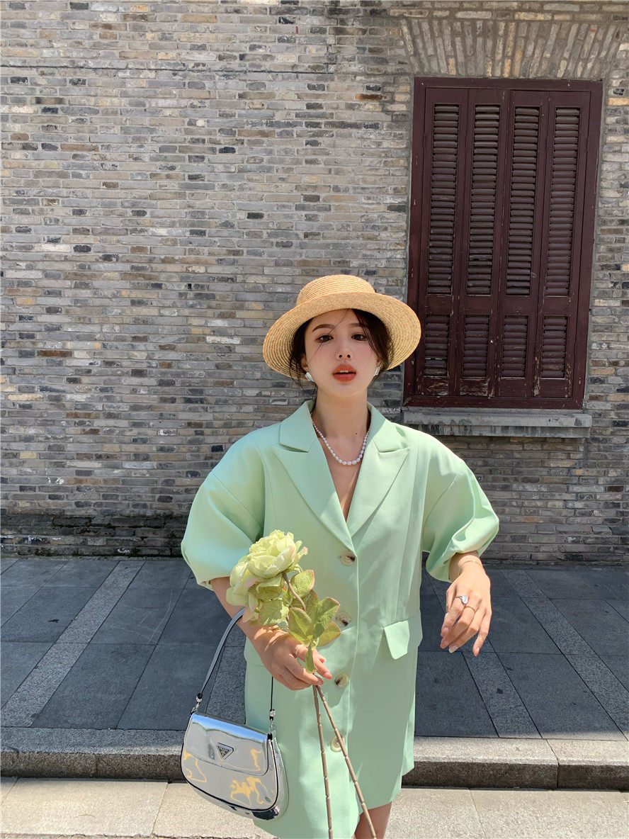 实拍 复古宫廷泡泡袖新款宽松西服外套