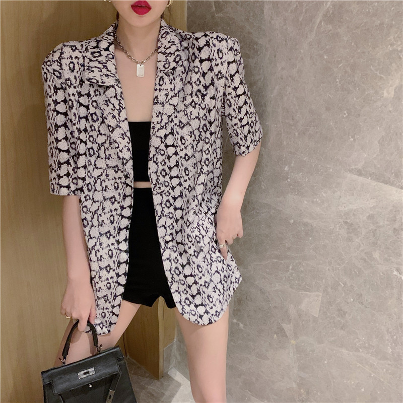实拍实价 垂感翻领蛇纹时尚薄款小西装