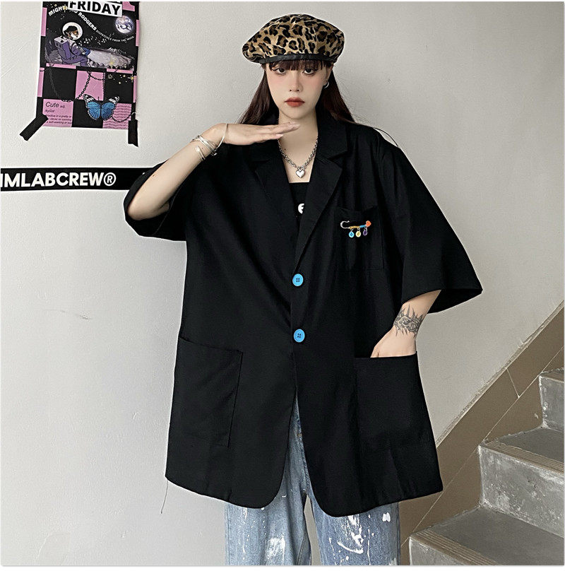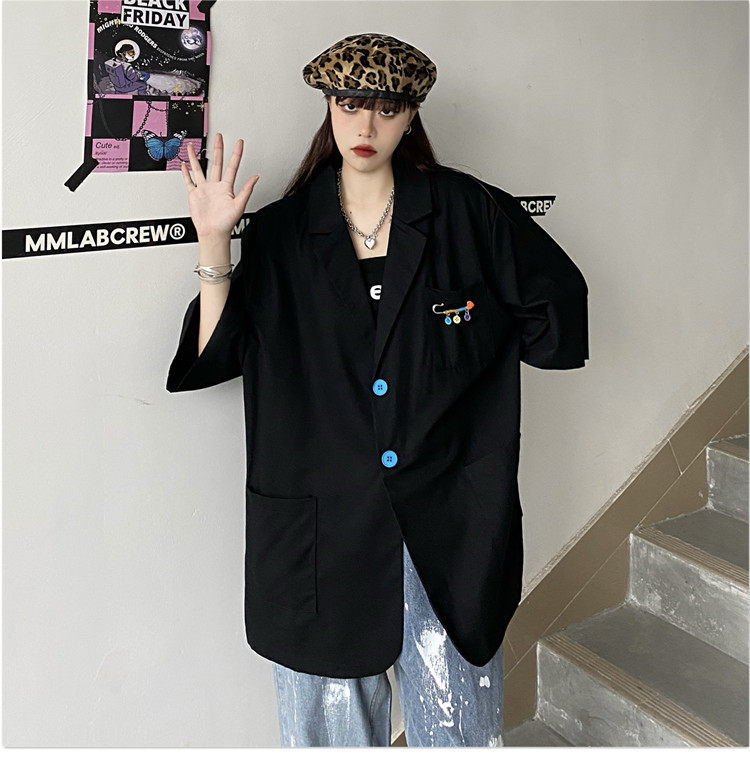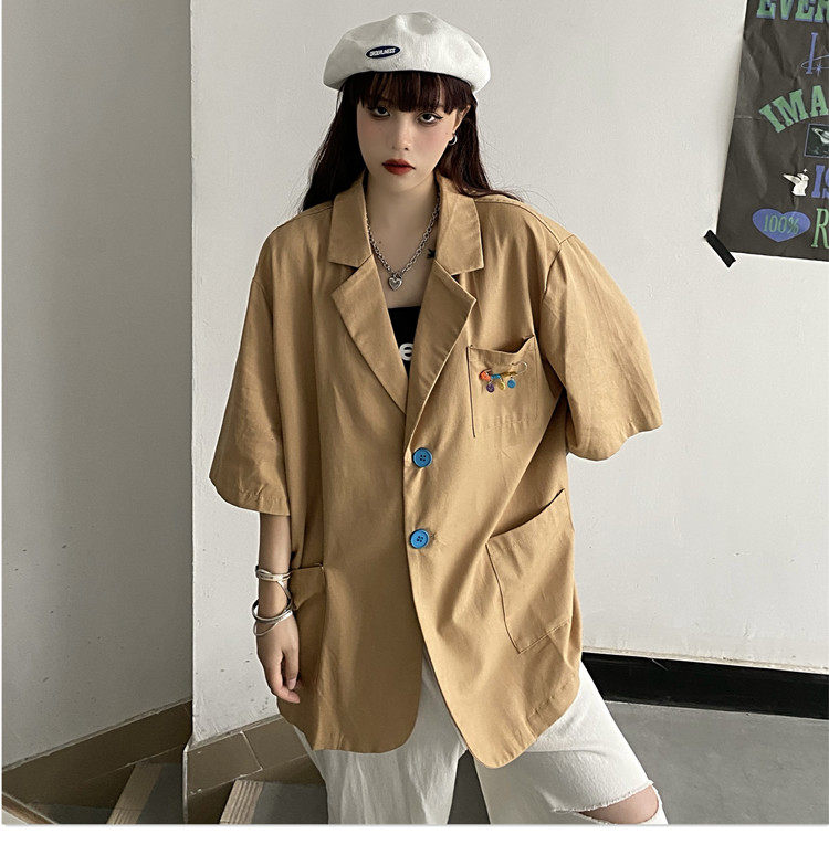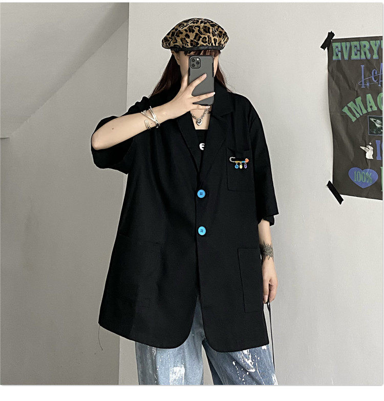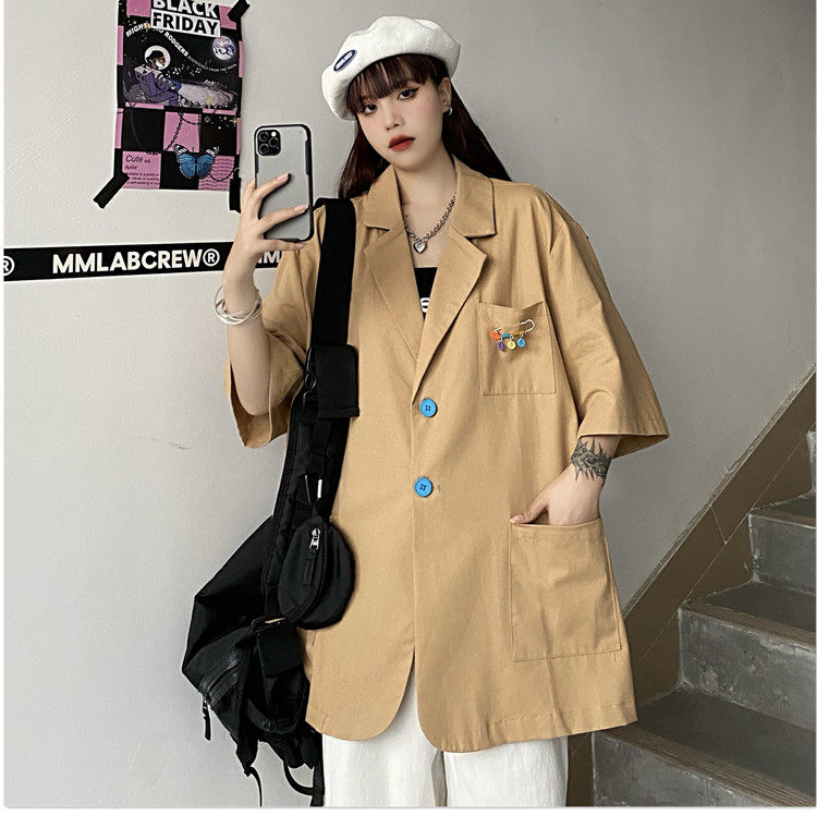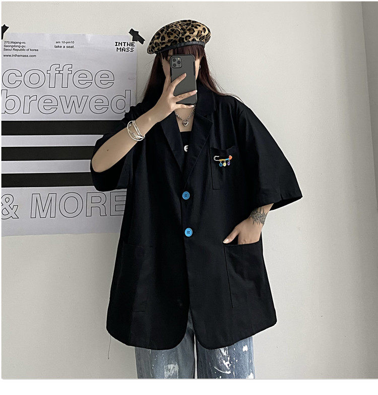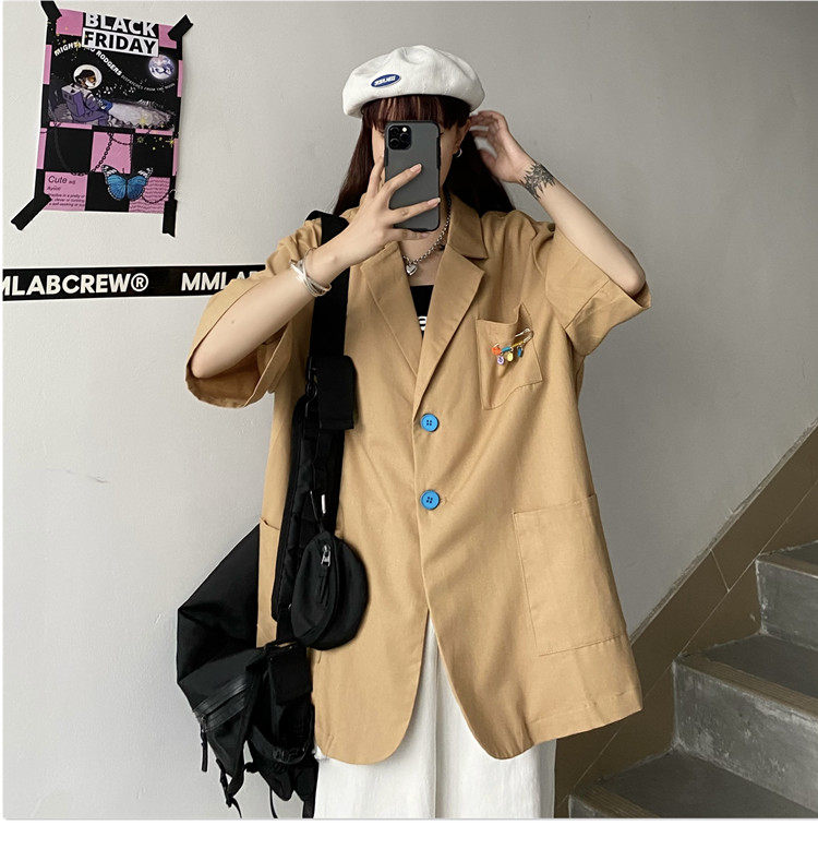 实拍#短袖西装外套女2021新款宽松设计感小众休闲炸街西服上衣