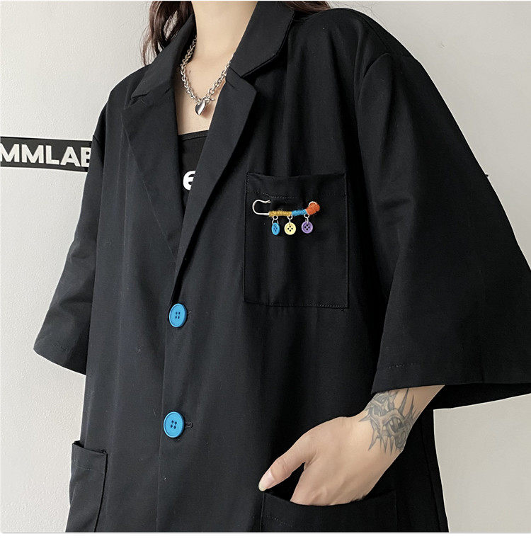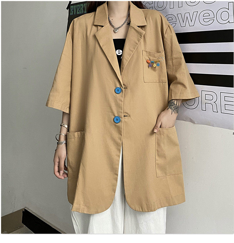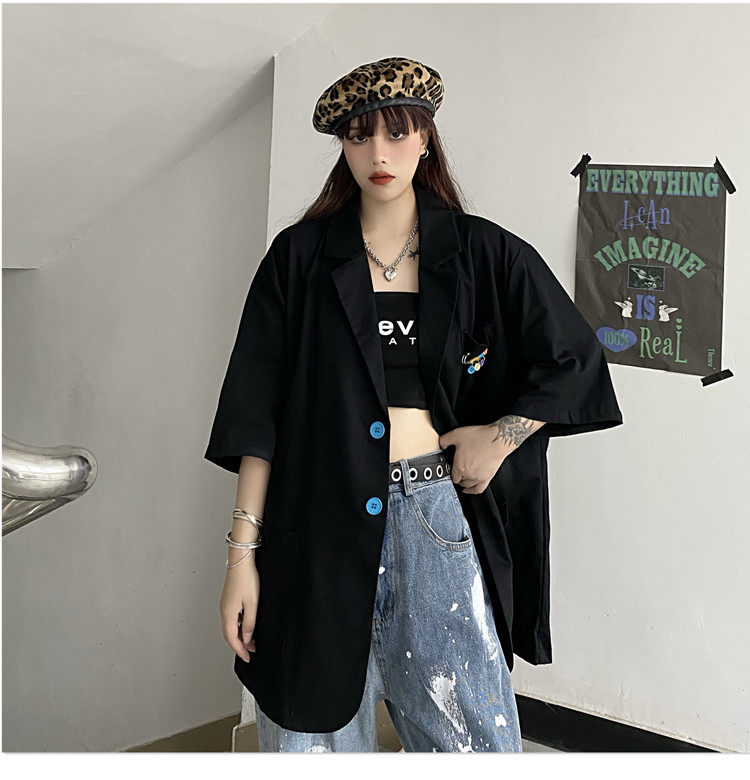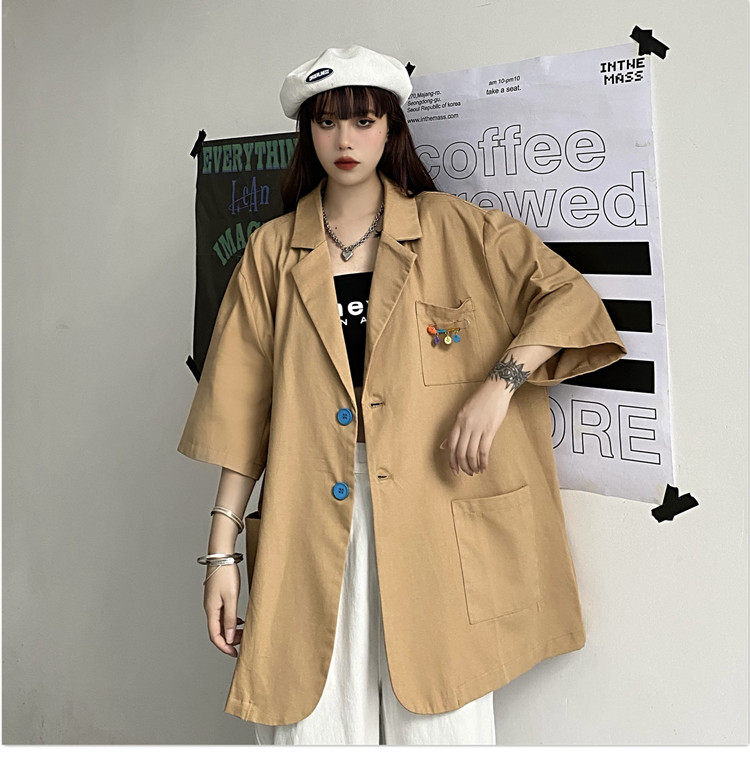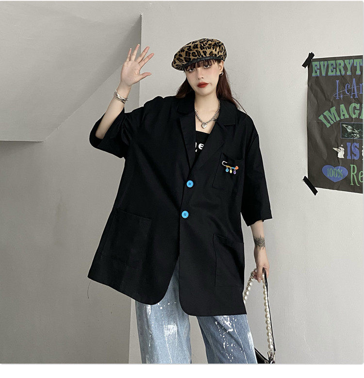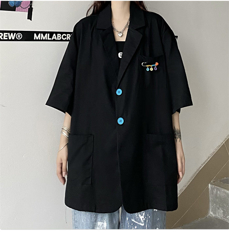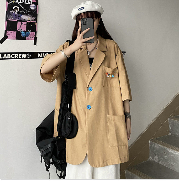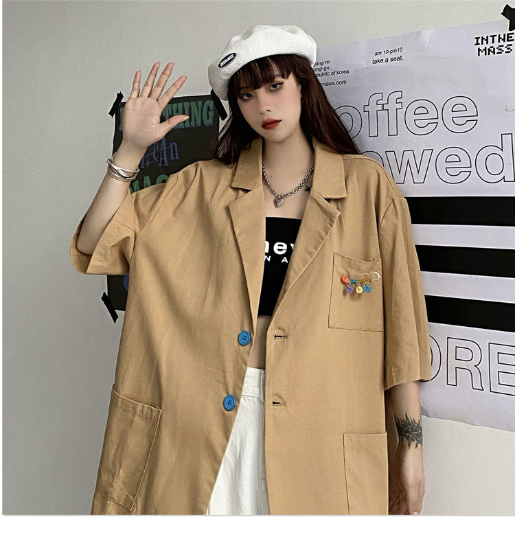 实拍#短袖西装外套女2021新款宽松设计感小众休闲炸街西服上衣