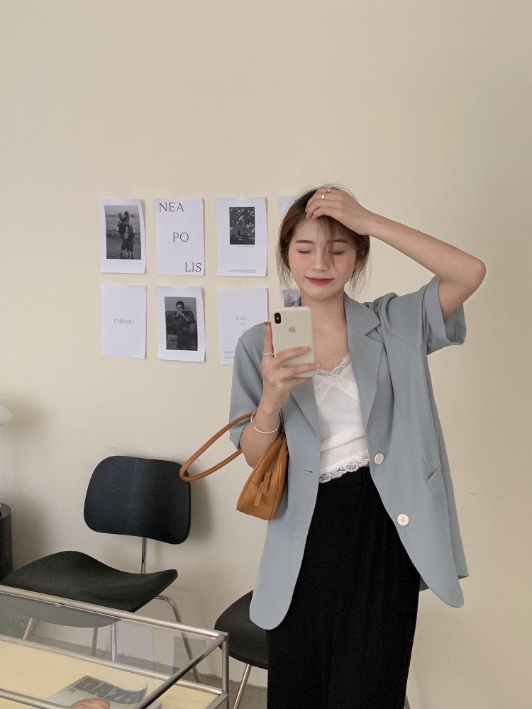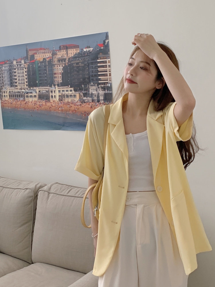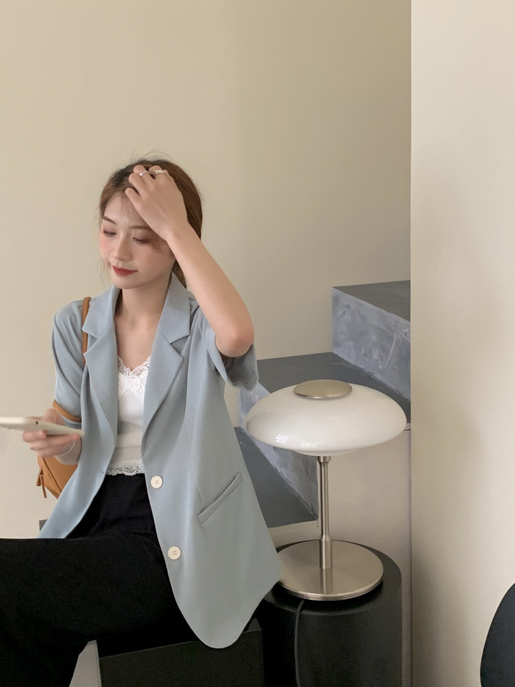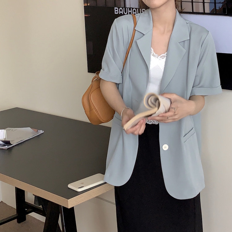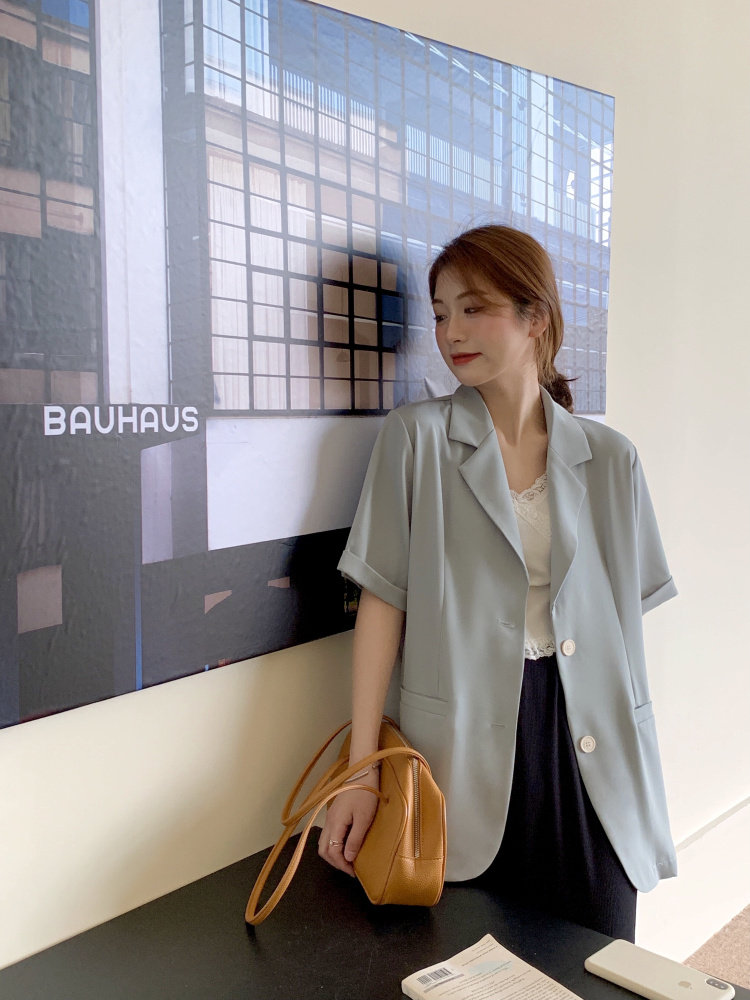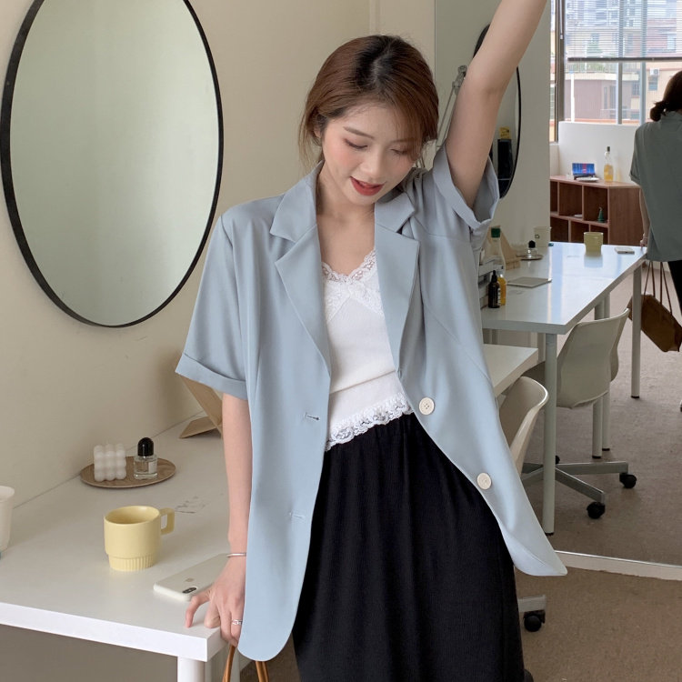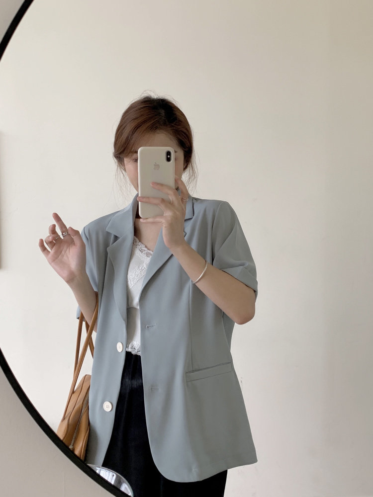 实拍实价 三标齐 韩版宽松短袖西装外套女休闲气质小西服上衣