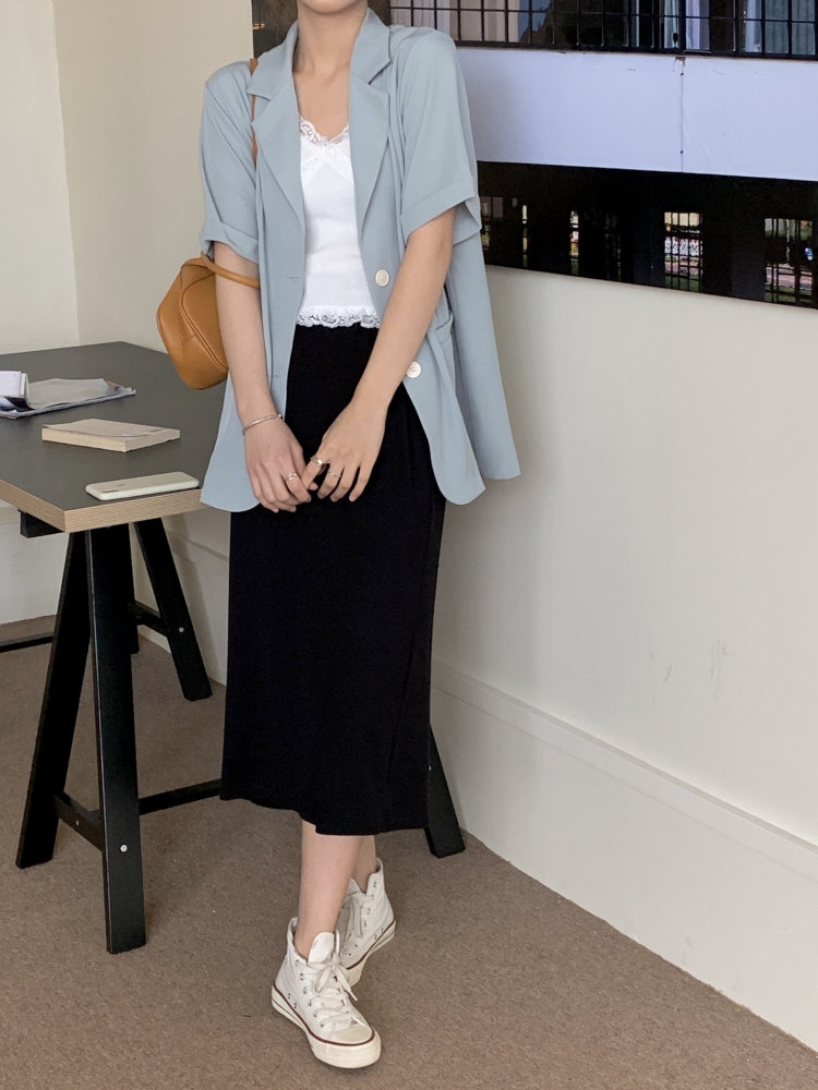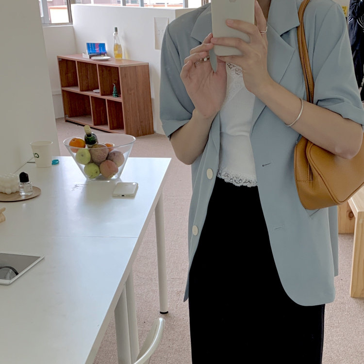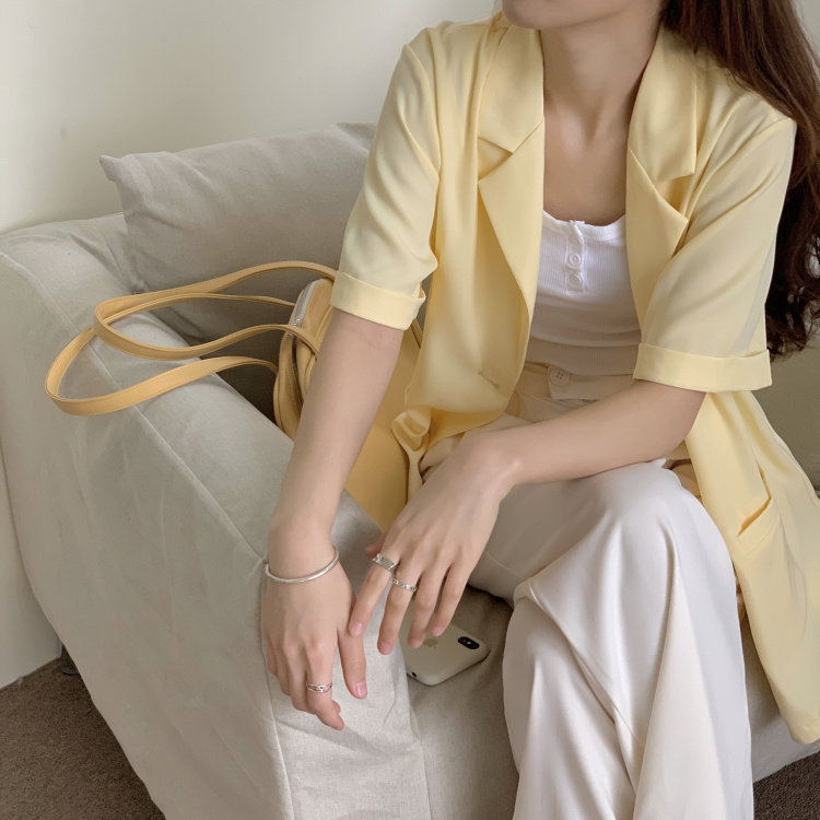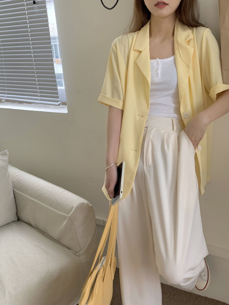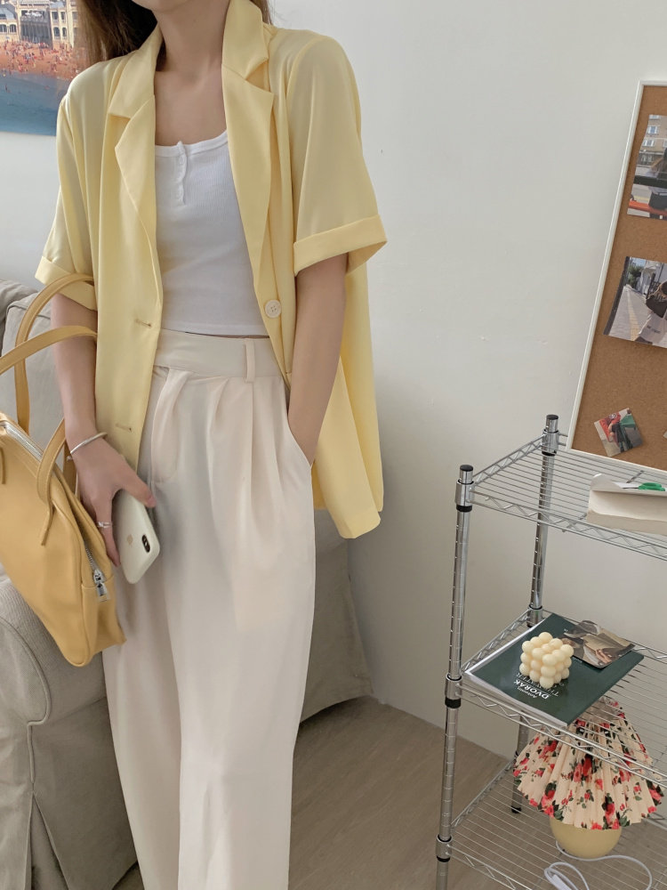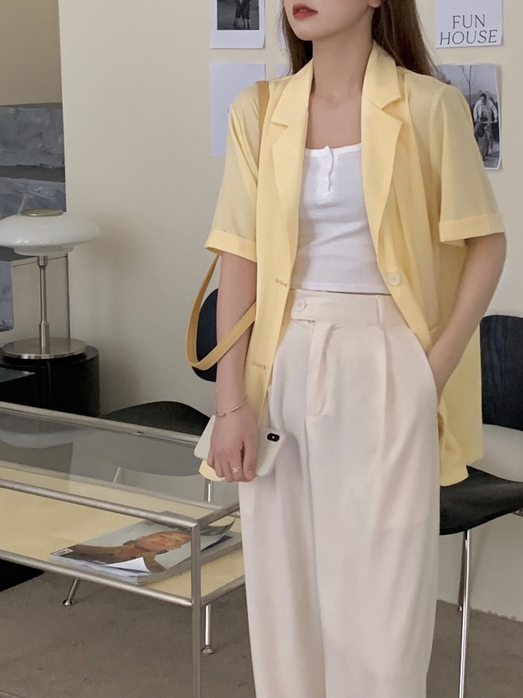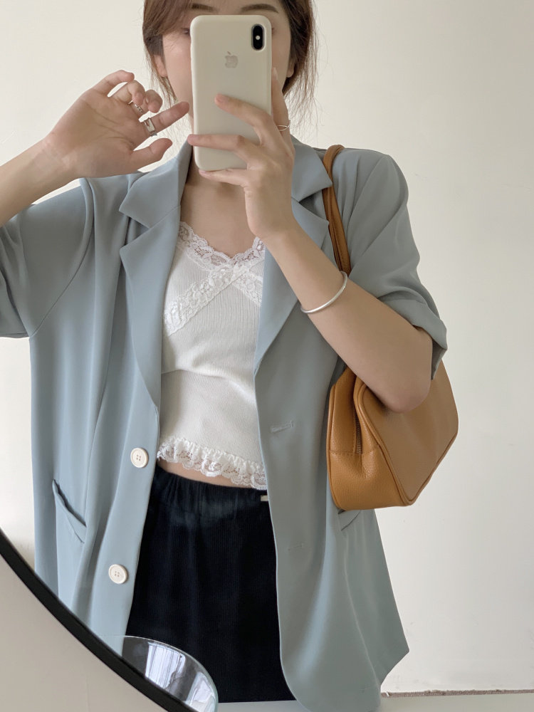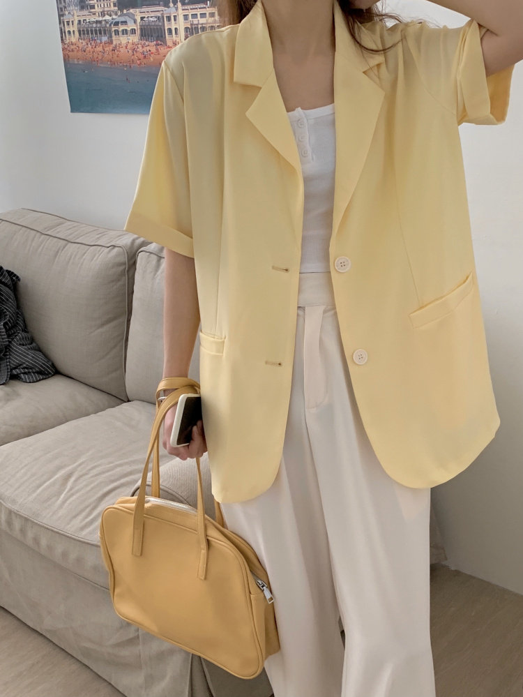 实拍实价 三标齐 韩版宽松短袖西装外套女休闲气质小西服上衣
