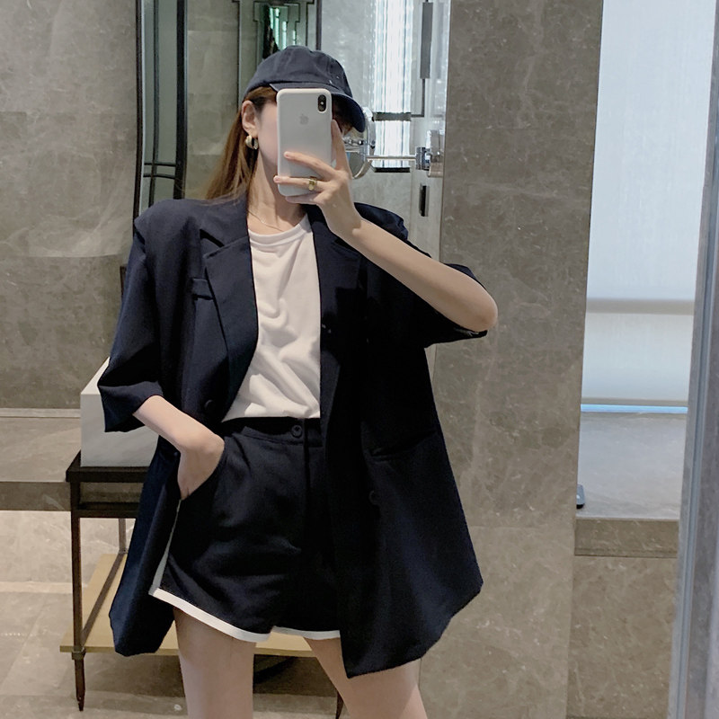 西装 衣长:75CM 胸围:122CM 袖长:31CM 短裤 S码 腰围:64CM 裤长:32CM M码 腰围:68CM 裤长:33CM