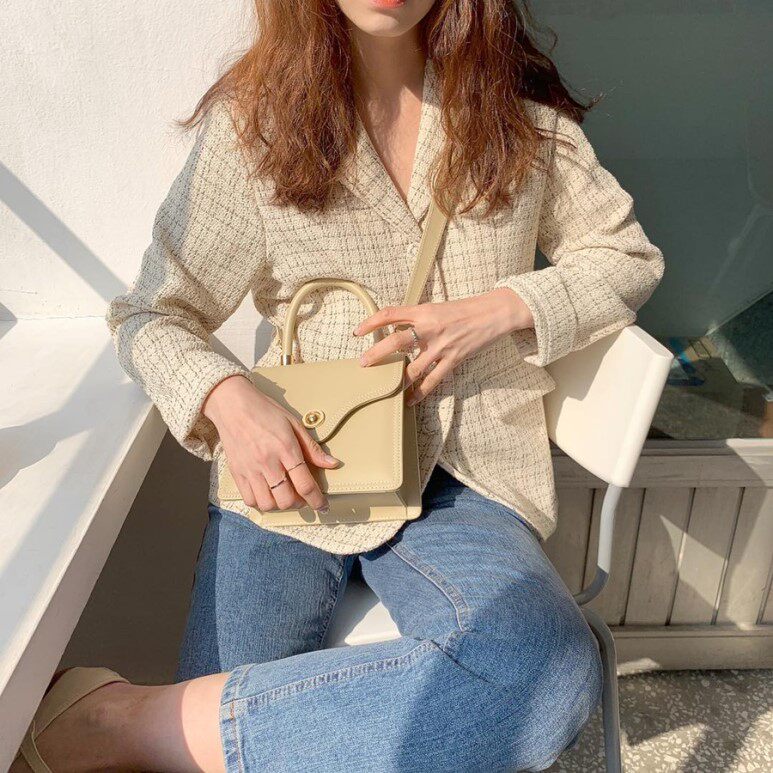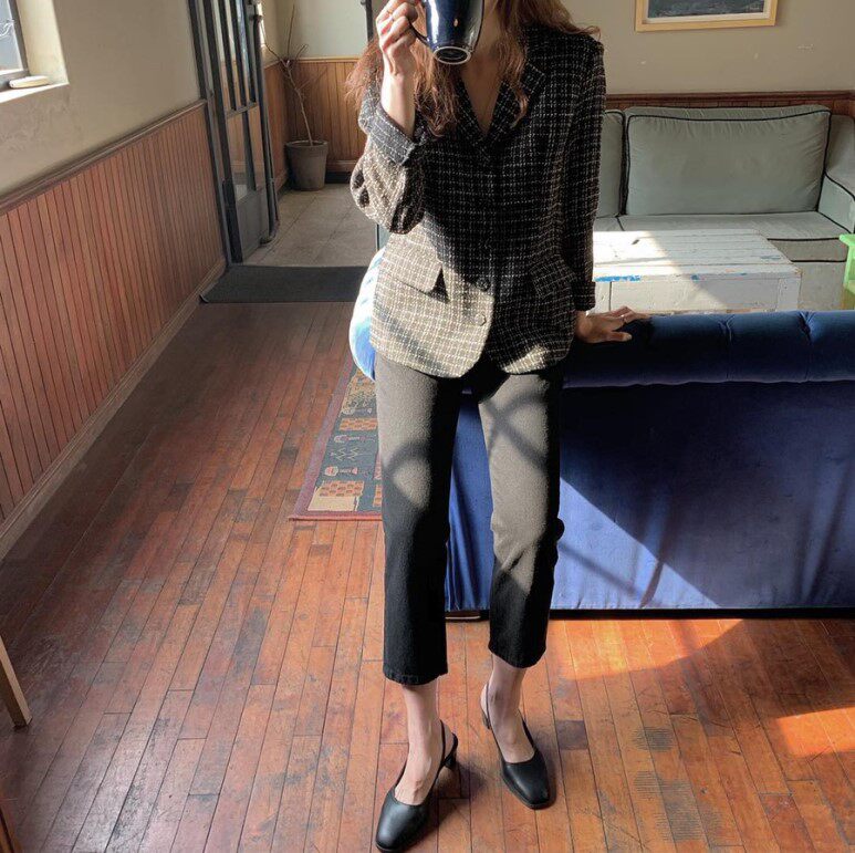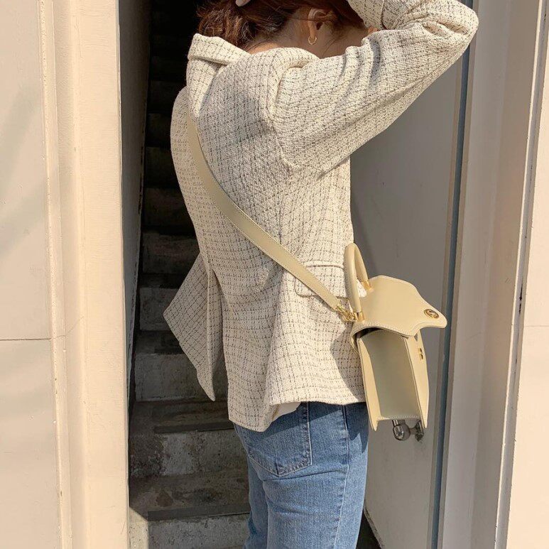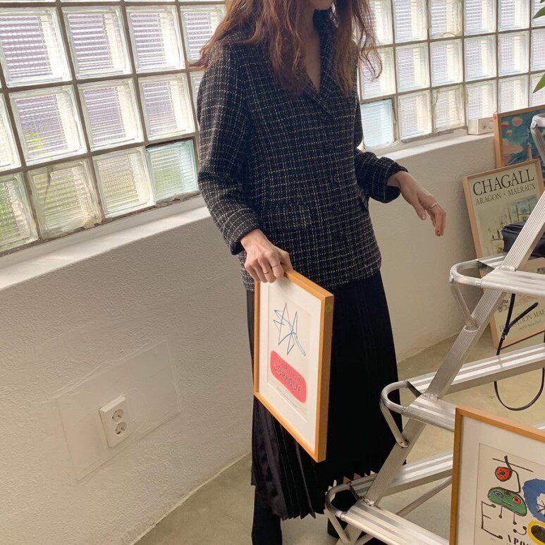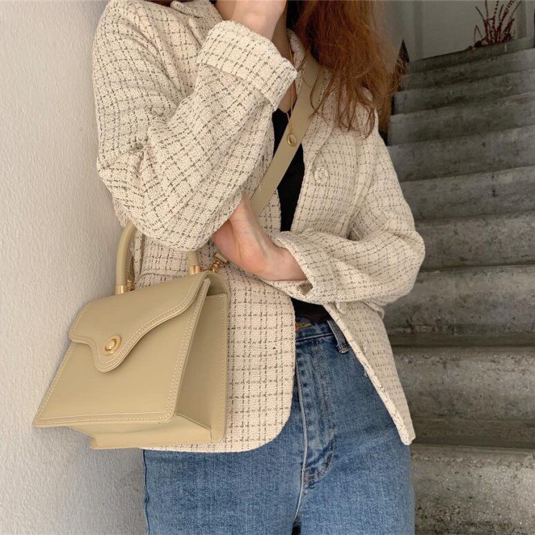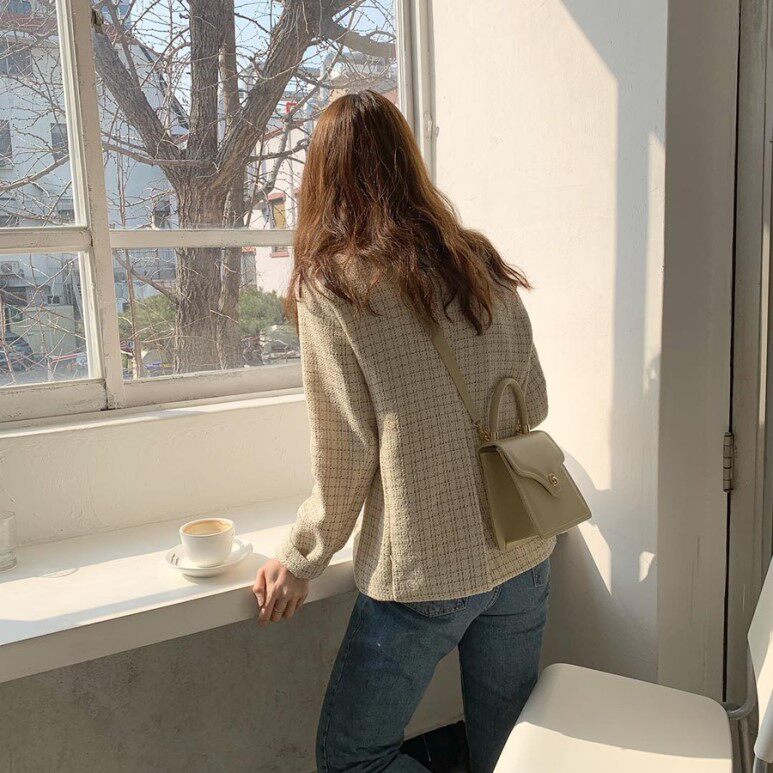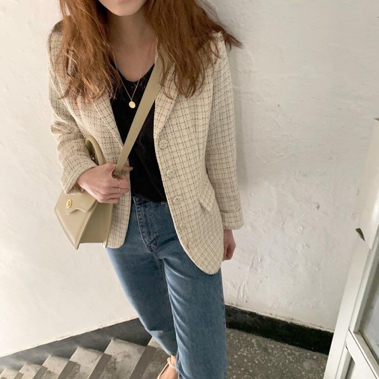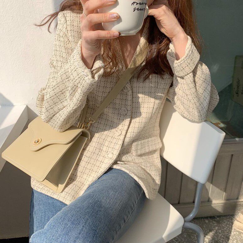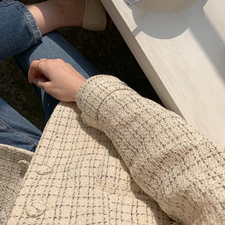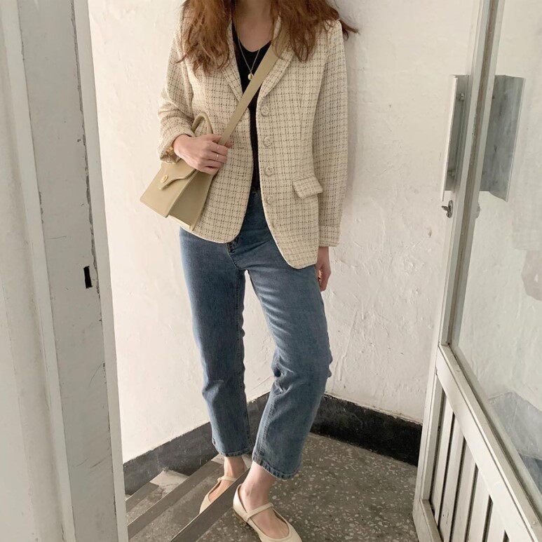 韩国 小香风 粗花呢 混线翻领 多粒扣 西装外套 现货