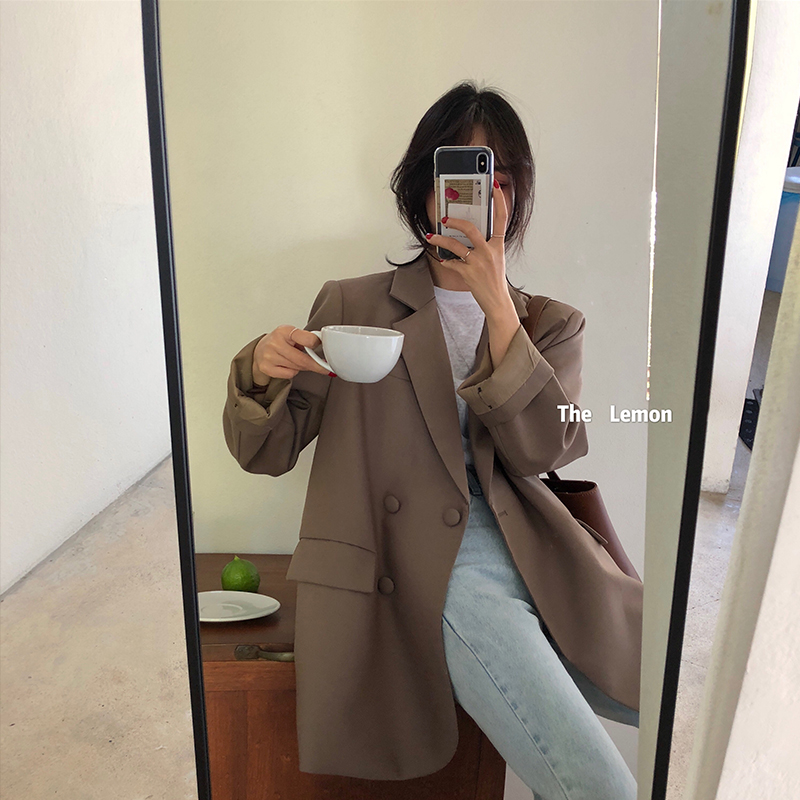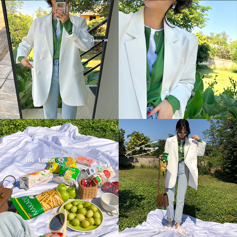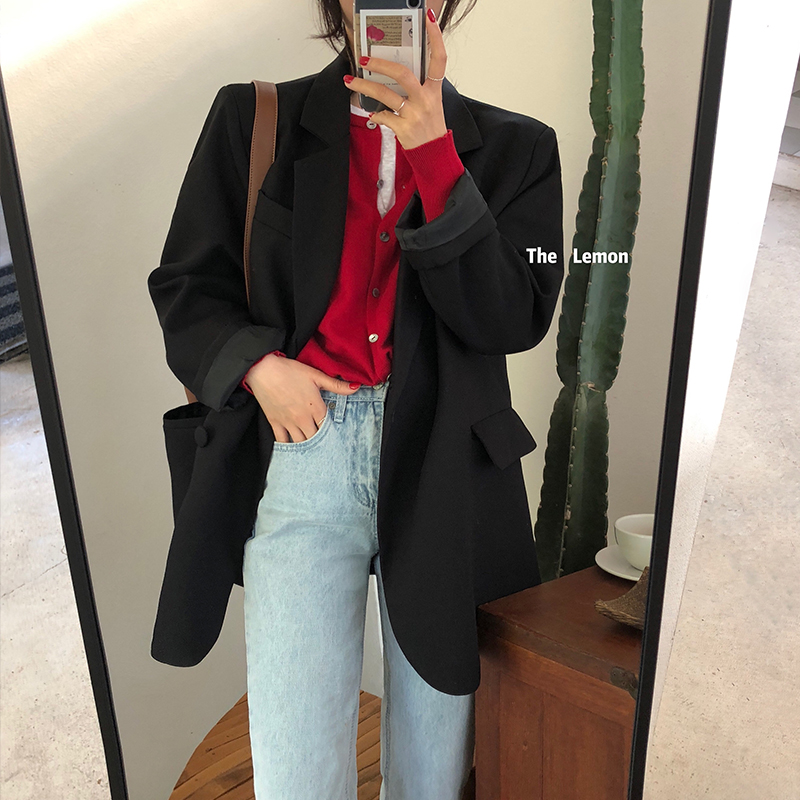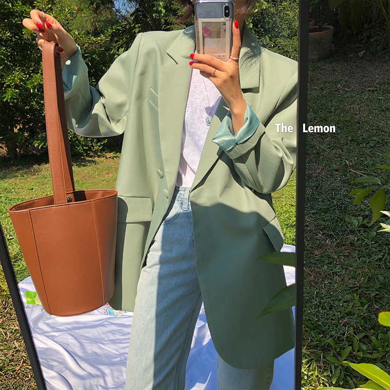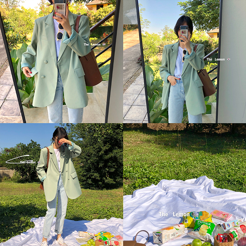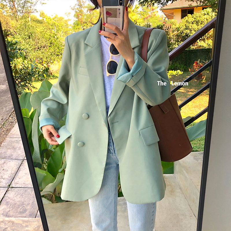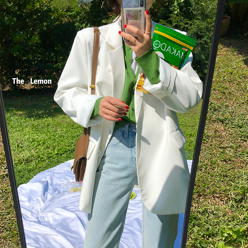 2021春 女外套韩版宽松慵懒风西装学生显瘦小西服上衣服
