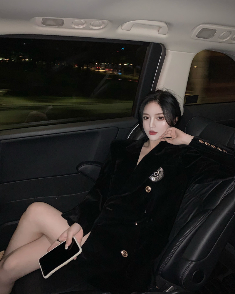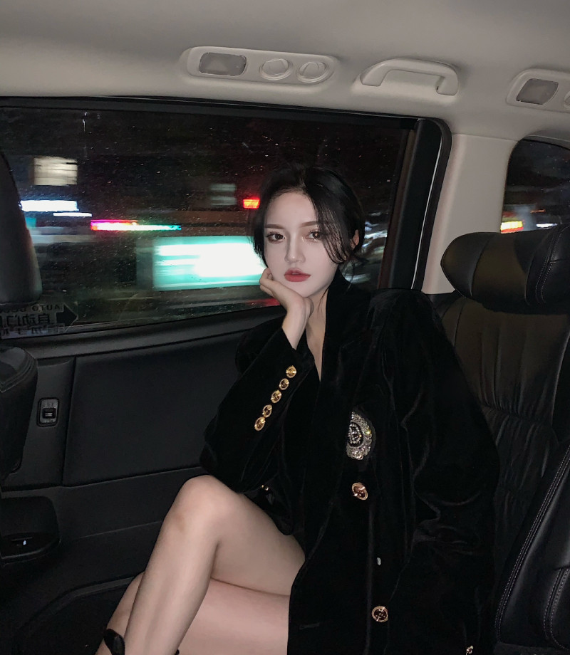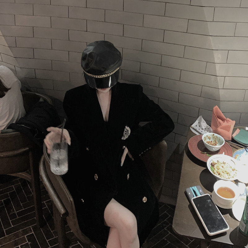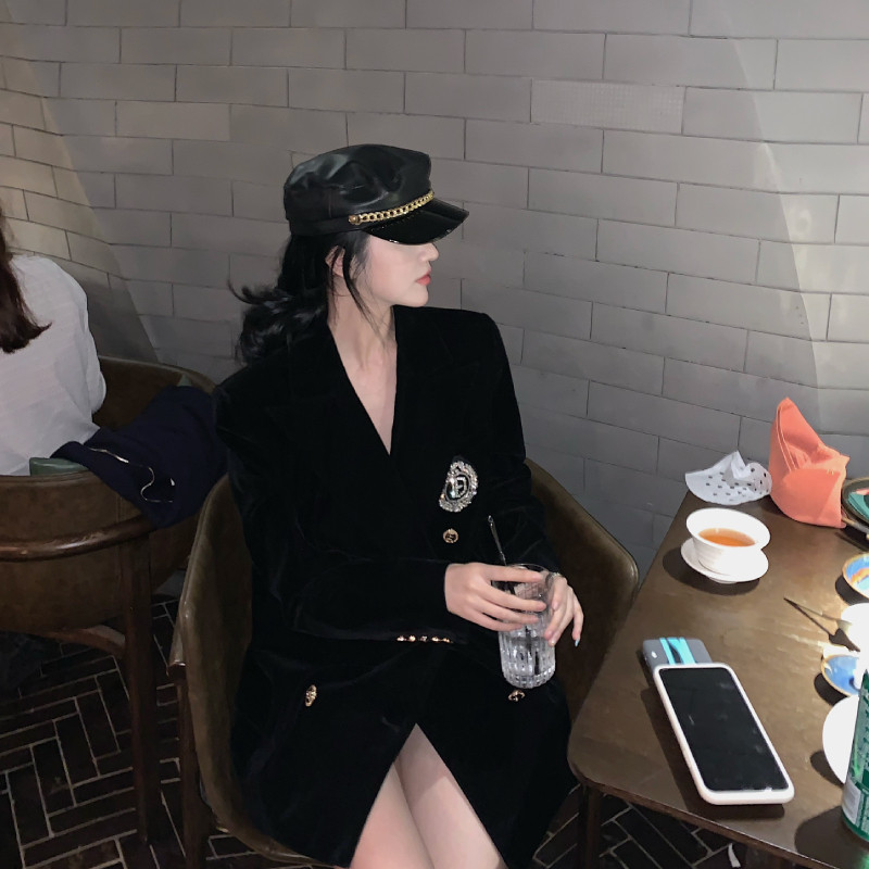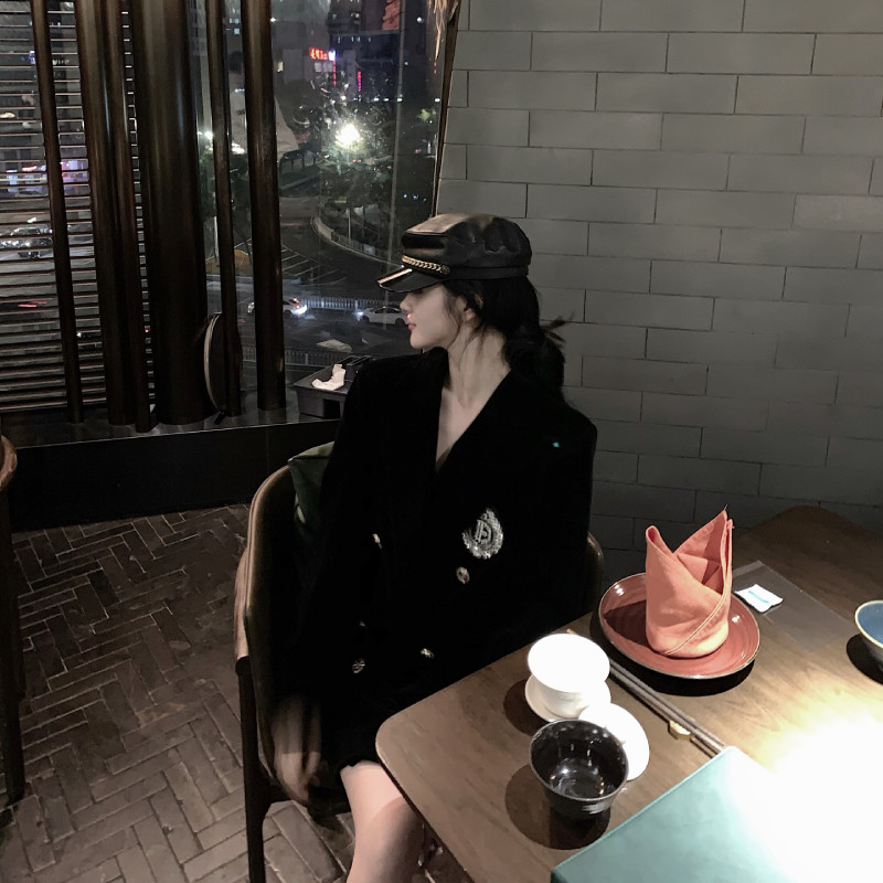 实价实拍! 高级感丝绒钉珠钻扣徽章双排扣西装外套