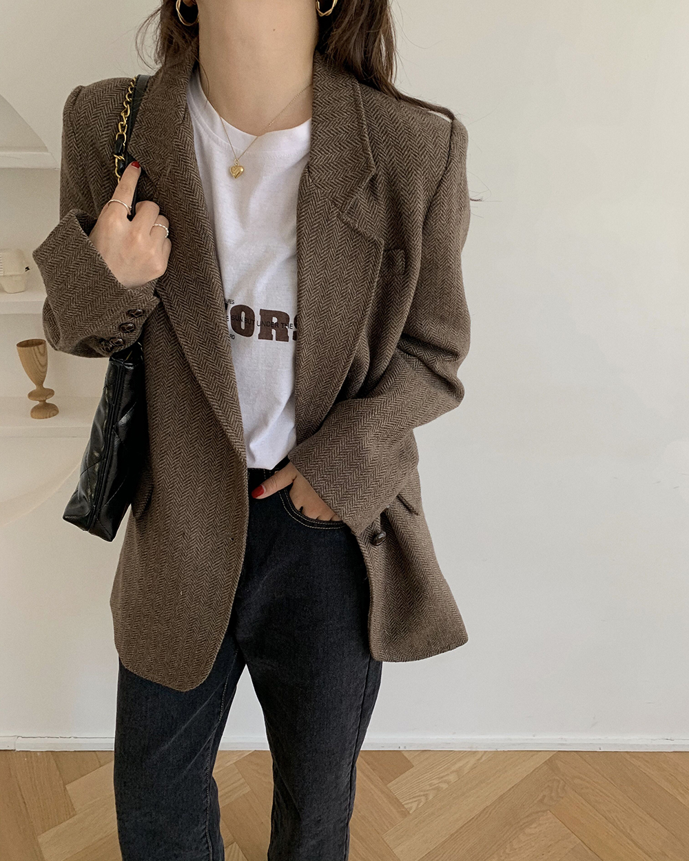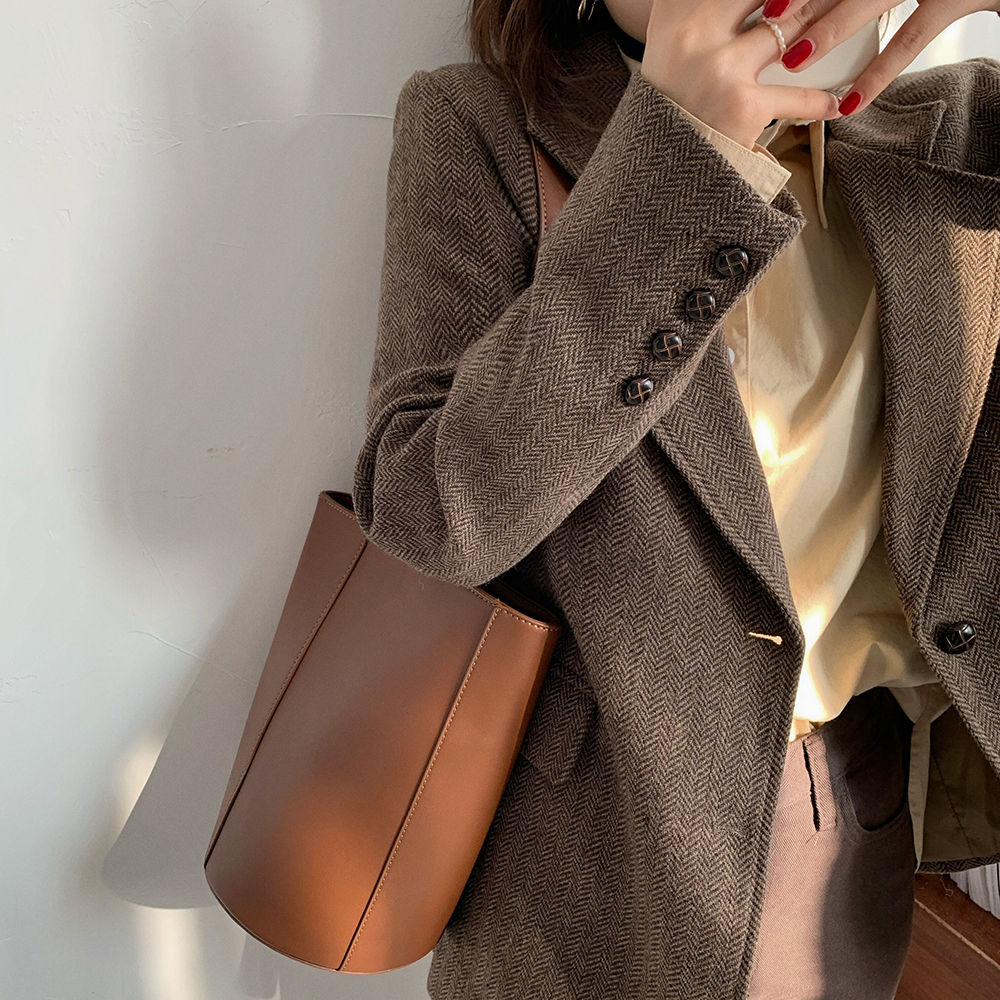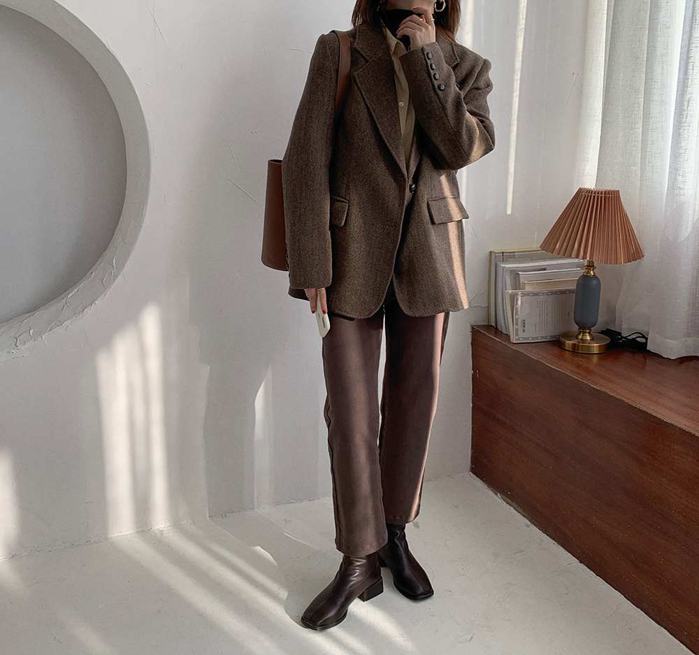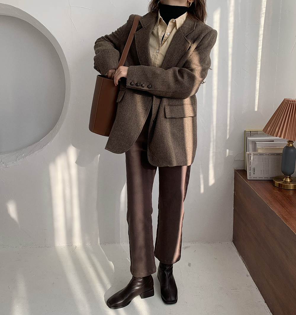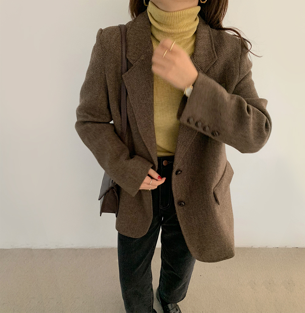 实拍 韩版宽松人字纹西装外套女 显瘦气质休闲上衣