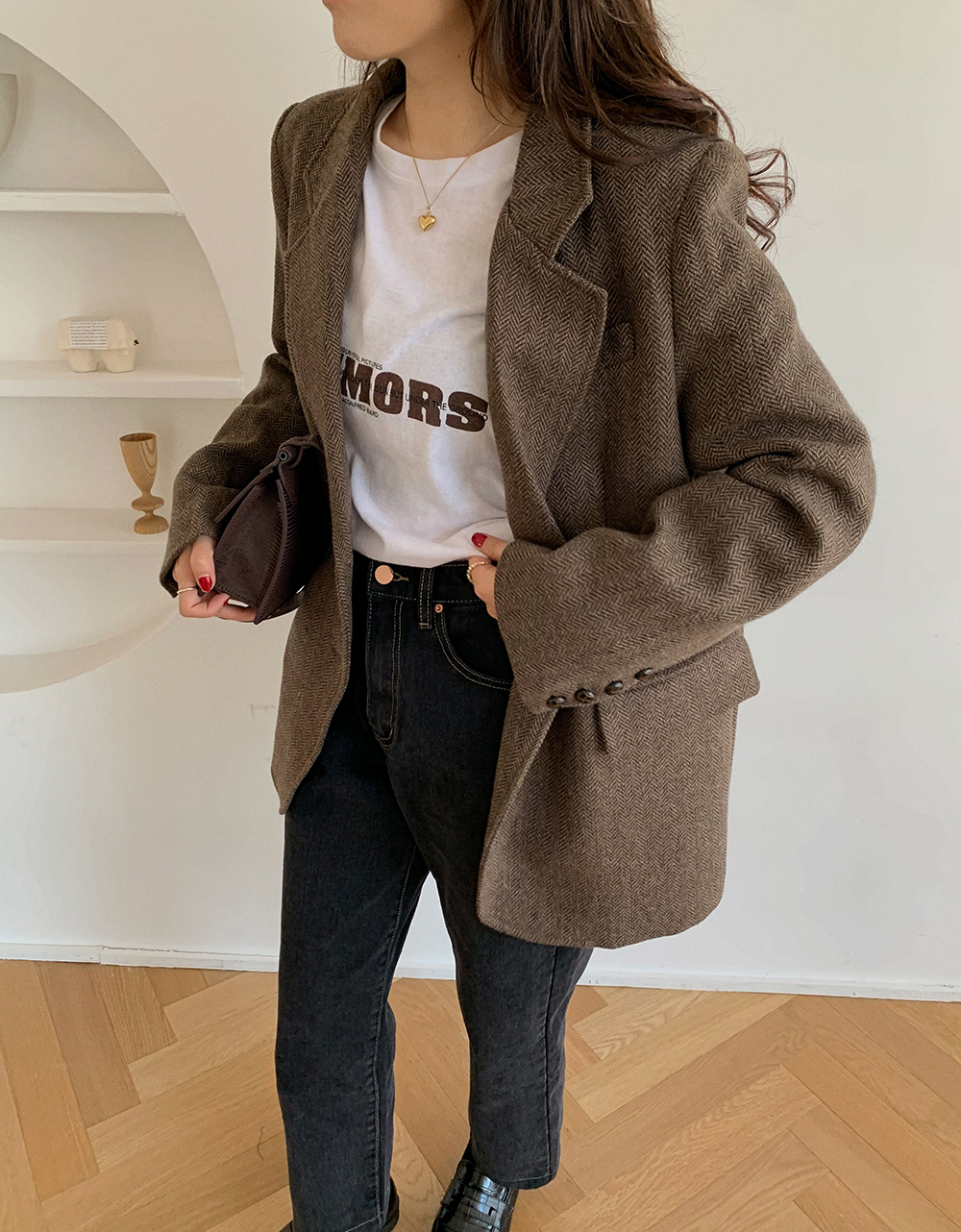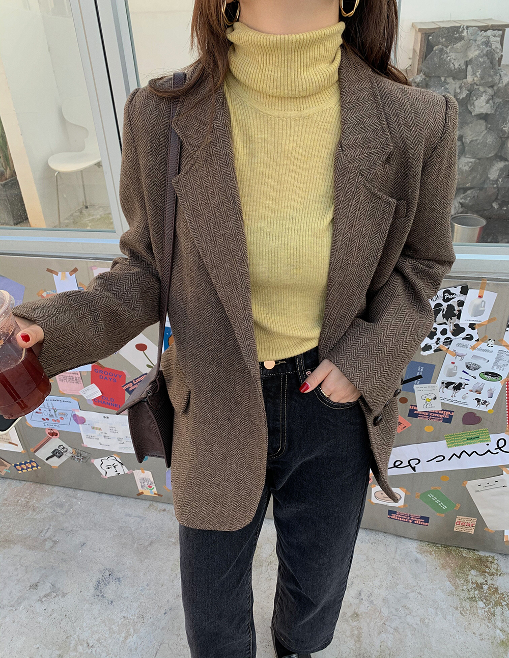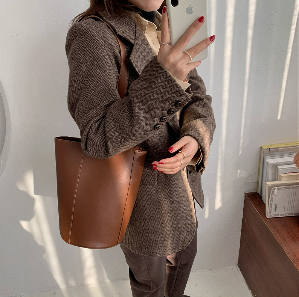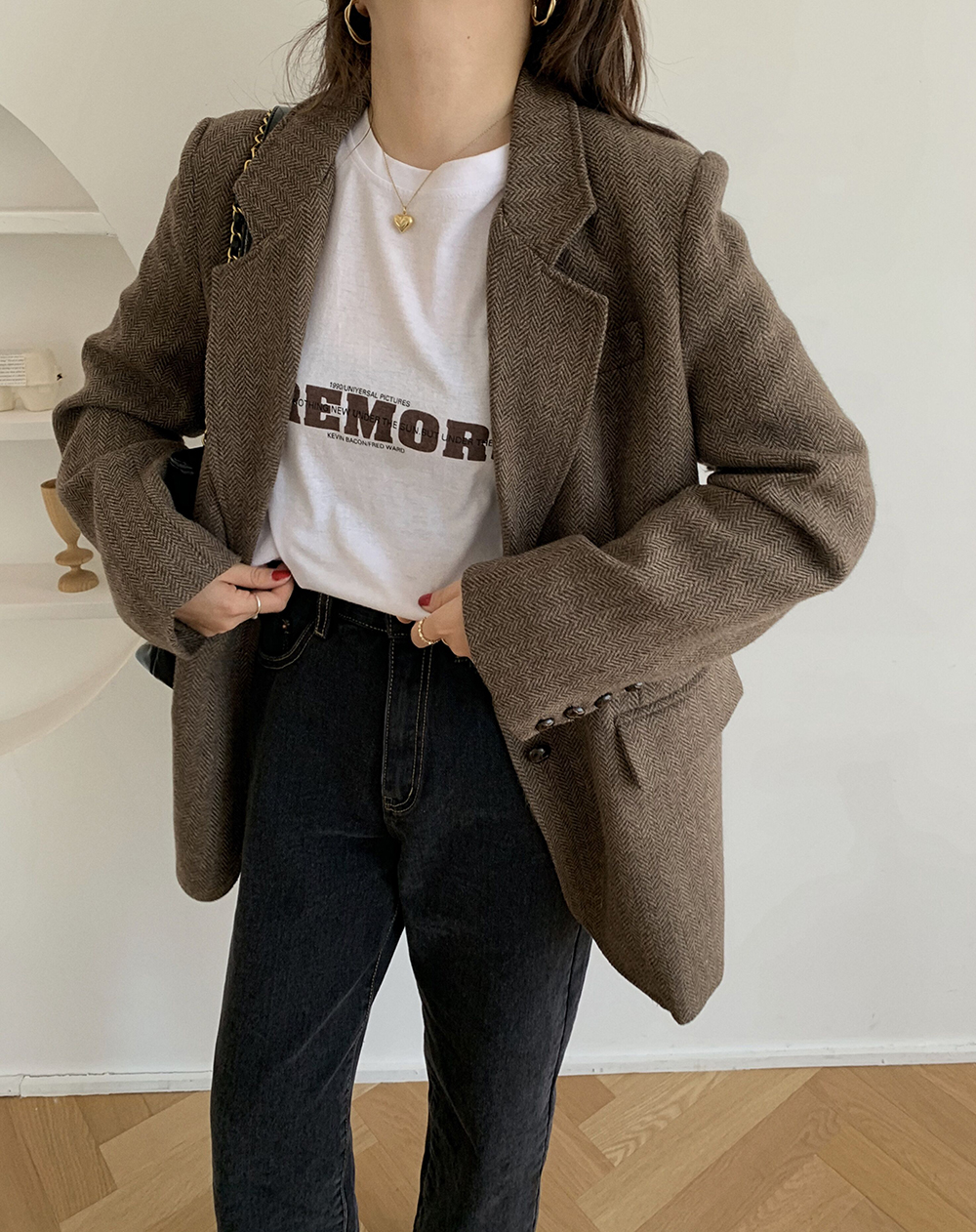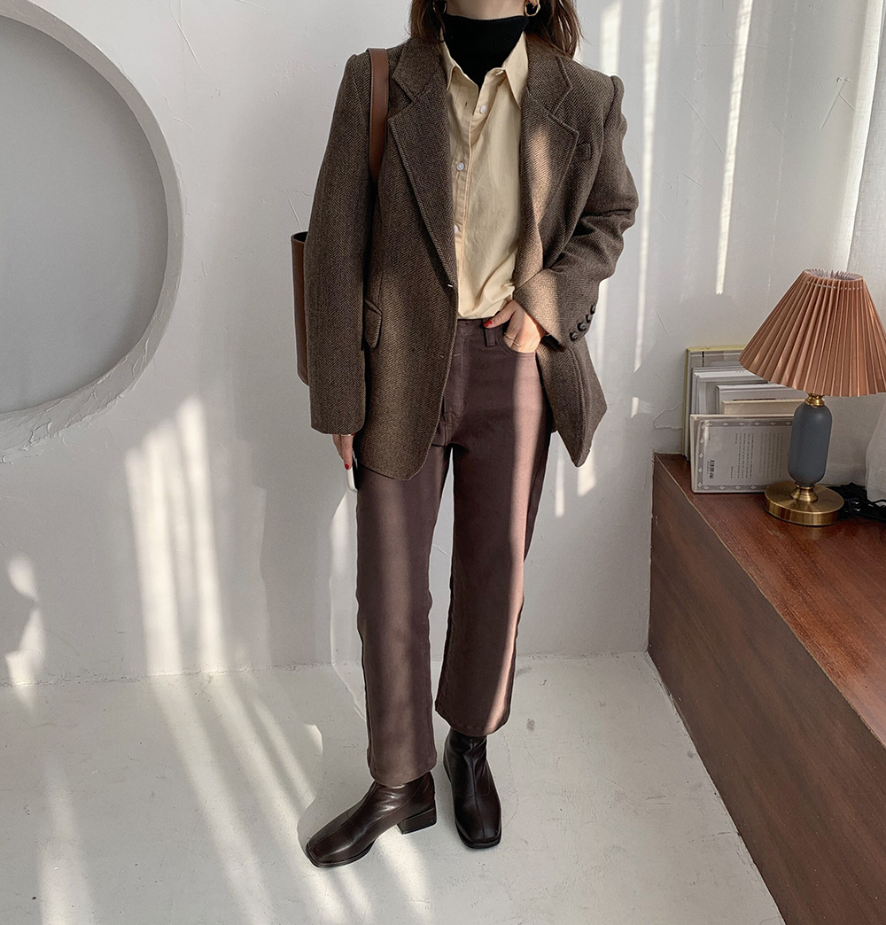 实拍 韩版宽松人字纹西装外套女 显瘦气质休闲上衣