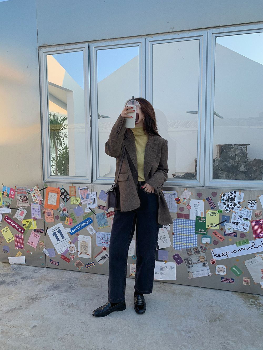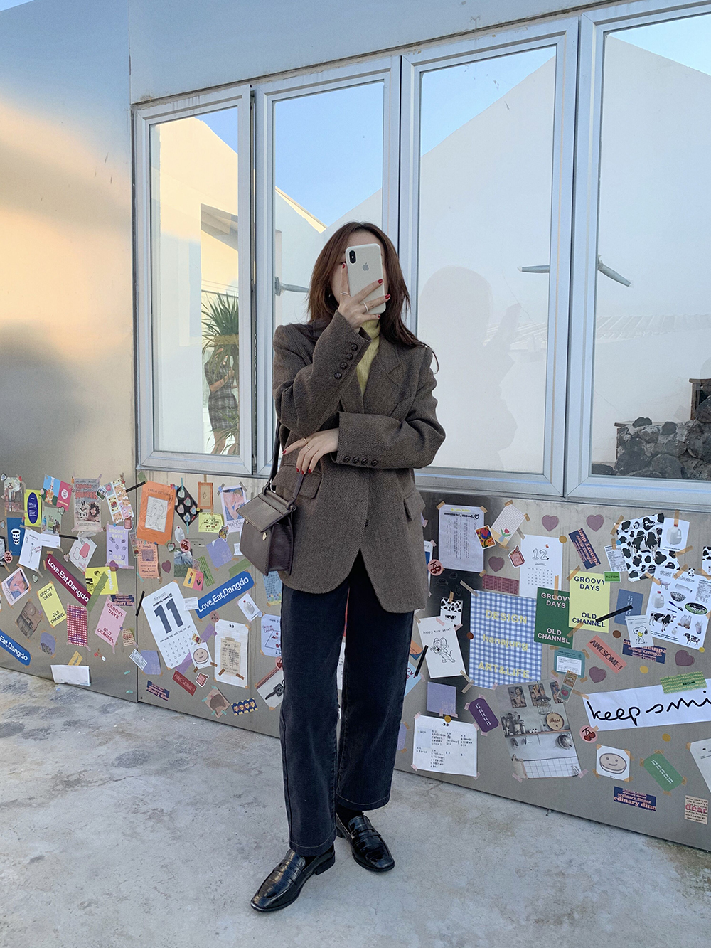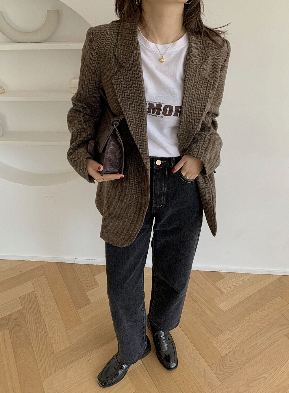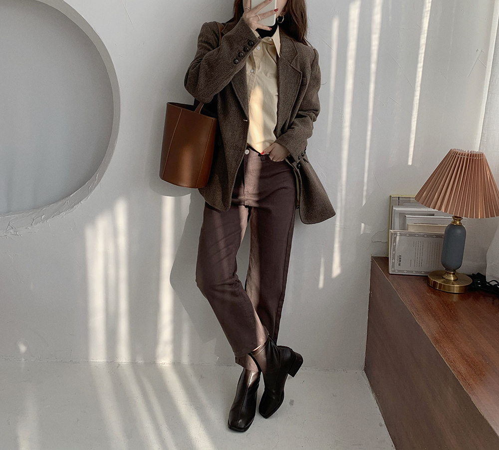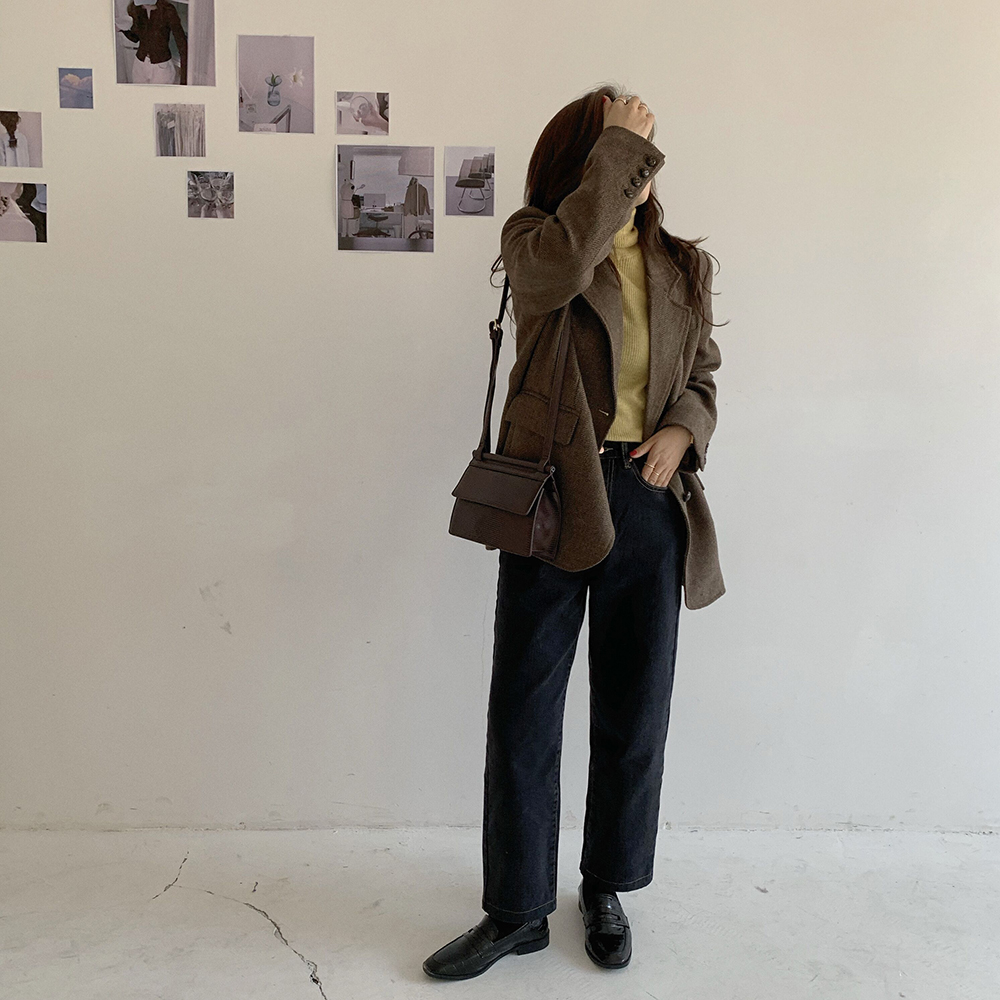 实拍 韩版宽松人字纹西装外套女 显瘦气质休闲上衣