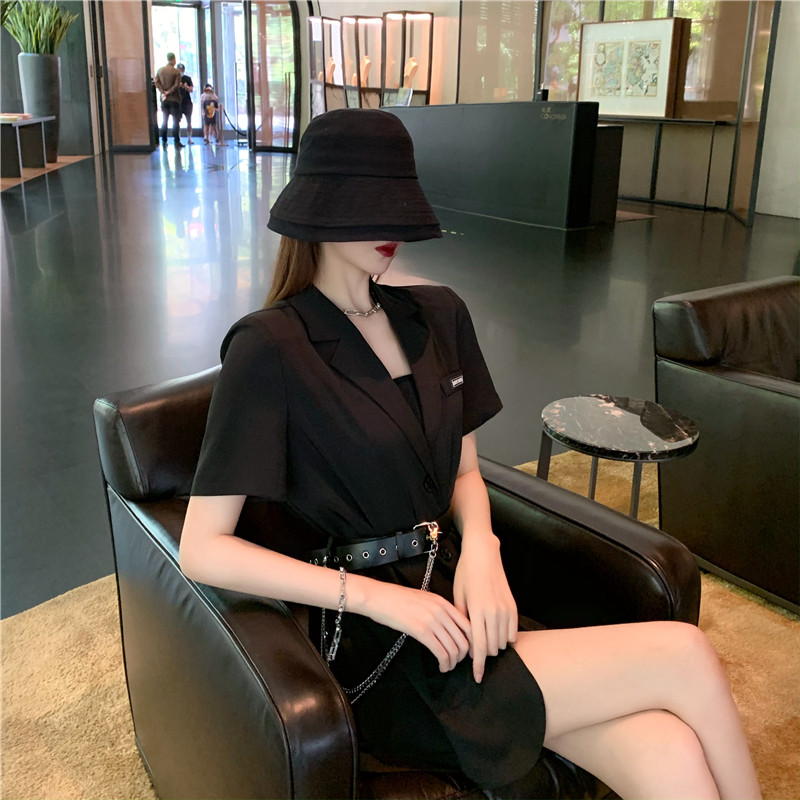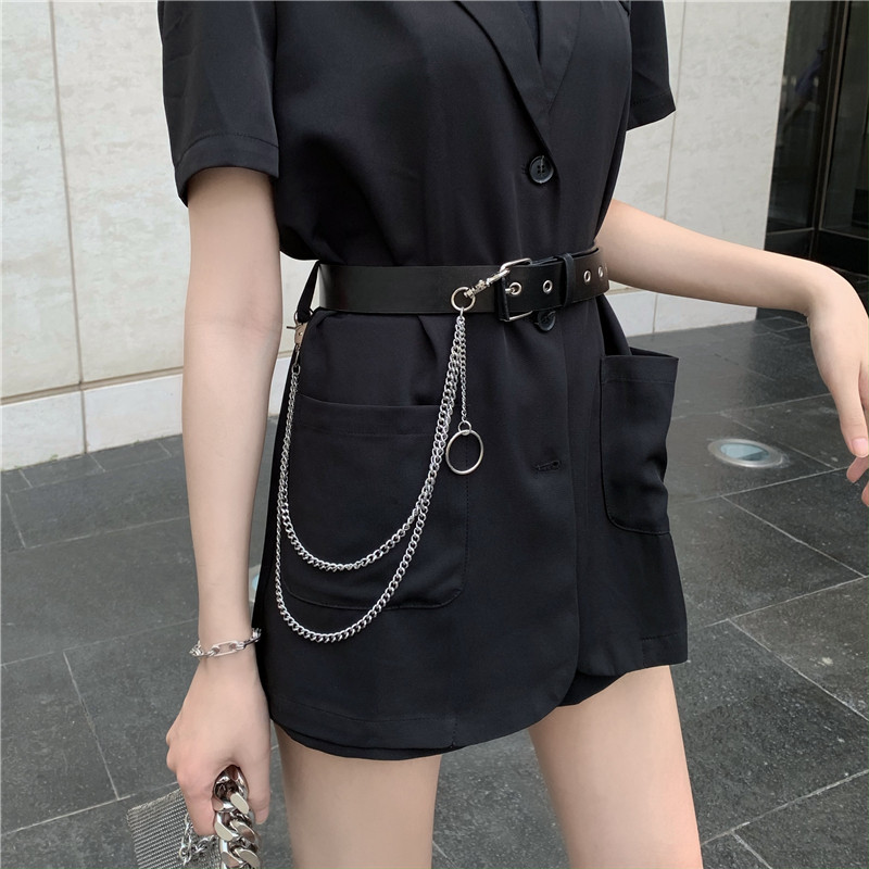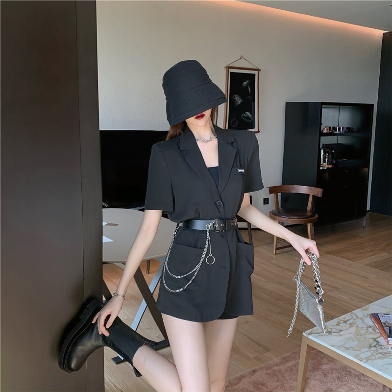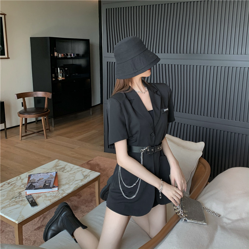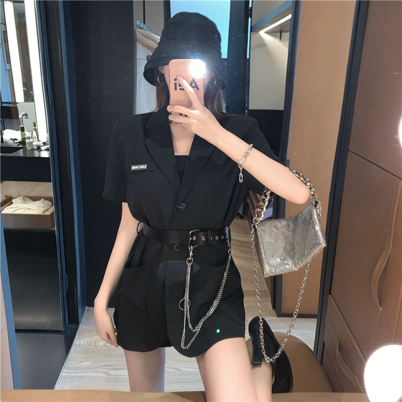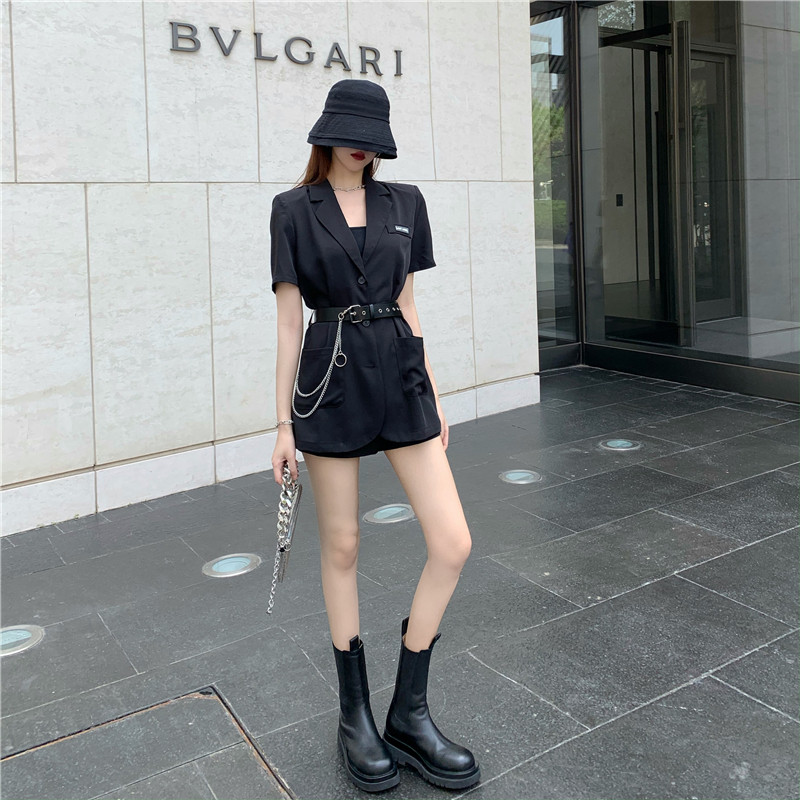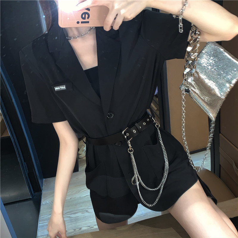 实价实拍宽松链条小西装外套薄款韩版中长款外套送皮带