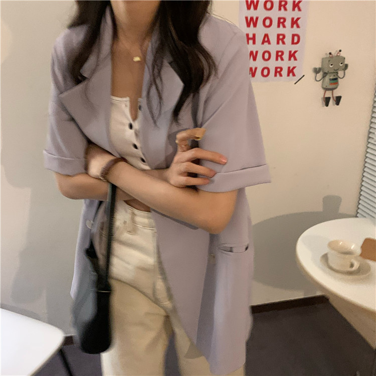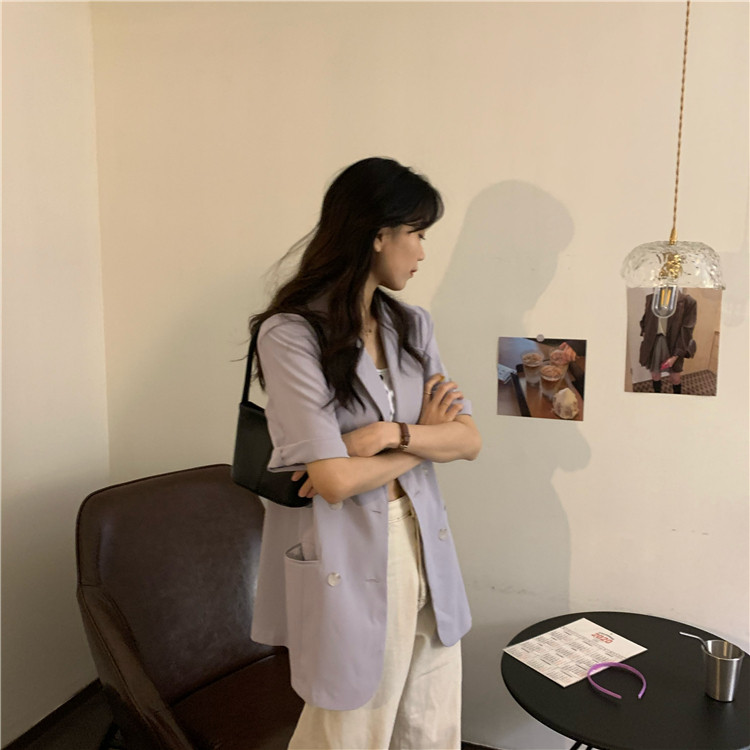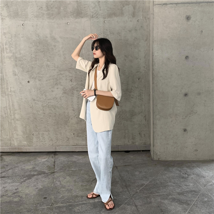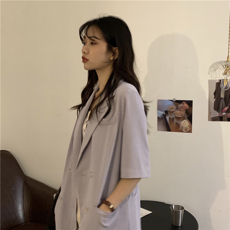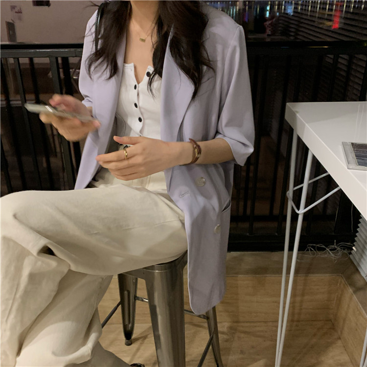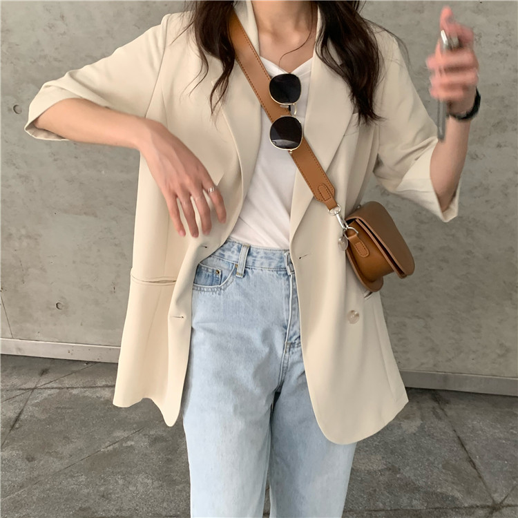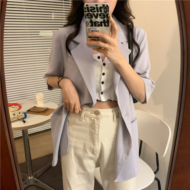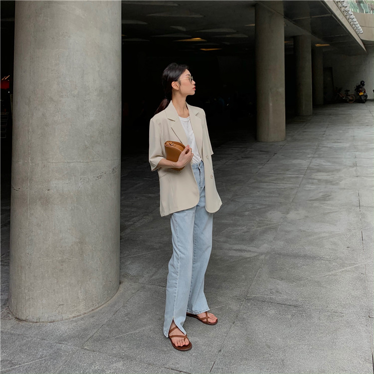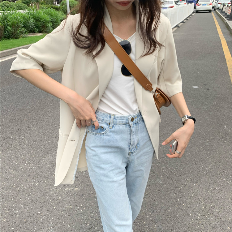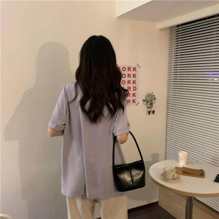 实拍实价~韩版同款时尚气质中长款设计感西装外套百搭上衣