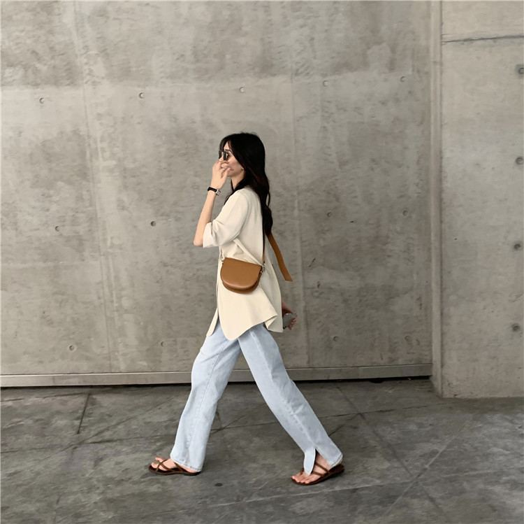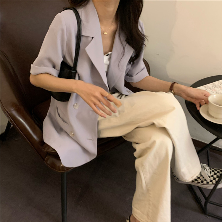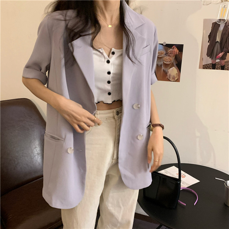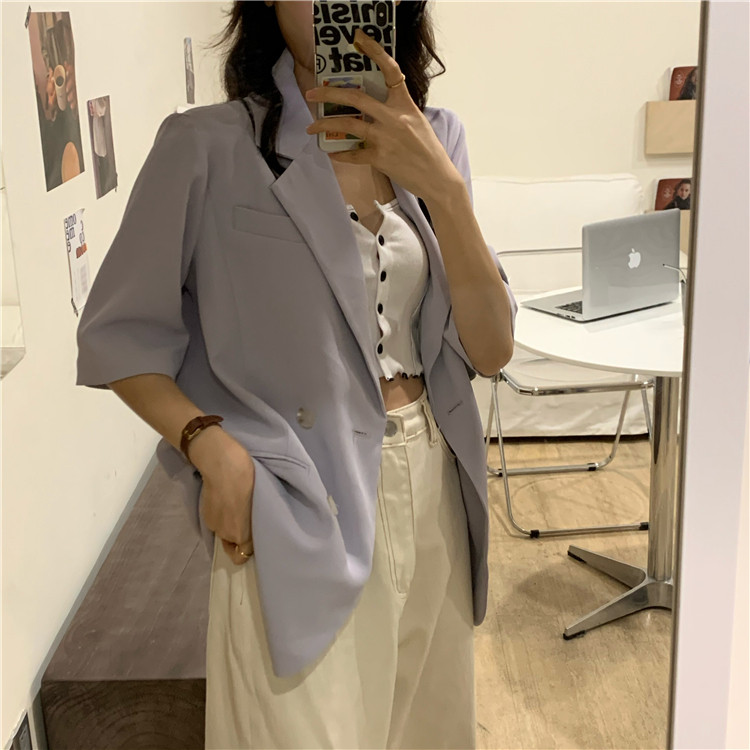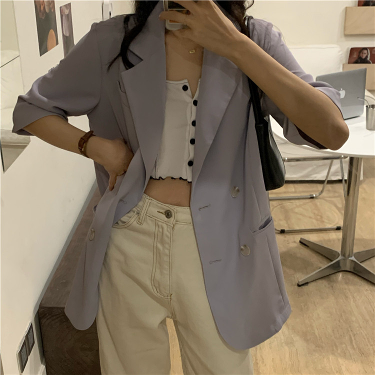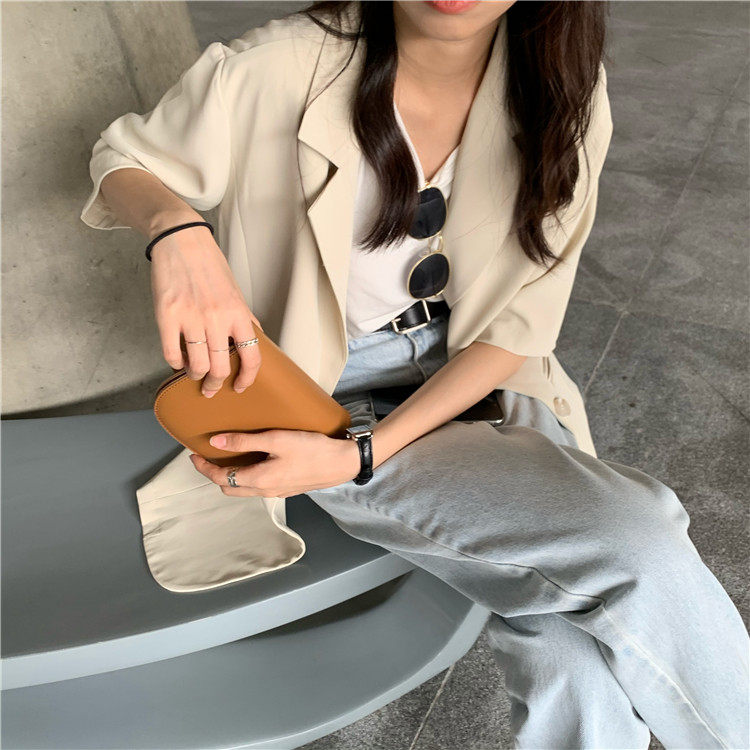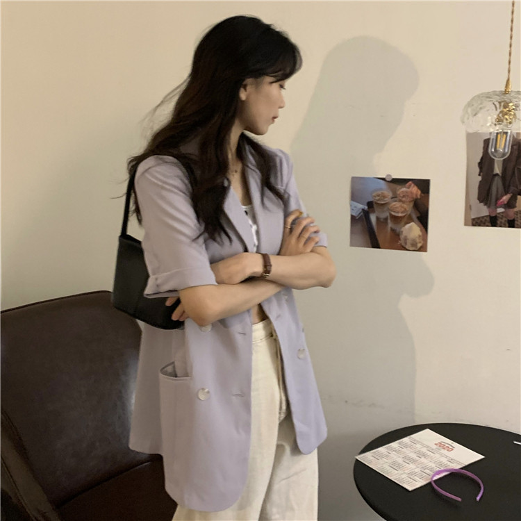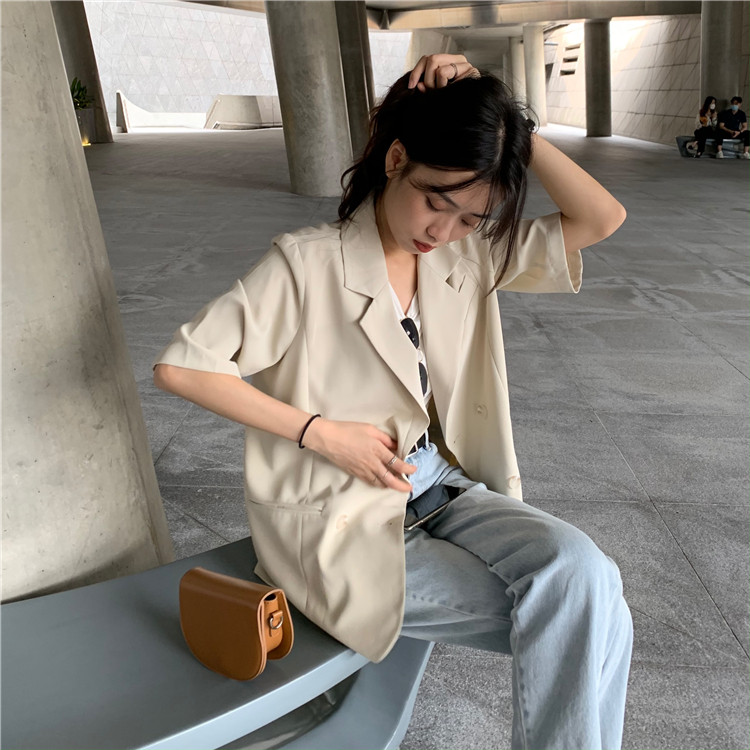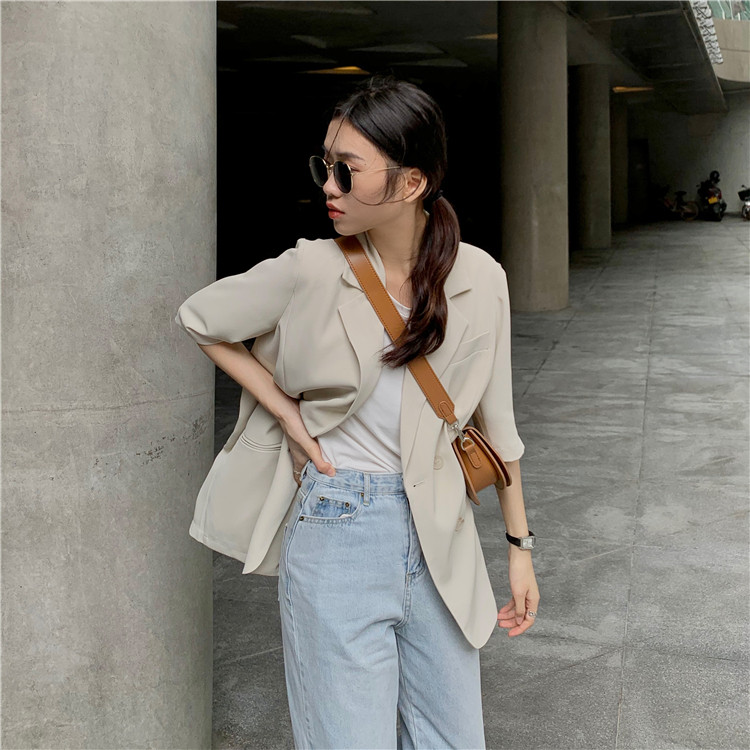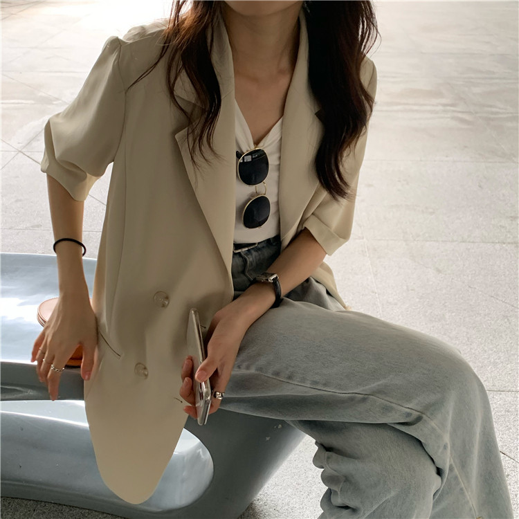 实拍实价~韩版同款时尚气质中长款设计感西装外套百搭上衣